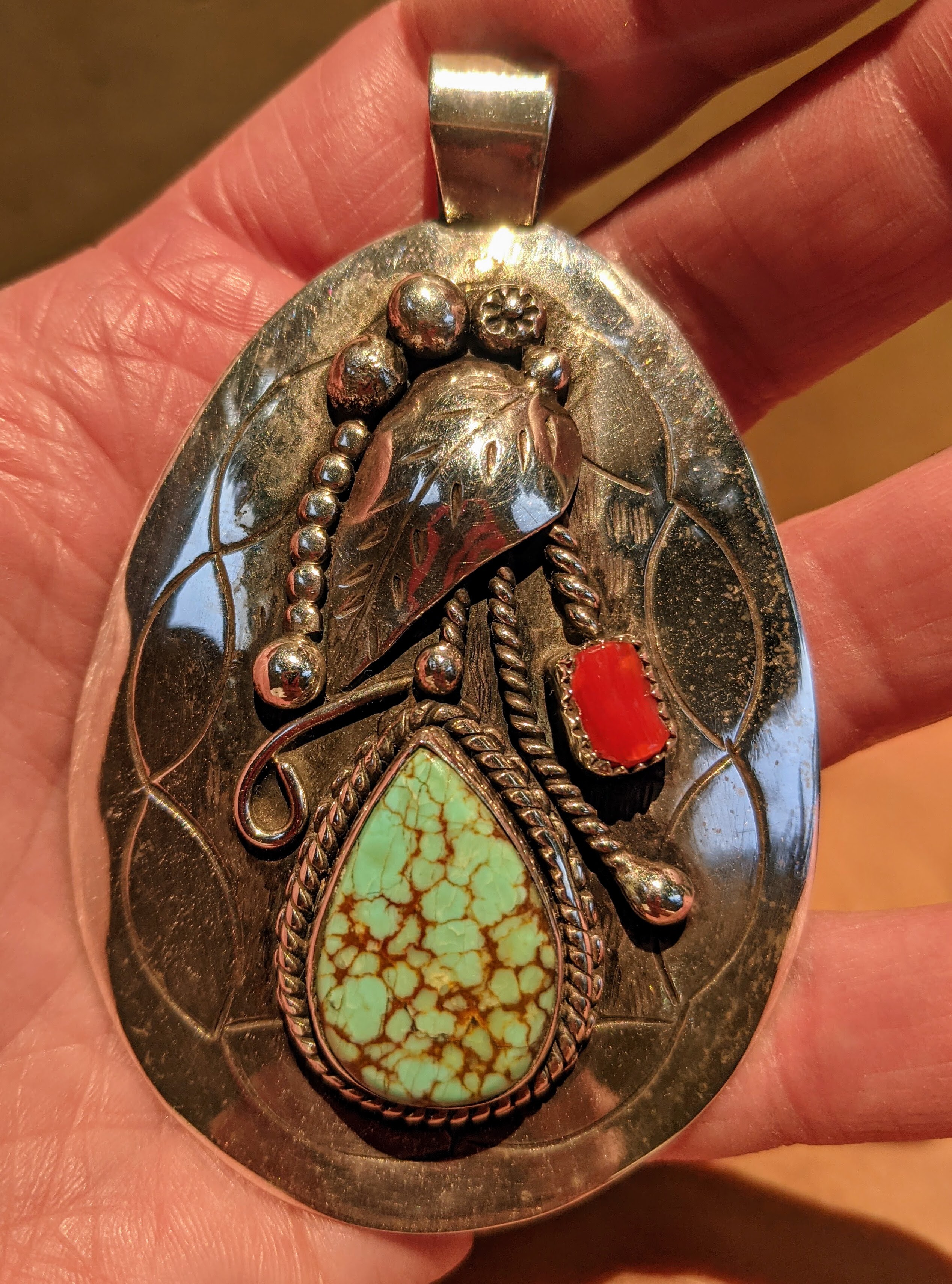 I looked closer at the turquoise in the top piece; it seems like there’s a tiny bit of bright green up in the top corner. Turquoise is so interesting! Did you have that in another post a long time ago? Before I joined this group I read back through most of the posts, and it seems like I remember that piece.
