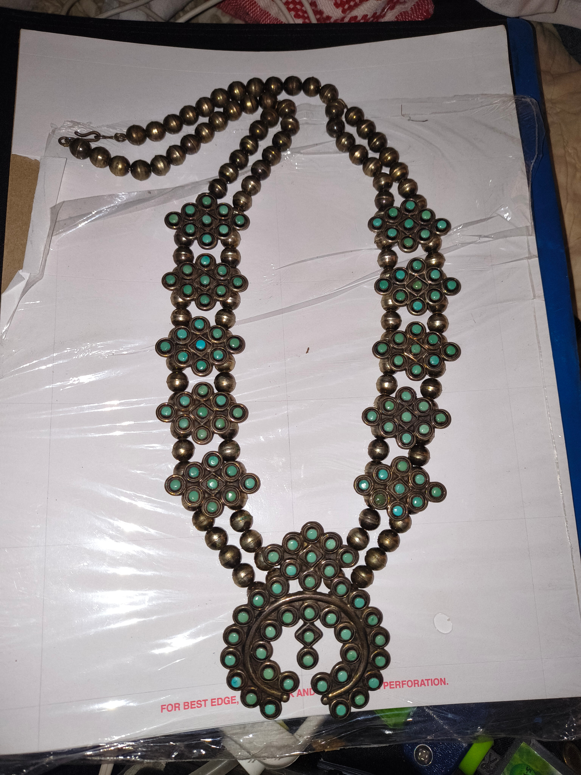 Thanks for your response. I’d leave the necklace exactly as it is (as @Steve recommended, too). Leaving the patina on sterling silver or polishing it clean is a personal preference. Best to leave that up to the buyer. I’d try to find a reputable appraiser who has experience appraising Native American jewelry. Make a list of any questions you have about the jewelry to ask the appraiser. Good luck!