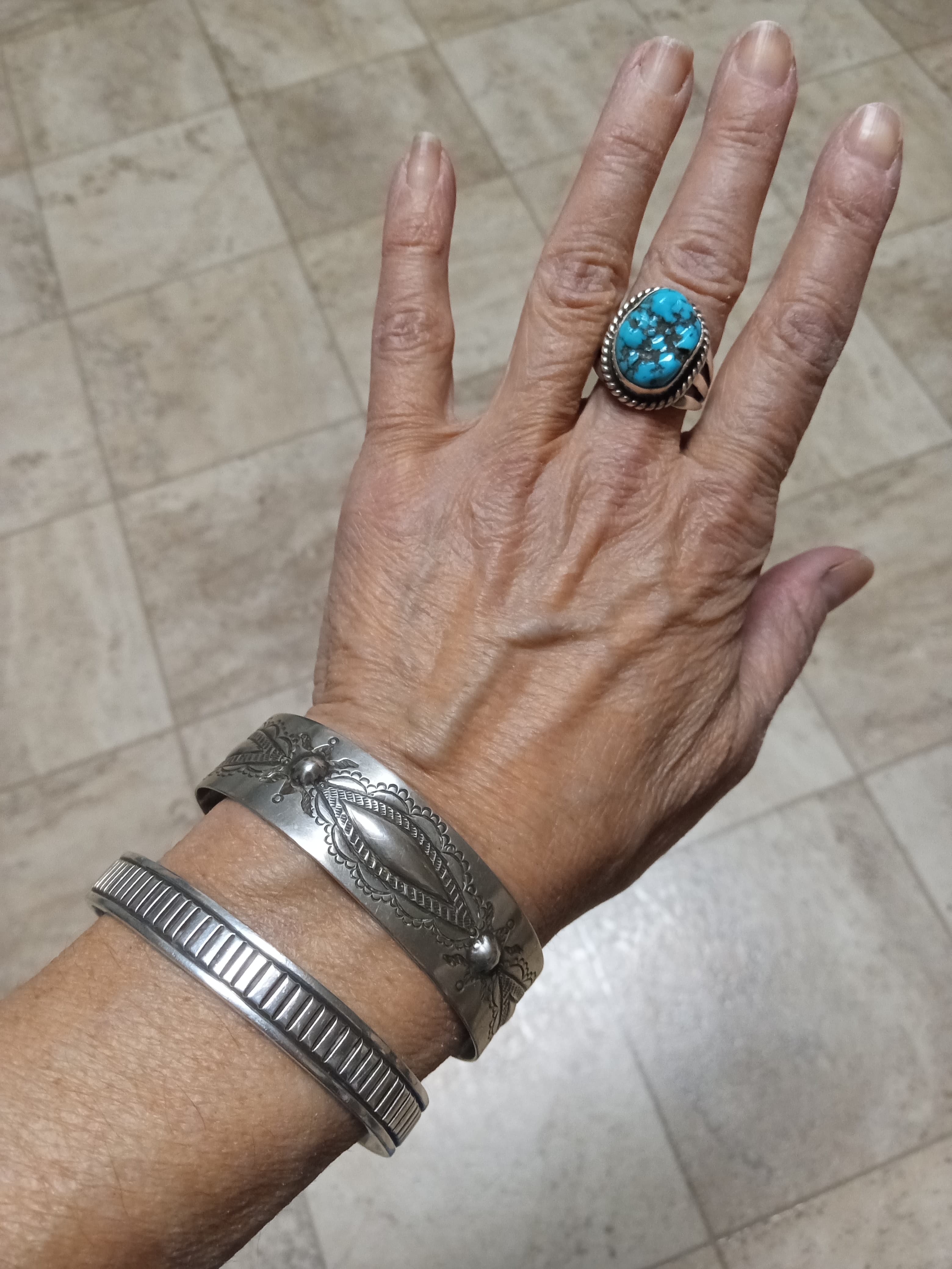 @Stracci Well, that suject line caught my attention, lol. Nice cuffs & a classic turquoise ring. Fingers crossed that the repousse cuff is an early piece.