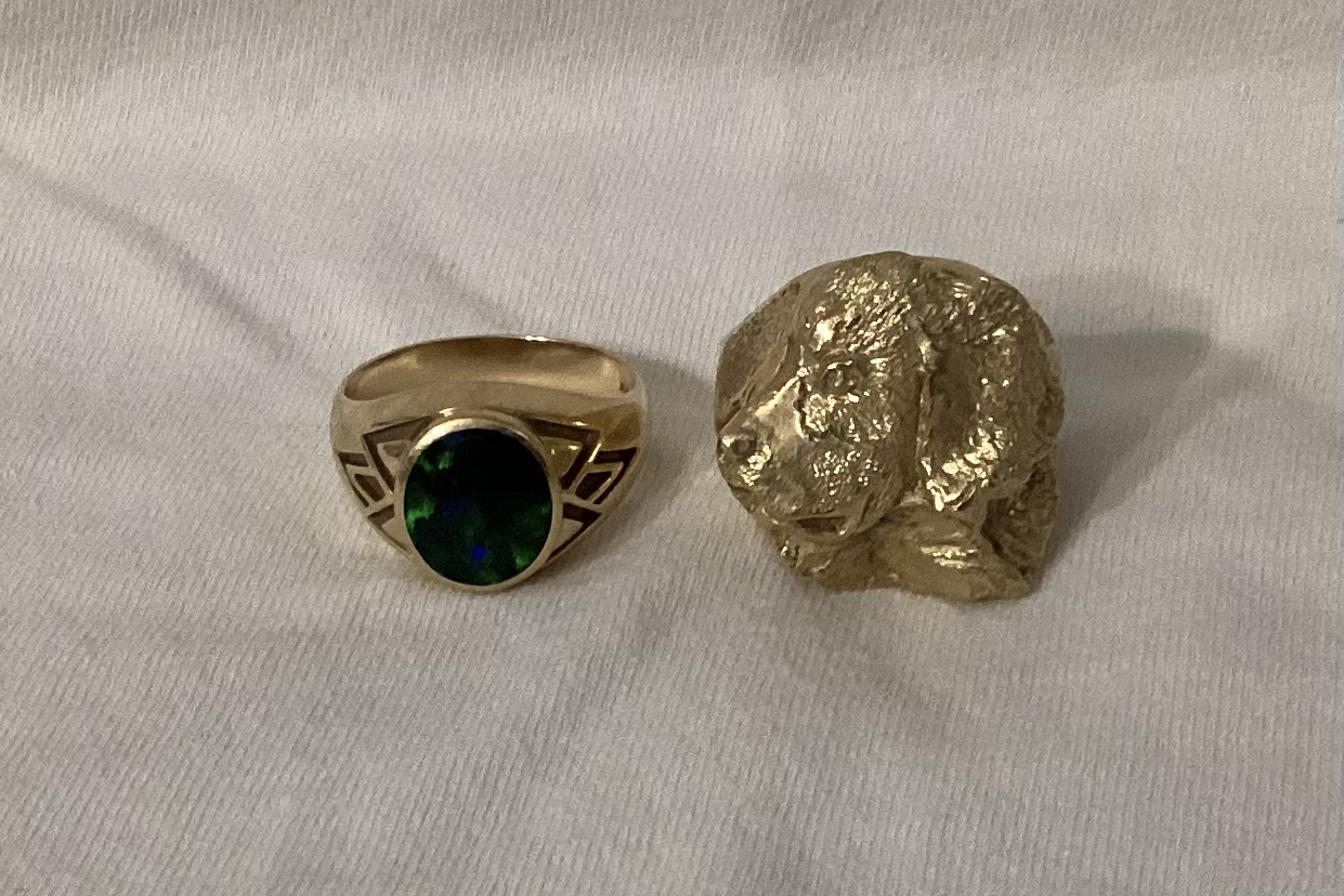 You are correct @CyanideRose18 , opals are hard to photograph. Here is my LR blue &green black opal ring. A bargain when I purchased it, and my Bernese Mountain Dog that went to Westminster in 2000. I had a sculptor do a head and cast in 18k.