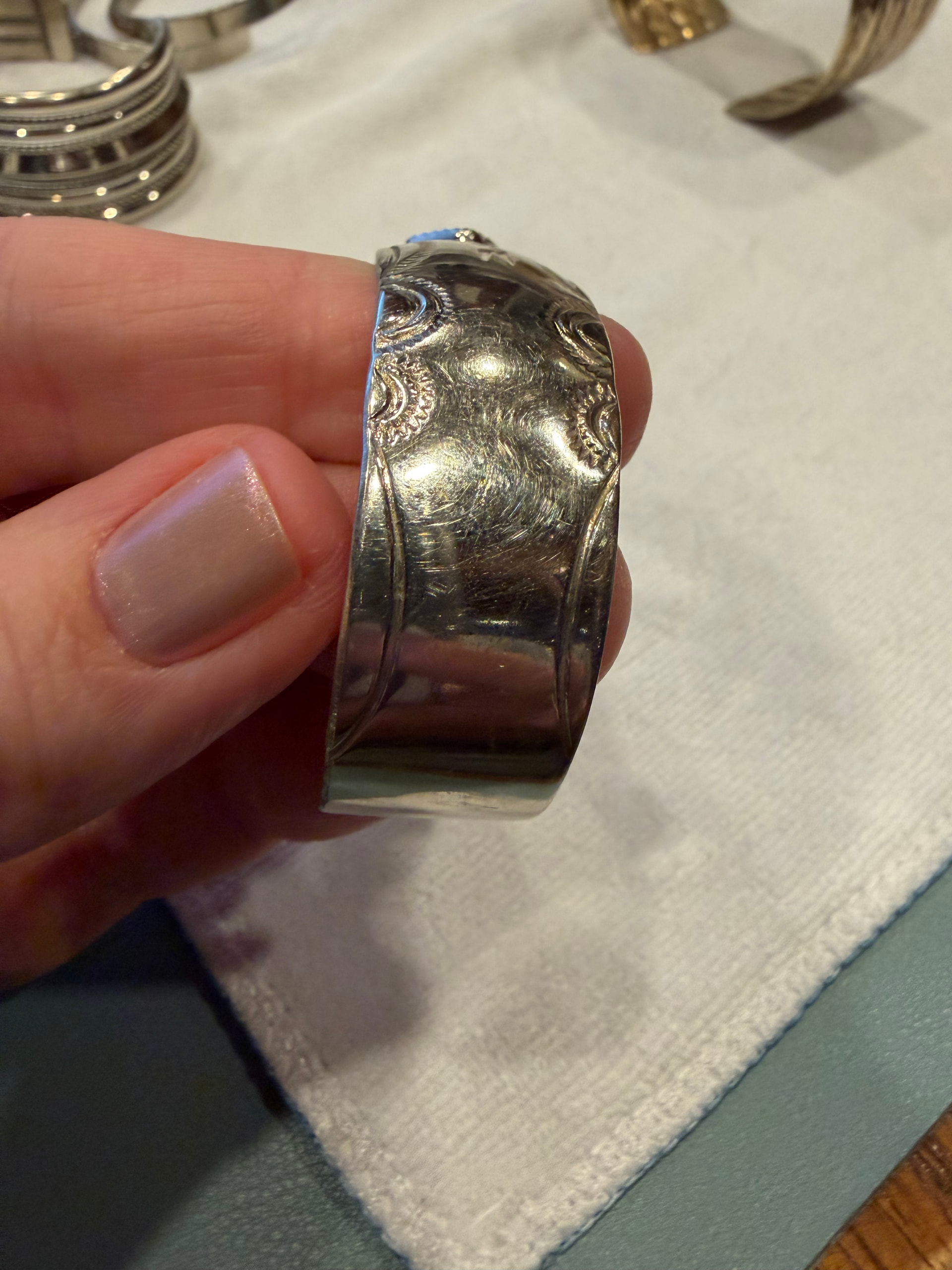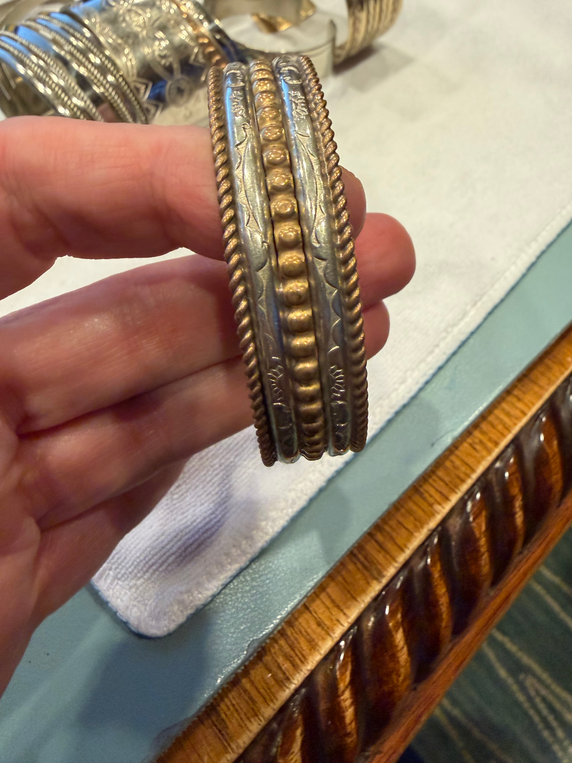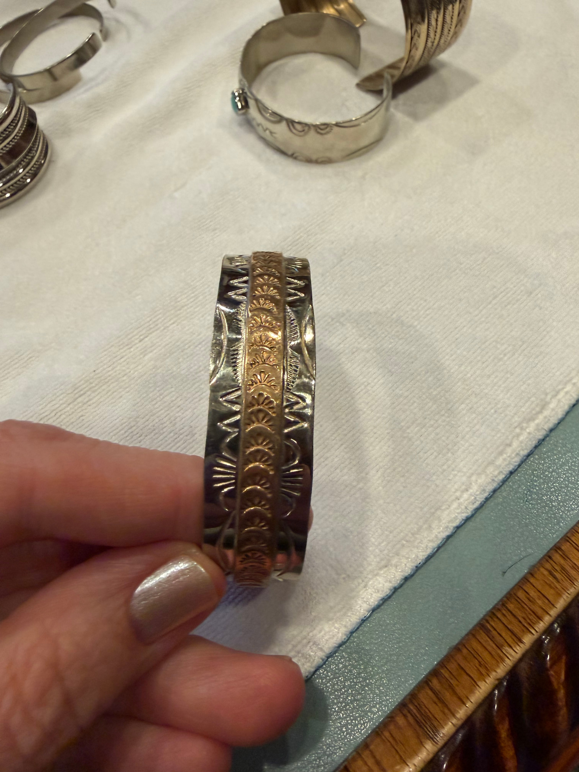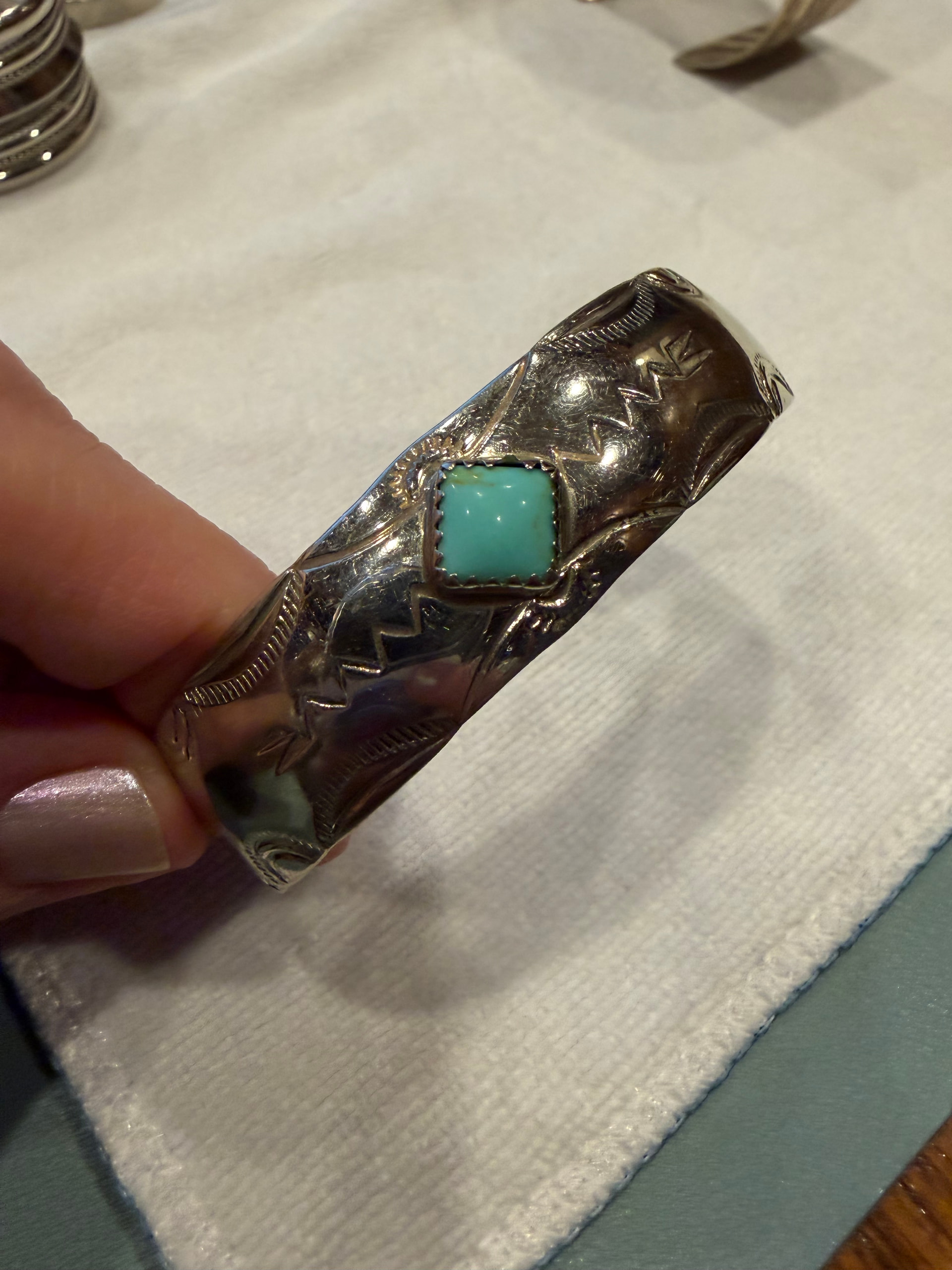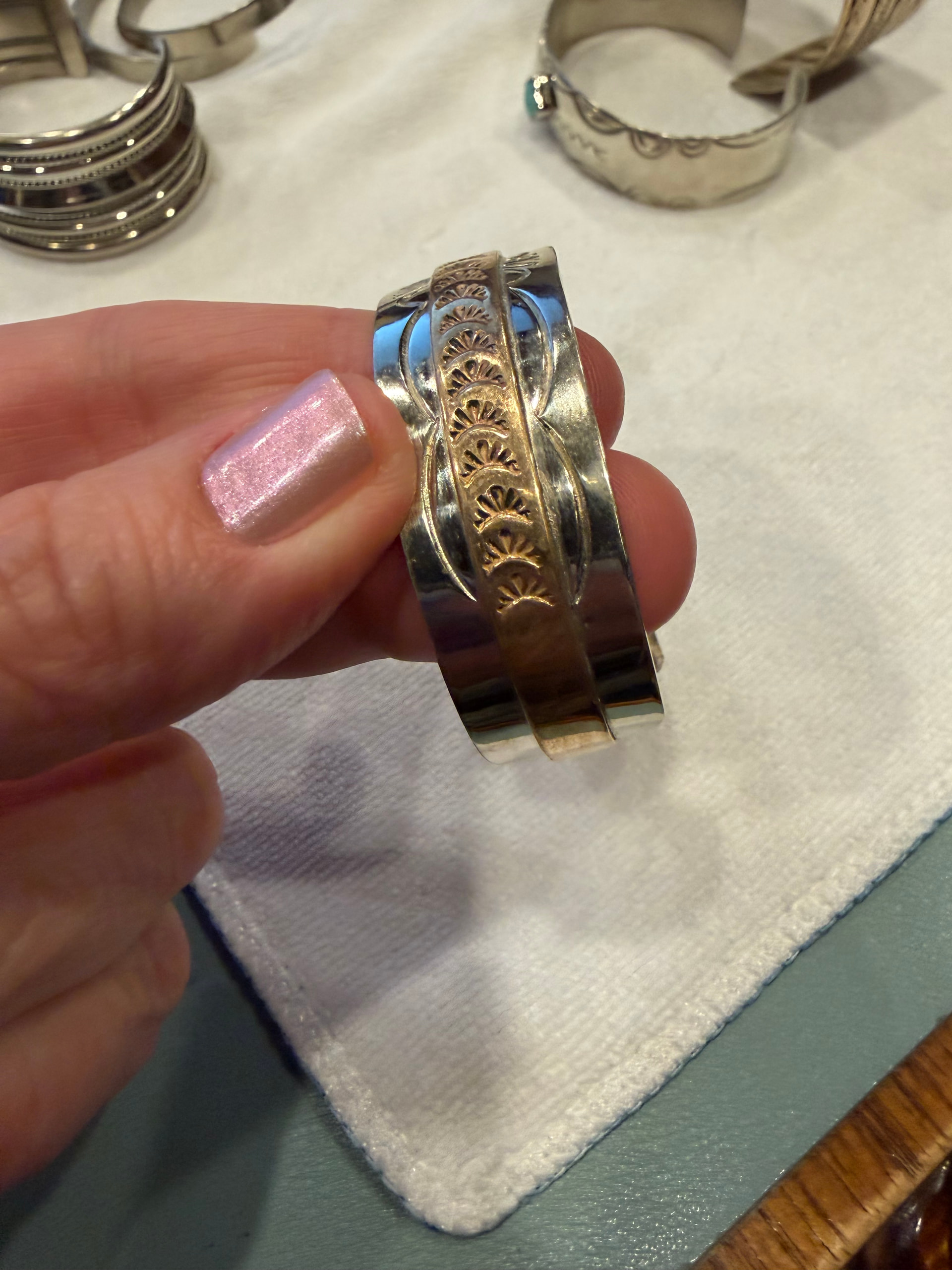 Here’s #8. It has no stamp or makers mark. Also was in the same lot/from New Mexico. Not represented as Native American however none of them were as they were sold as “lot of silver tone bracelets”.