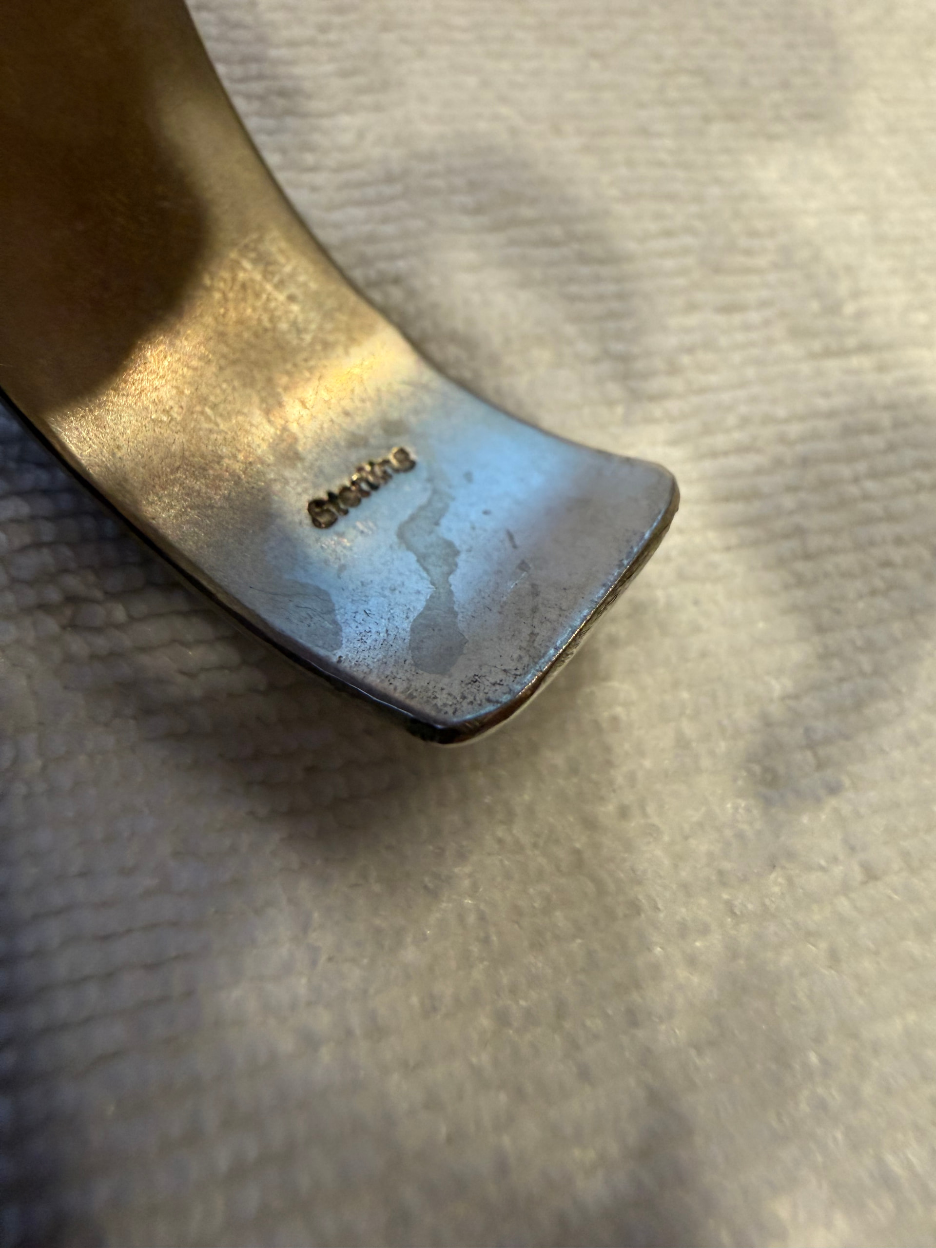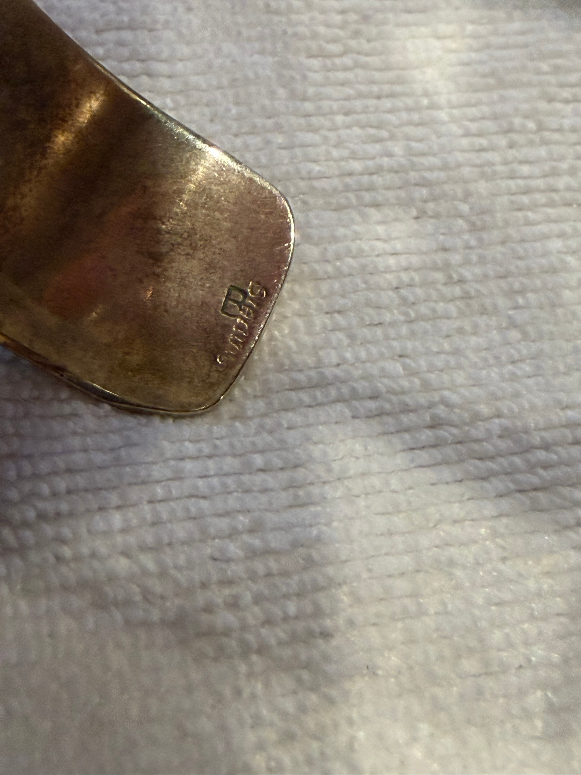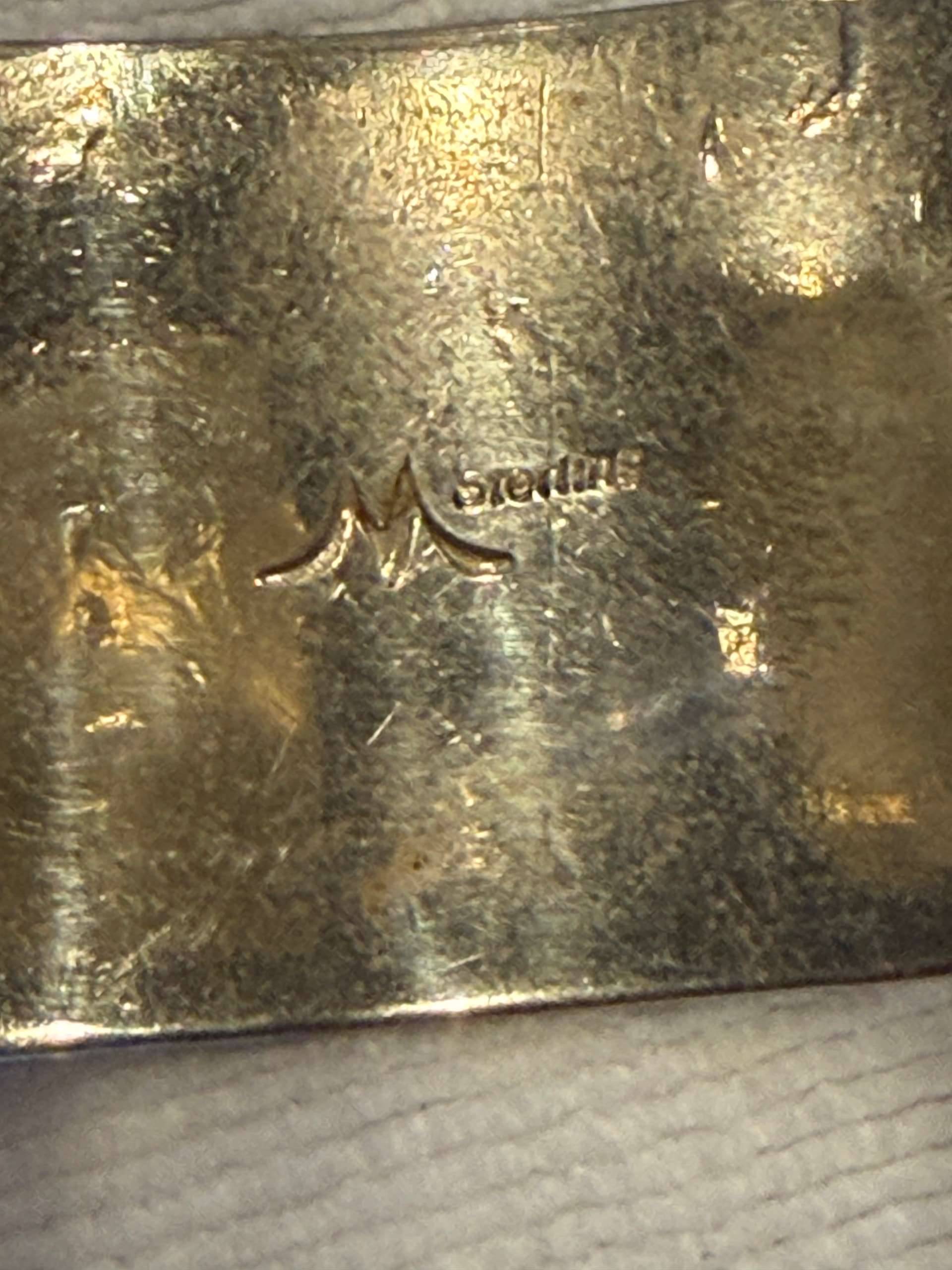 #7 is unmarked but it was in the same lot as the others. It’s quite heavy. Has some verdigris on it. I am not sure of the metal bc it is not stamped but it is silver colored and I think it could be silver but I guess I’d have to have it tested?