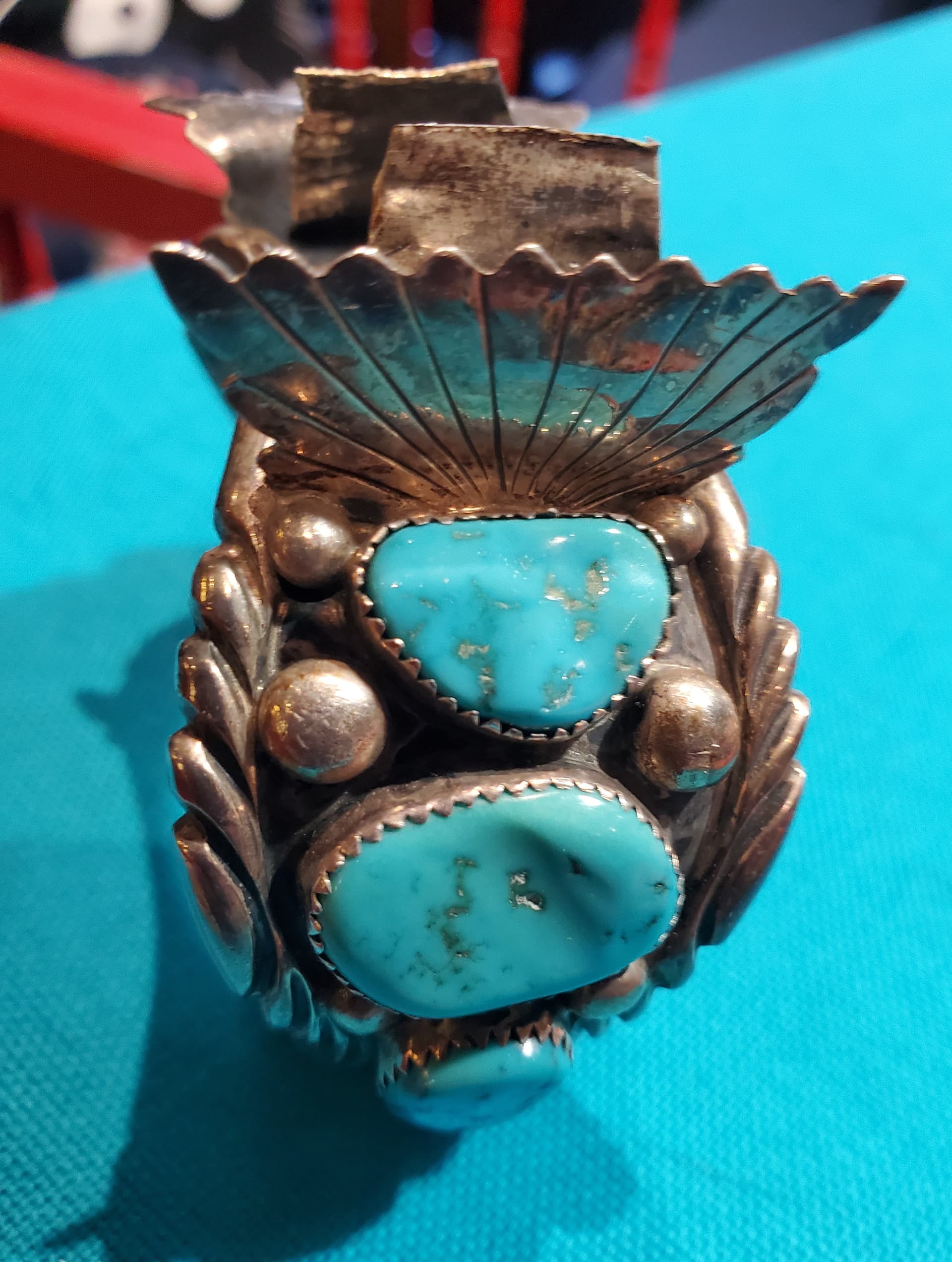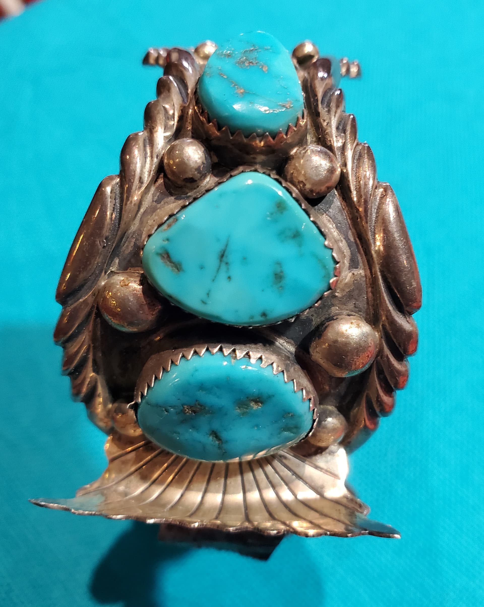 It looks heavy, a lot of silver and turquoise, I’d wear it! I have quite a few pieces are a bit older with no hallmark.