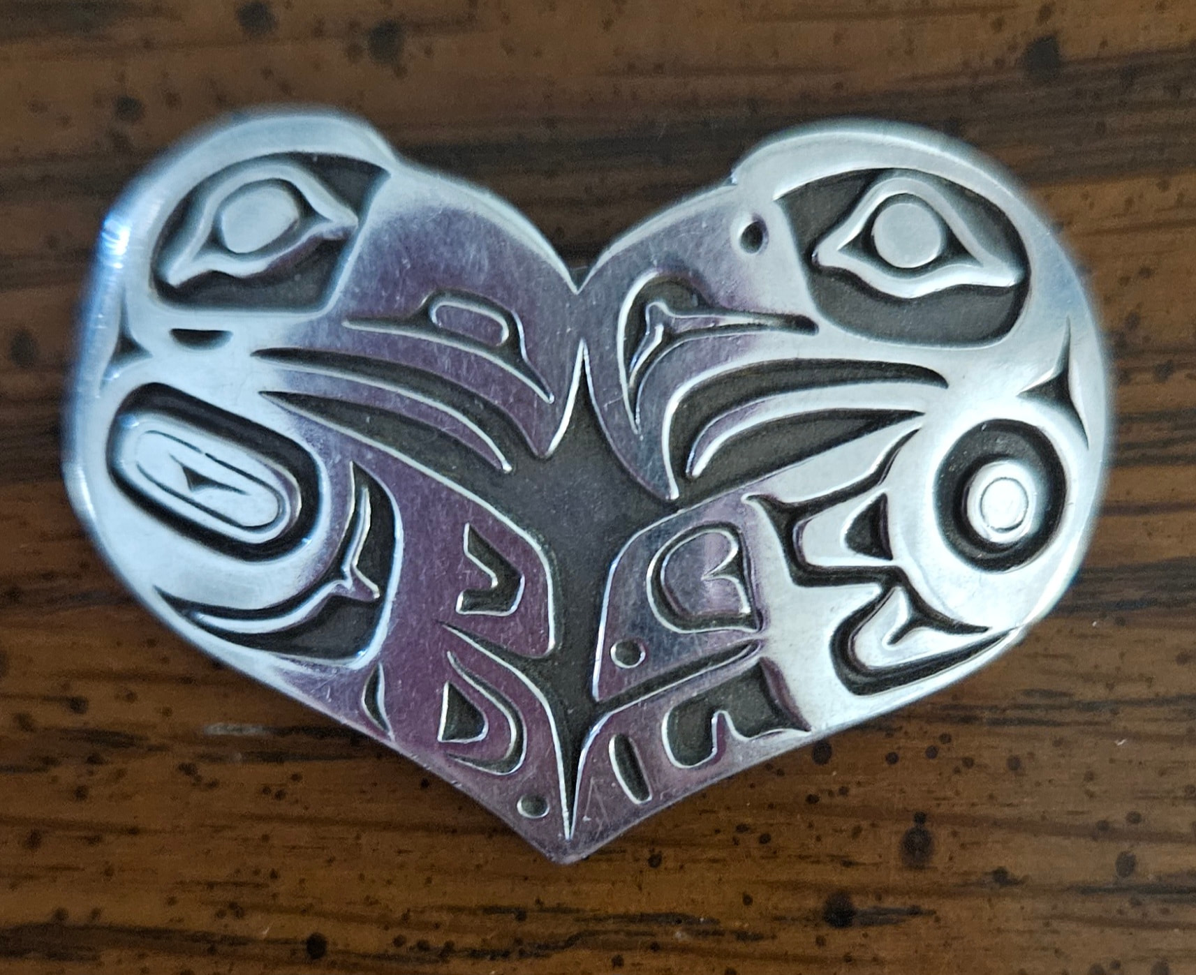 On your pin the artist has employed both here- if you squint your eyes you can see a 2nd face, likely Human- can you see the shoulder ovoids as eyes and the belly ovoid as a mouth? A visual pun for sure, but also a possible representation of a human transforming into a Spirit animal- the Eagle.
