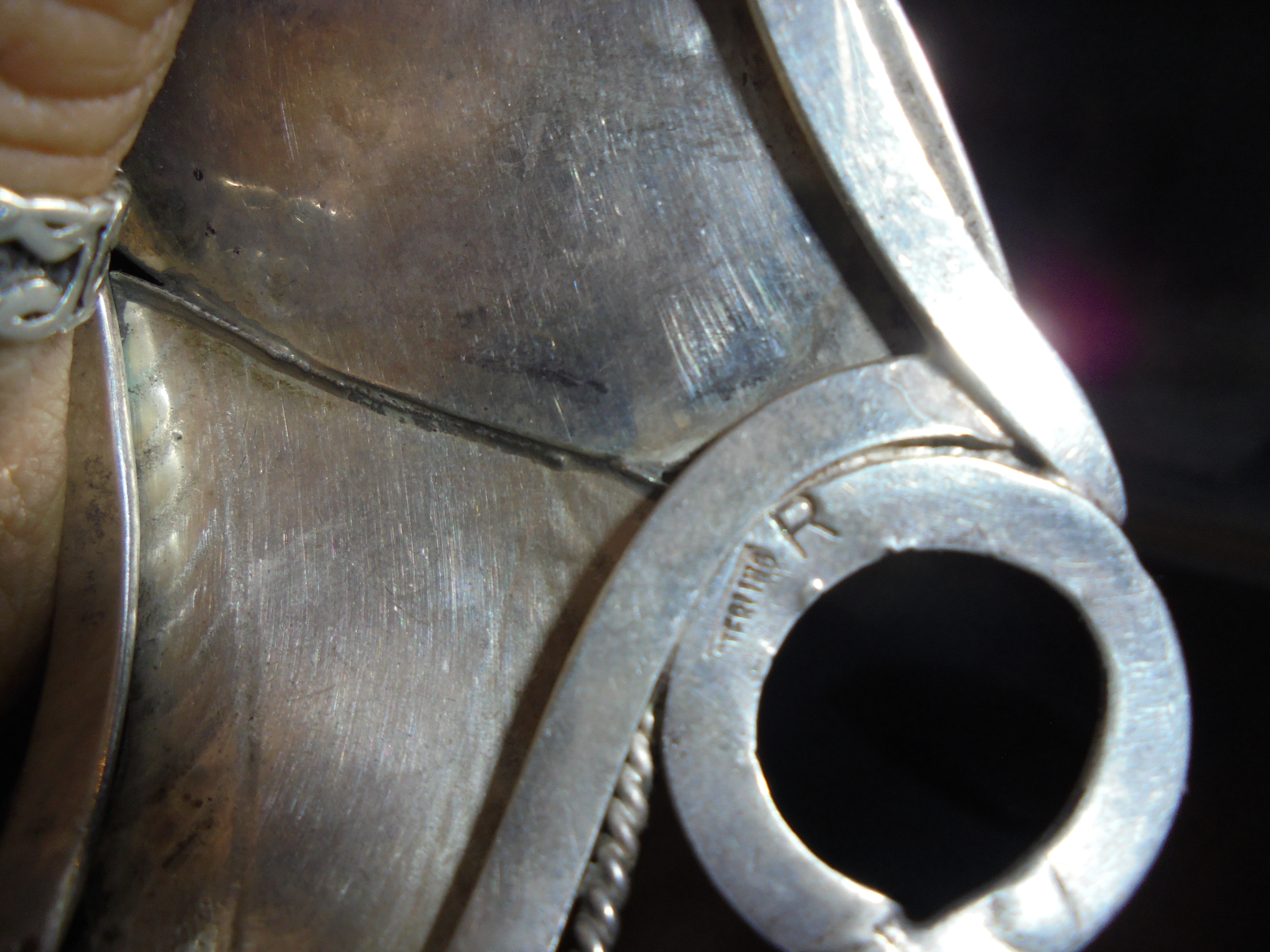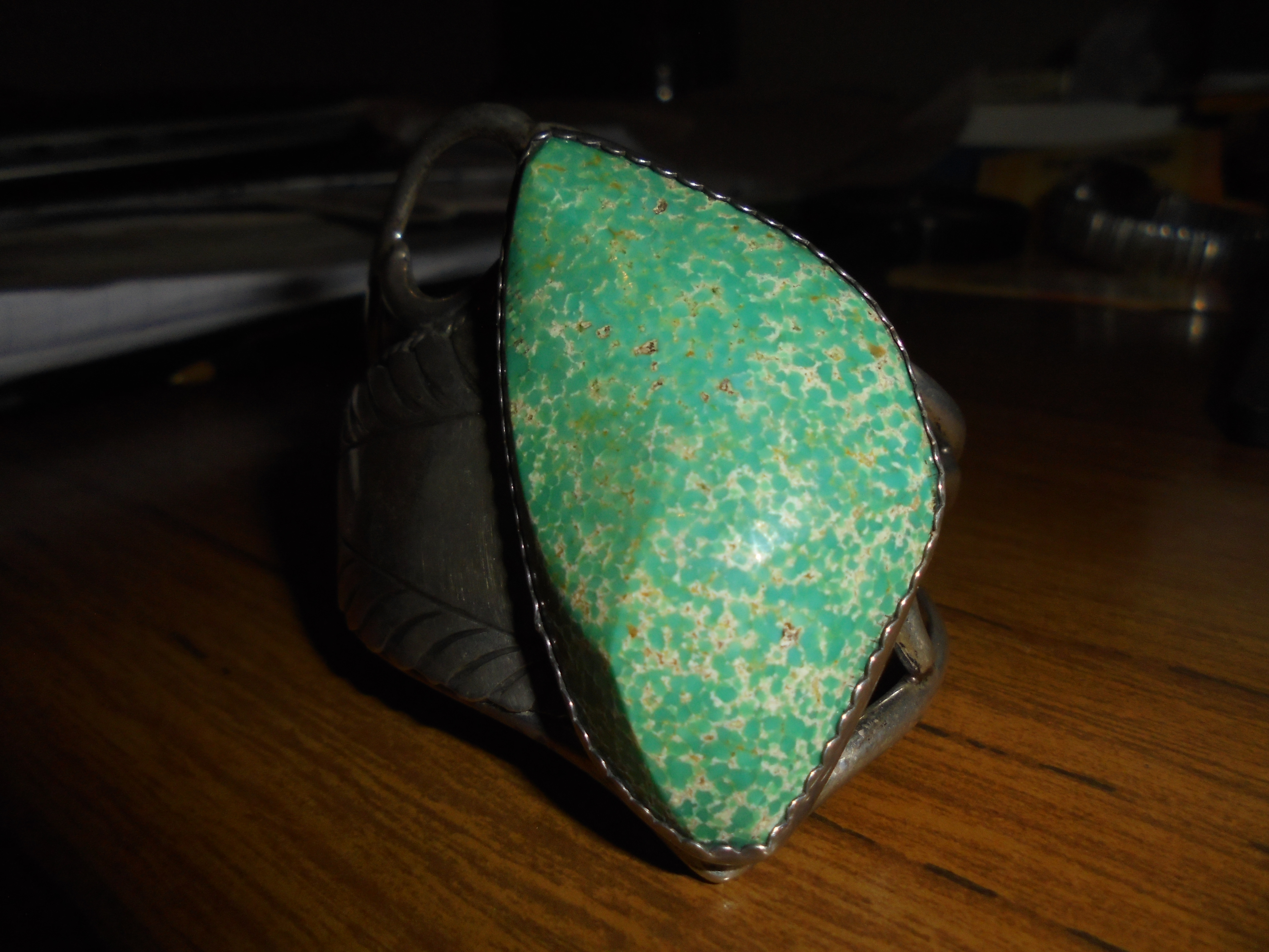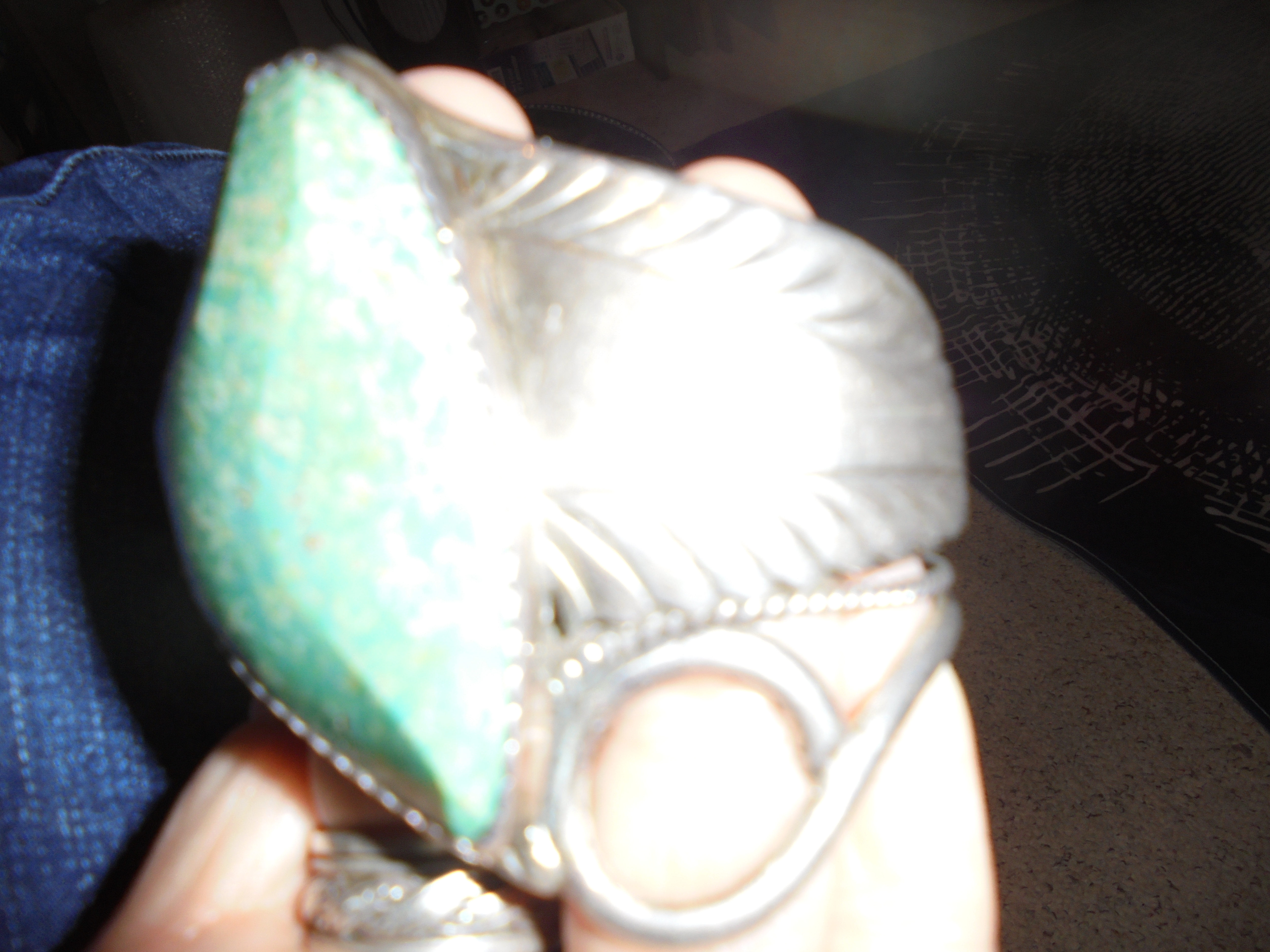 I got this beautiful turquoise and sterling silver cuff with the initial R stamped inside.