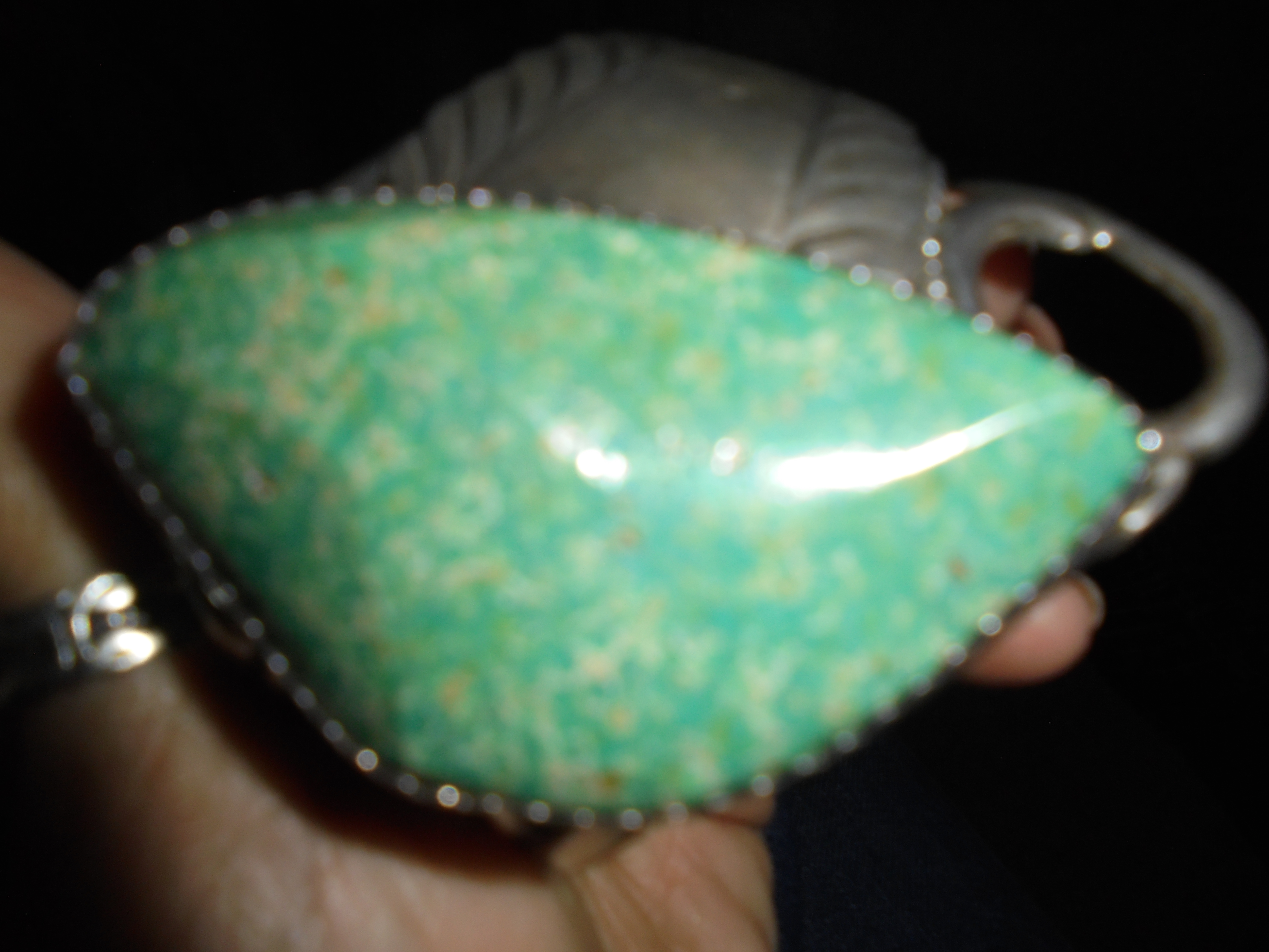 The stone might be Variscite, not Turquoise. Can you get some better photos of the stone? .