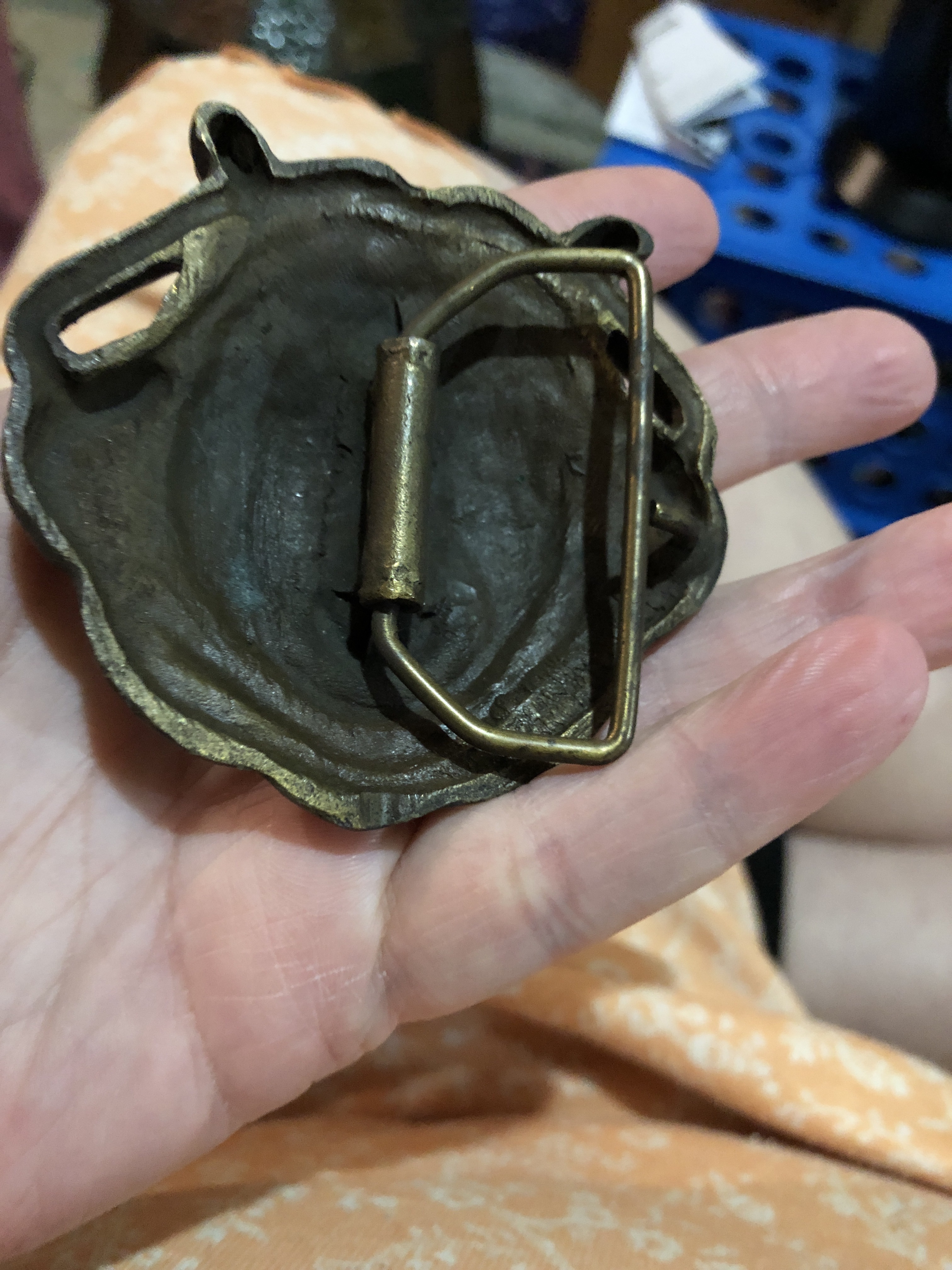 Can anybody tell me about this belt buckle? It was my grandfather’s he collected a long time ago. The closest thing I’ve found out so far is it’s a brass insect face buckle.