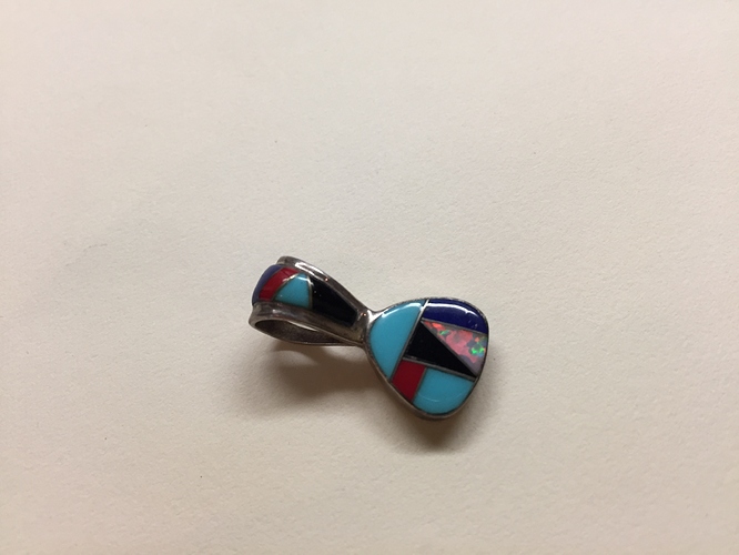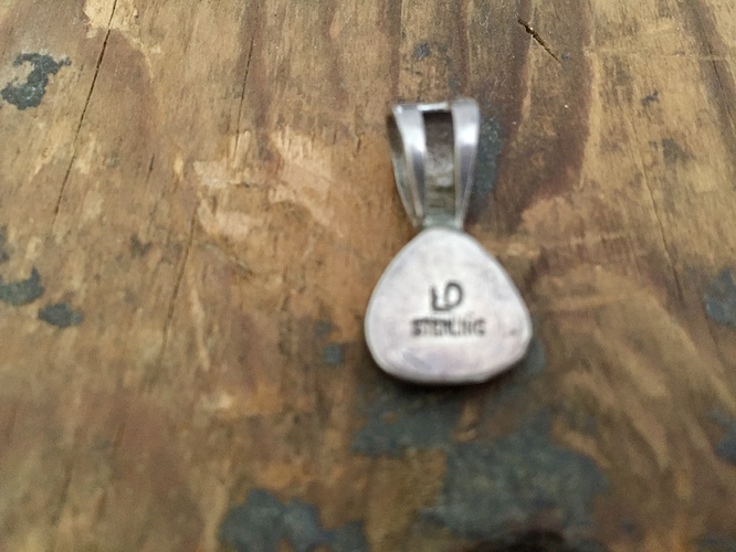Additionally, I am curious about this inlaid pendant. It is marked LD Sterling. Do you know who this might be? Also, is it possible that the slice of fire is opal?