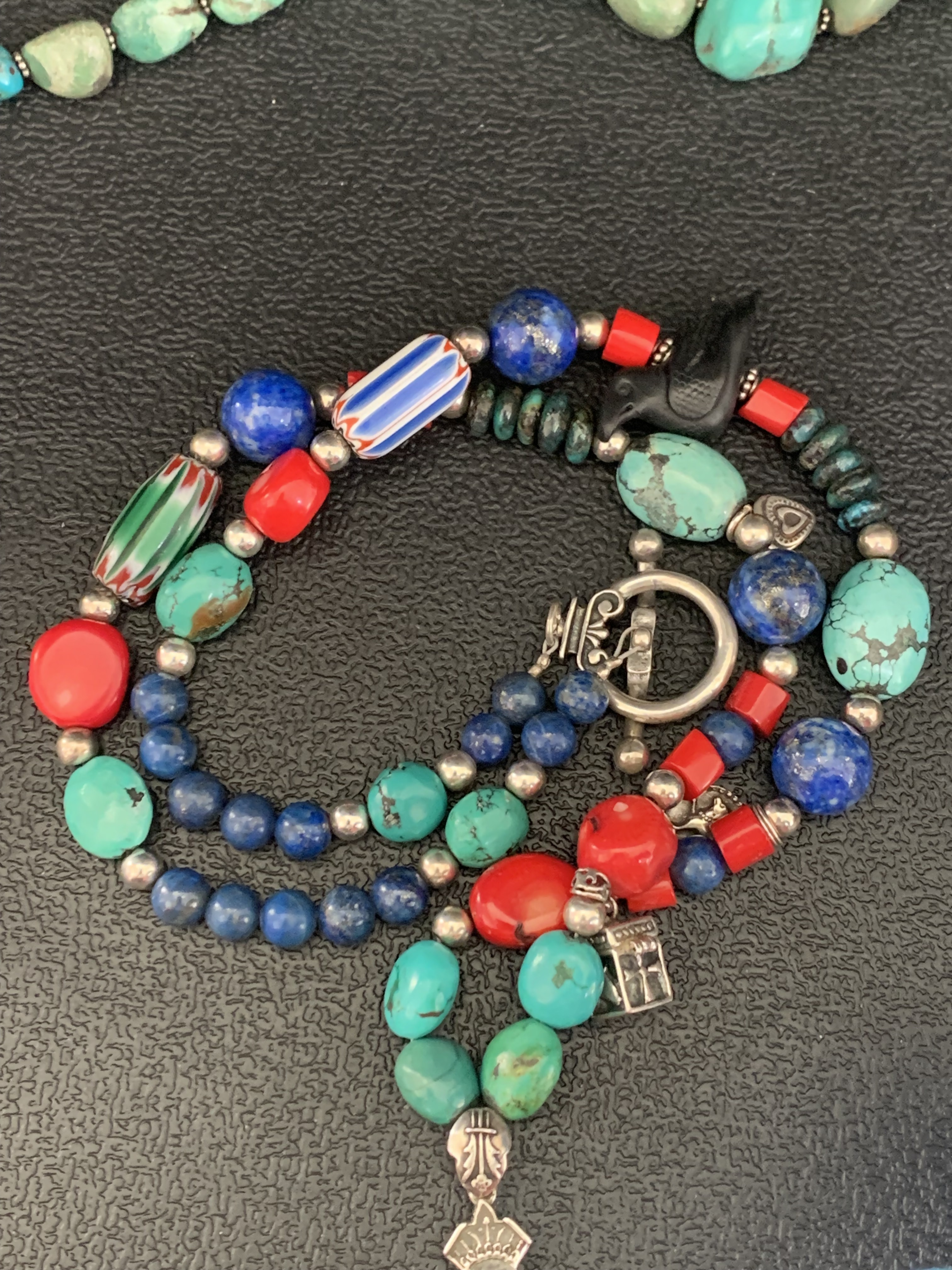 I started buying bags of jewelry from thrift stores and found quite a few pieces of real gold jewelry. So I was hooked after that lol. This is one of the sterling necklaces I found in a bag. The chevron trade beads really stood out to me because I collect them but I just wanted to share. They added some cute little sterling charms and a prayer box (that Iām hesitant to open) But I love the creativity put into making pieces like this.