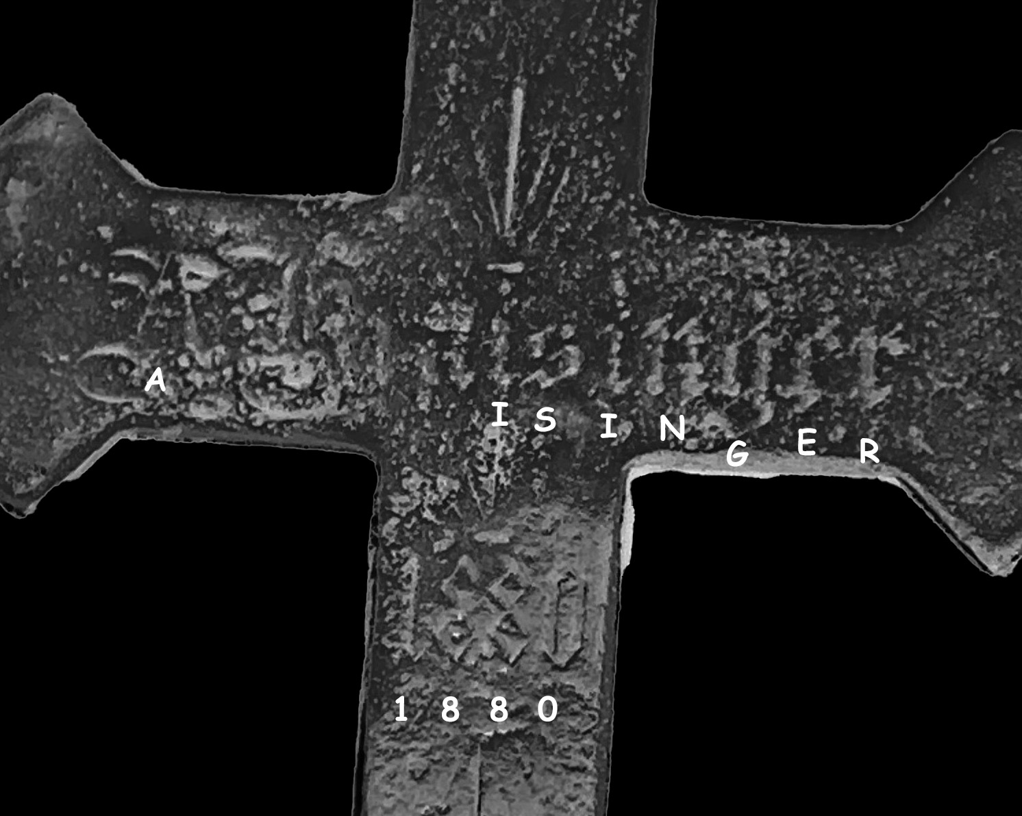 Beautiful cross! Has a medieval look. I also think it says 1880?
