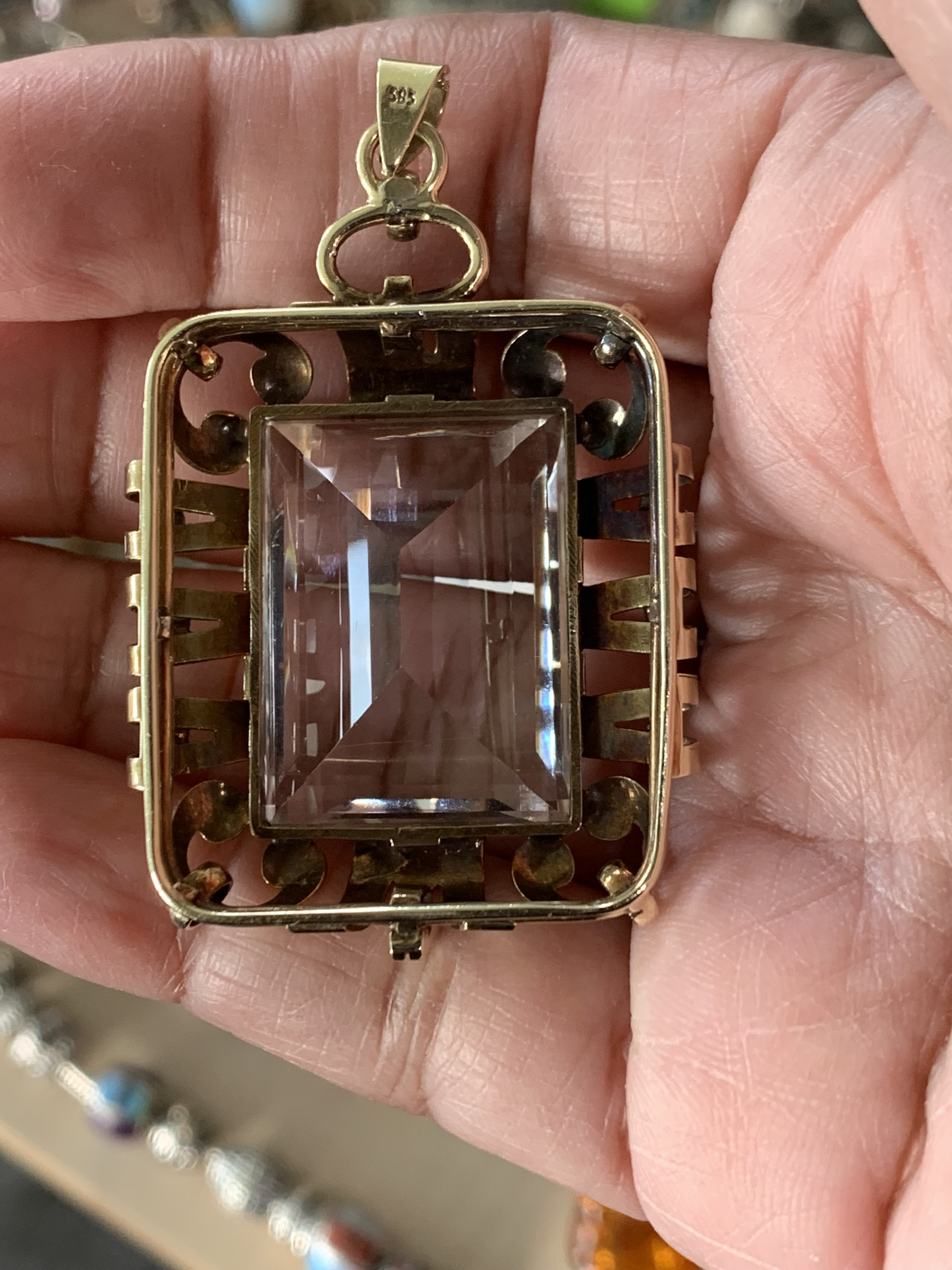 This is another piece I found I must have tested the gold ten times. It is 14K and topaz but way too big and heavy for me at 21 grams.