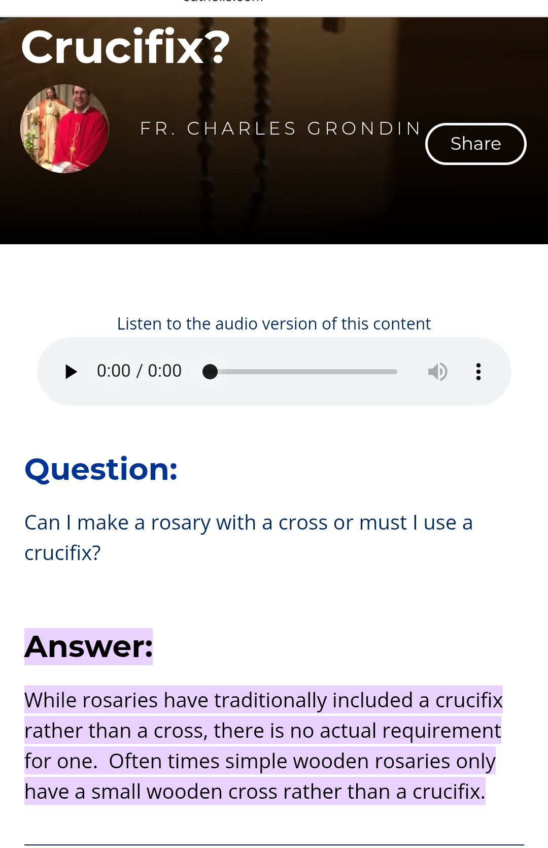 Although I do believe that the majority of Catholic rosaries have crucifixes as versus only a cross (as noted, it’s traditional). I would have had no idea except for my husband coming from a big Catholic family