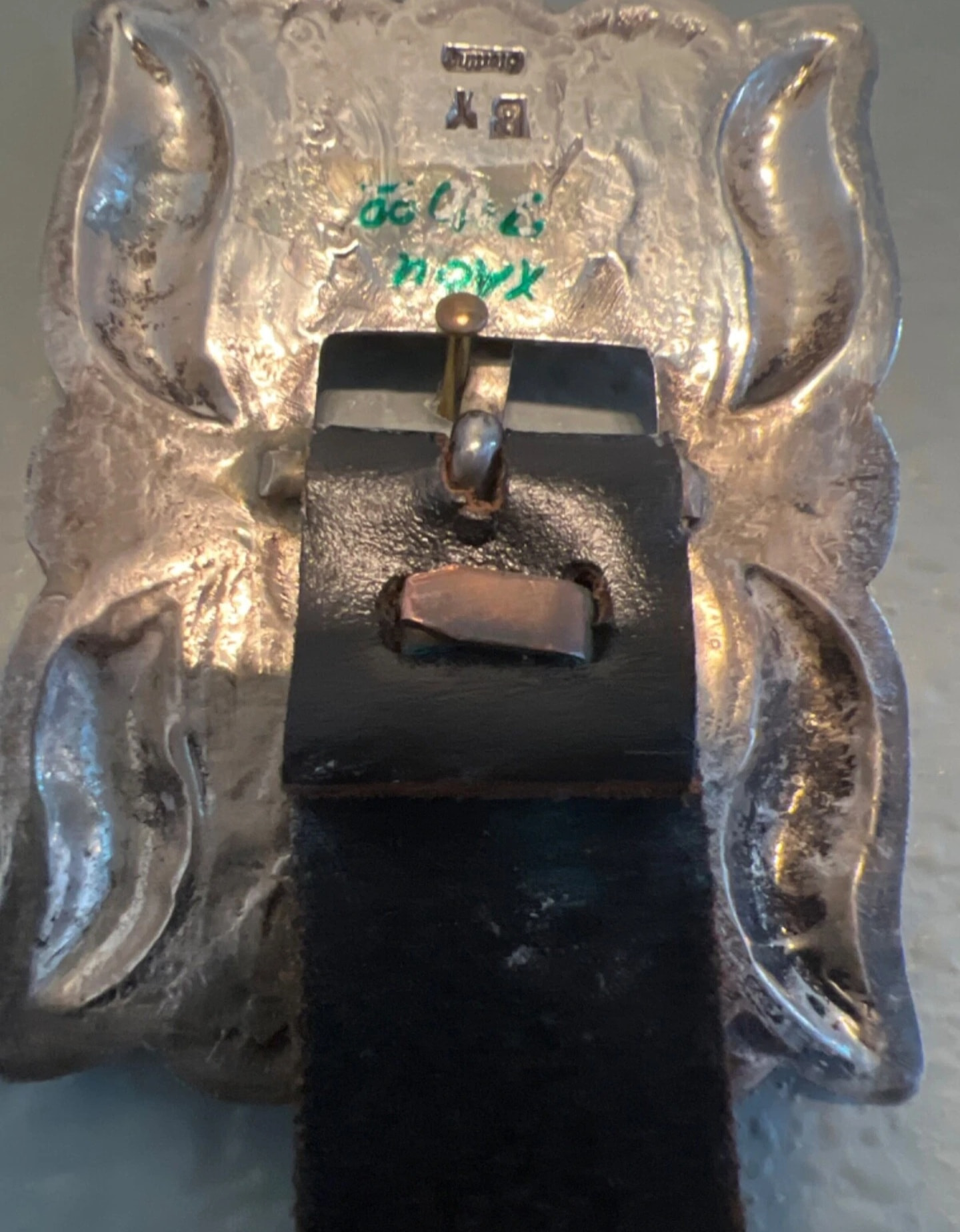 Here is a somewhat similar belt that sold in February. This one is hallmarked with “BY” and “STERLING”.
