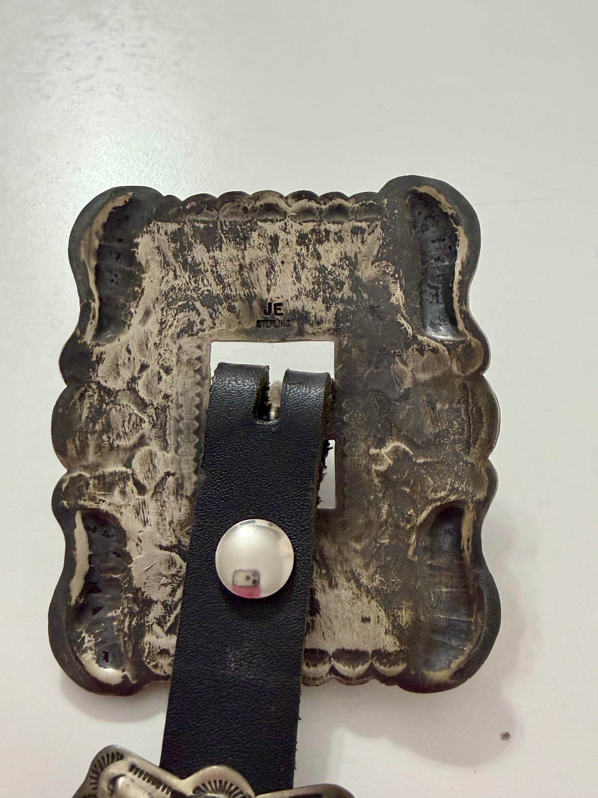 Hi! I found this gorgeous belt at Goodwill. The only markings are on the buckle, JE sterling. I don’t know if the conchos are also silver or if the stones are turquoise. I would love any information about it.