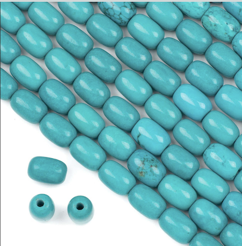 [Large Hole Turquoise Howlite 10x14mm Barrel Beads with 2.5mm Drilled Hole - approx. 8 inch strand]
