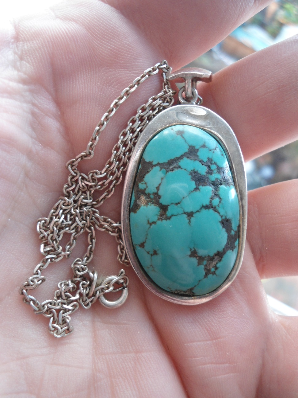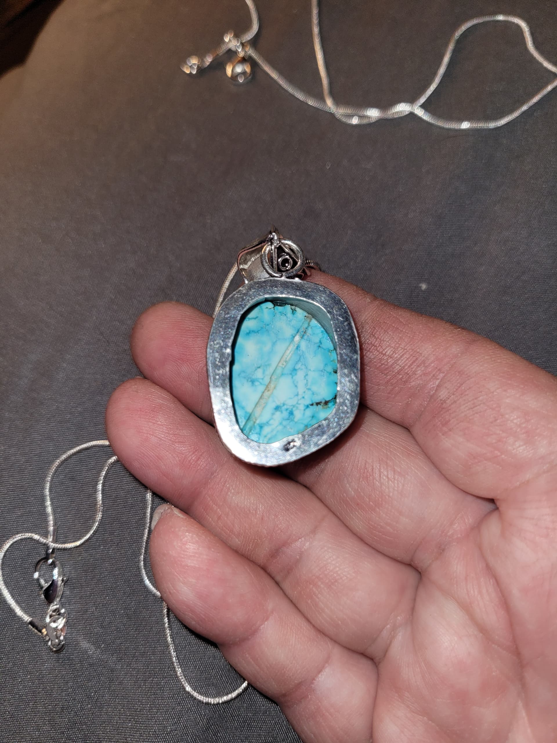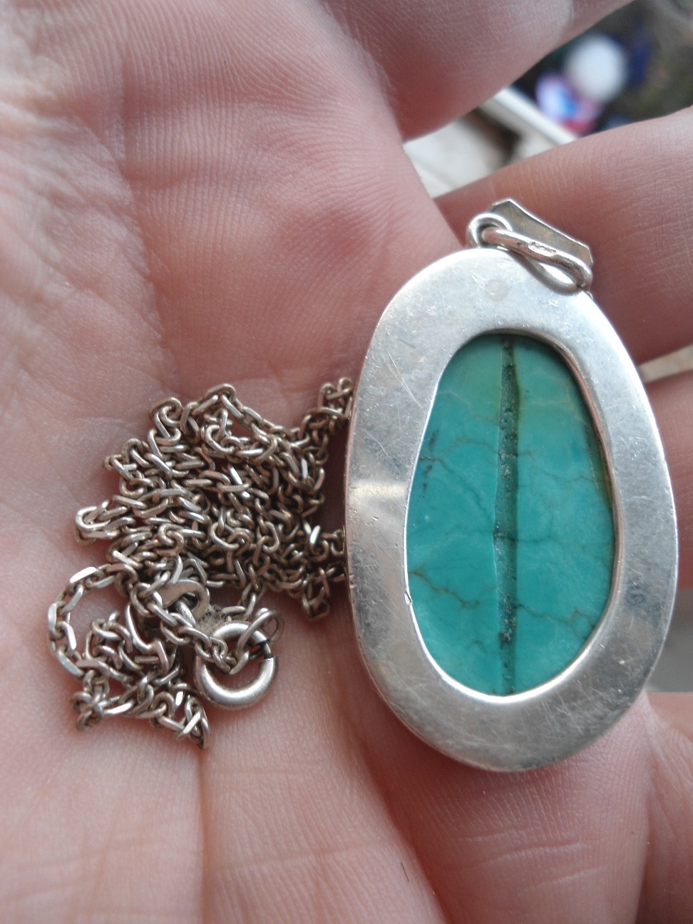 can anyone let me know if this turquoise stone looks genuine or not, and if so where its likely from, has a groove on reverse
