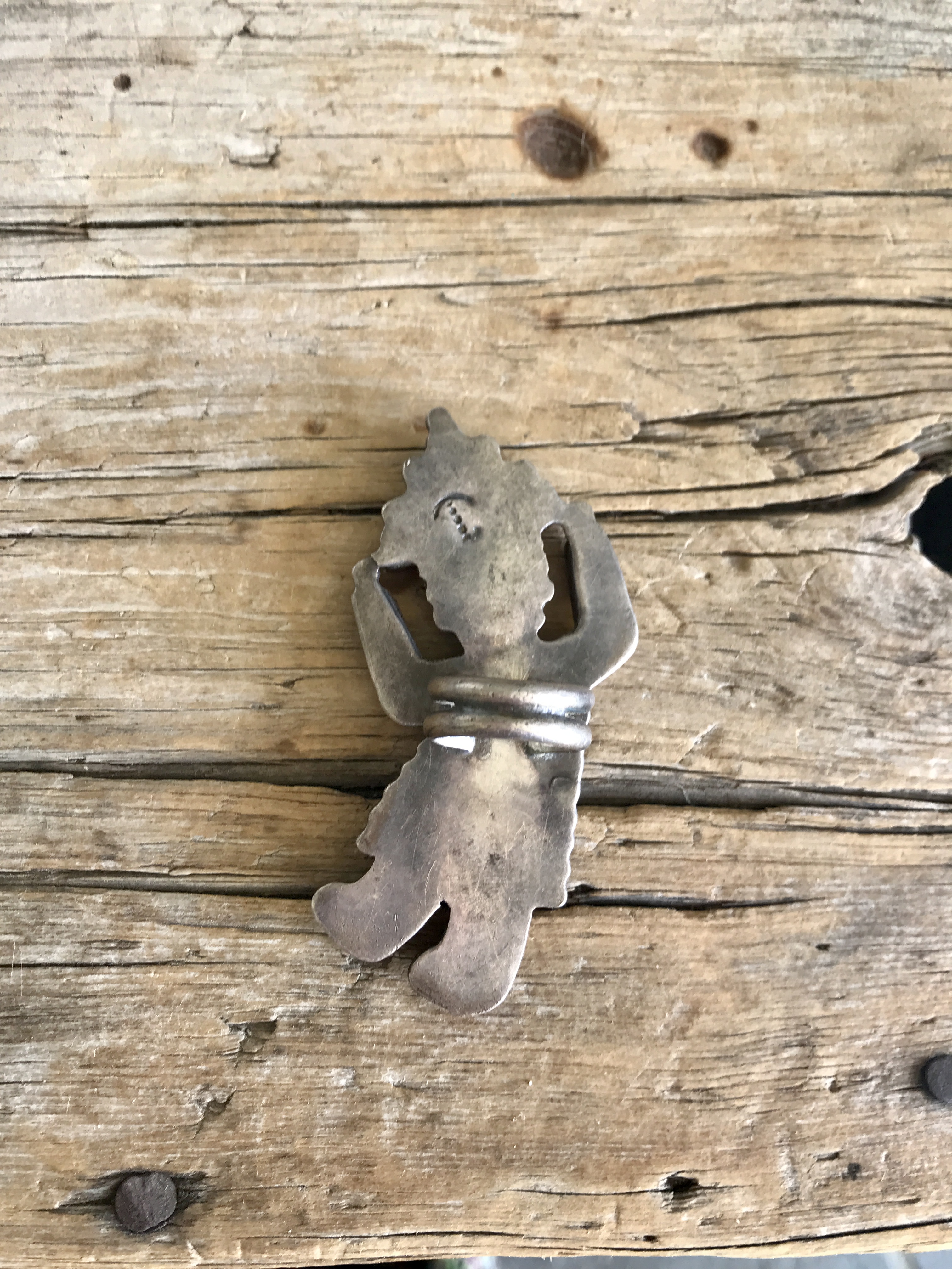 I would think of the Rainbow Man as more mythology, not associated with being a kachina. It is always difficult to get an idea of age, especially when you have some old Rainbow Man creations, but the two half-round wire ring shank makes me think it is not pre-70s.
