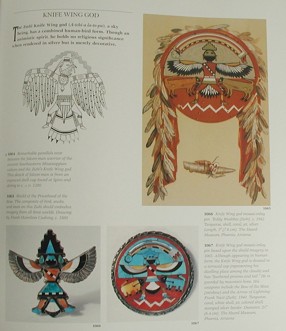 Those are fabulous! I really like the first one with the graduated feathers on the outside. Beautiful stones, stamping and silver work. Could it be JOE TORTALITA? Here is one of his thunderbirds.