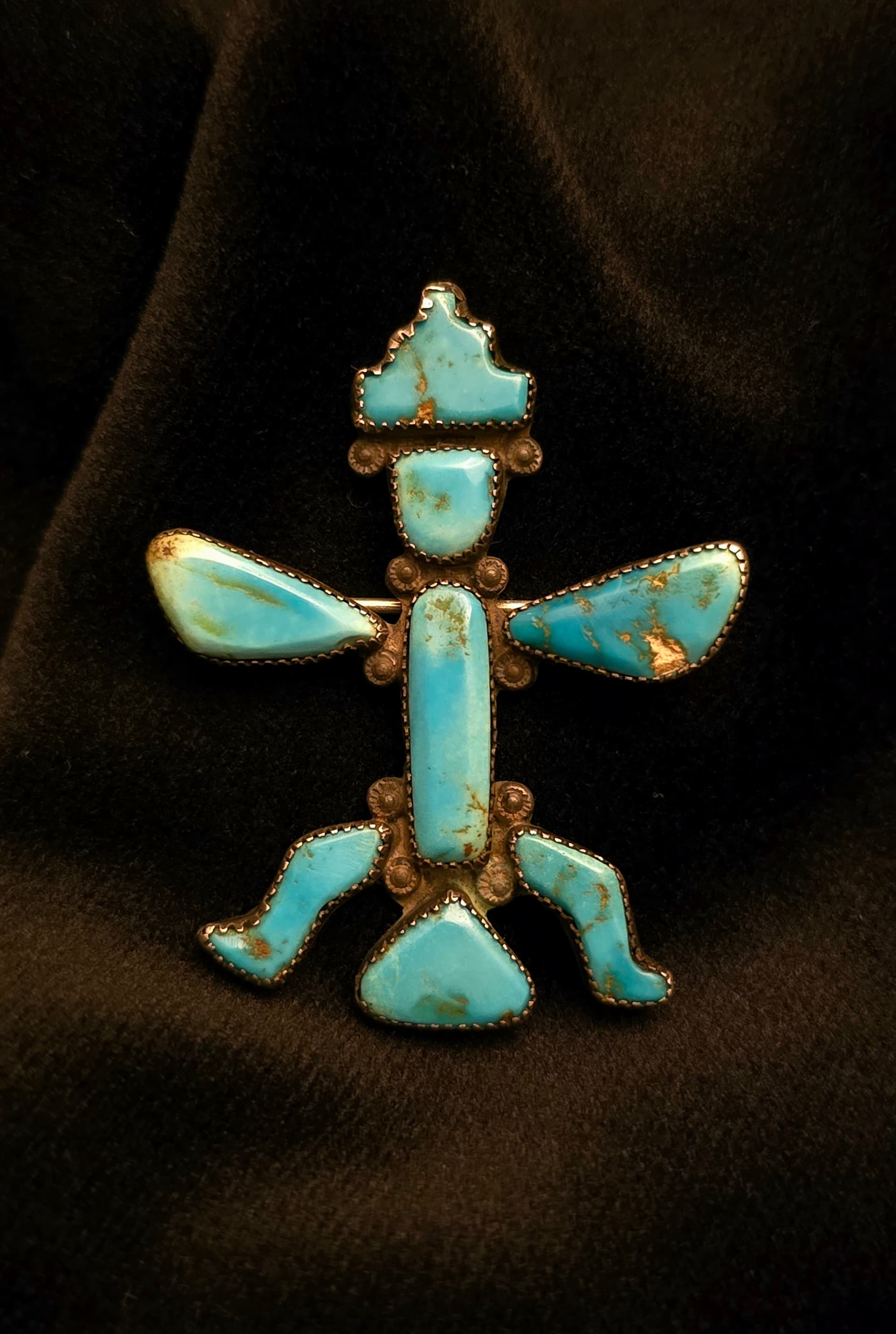 I don’t know if Knifewings are capable of communicating with one another, but something caused me to recently cross trails with this one. One of his turquoise adorned relatives, that I’ve previously shared, is my absolute favorite pin to wear.