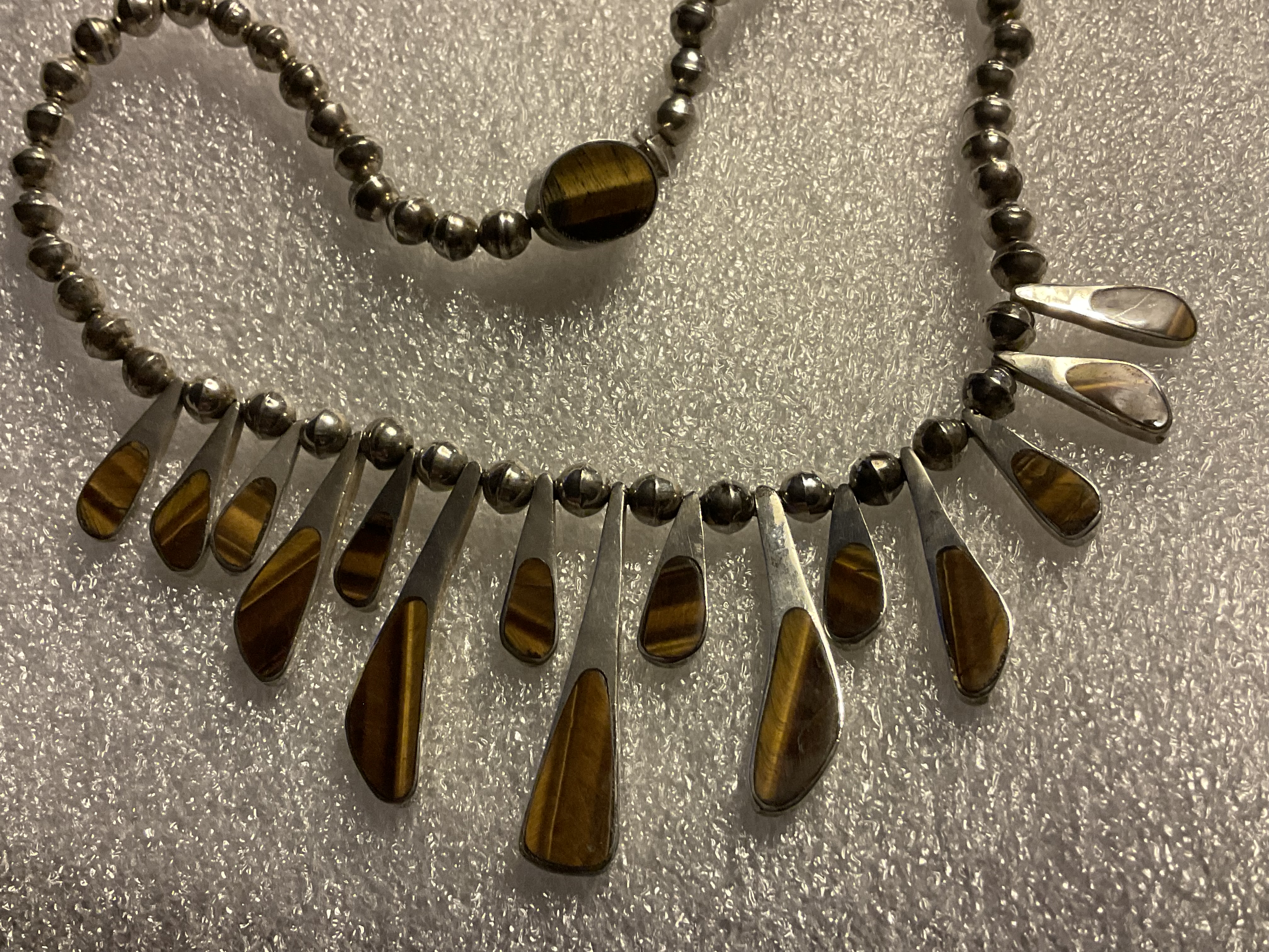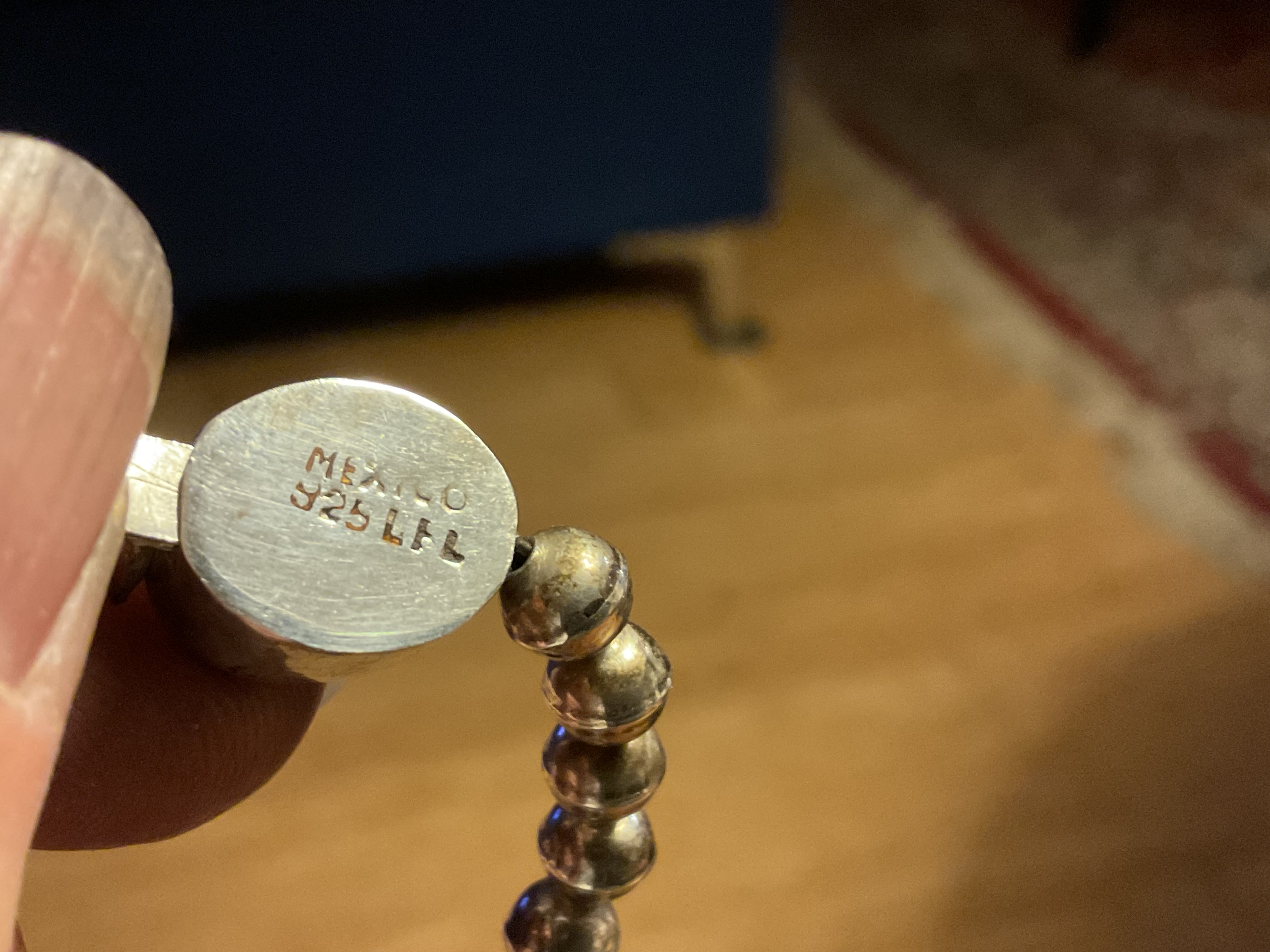 I typed in Sigi Pineda and got this thread…so instead of starting a new topic, I shall post here. I was bored tonight and polished a necklace I bought two years ago from SGW, back when deals were a little easier to find. It is a Sigi Pineda design but marked By LPL or LFL? Does anyone know if this is someone that worked under Sigi? I’m hoping they’re are some Taxco experts out there. It is a nice tigers eye necklace in good shape.