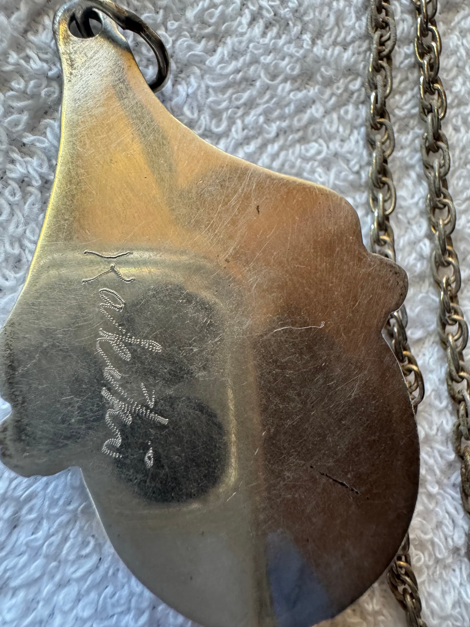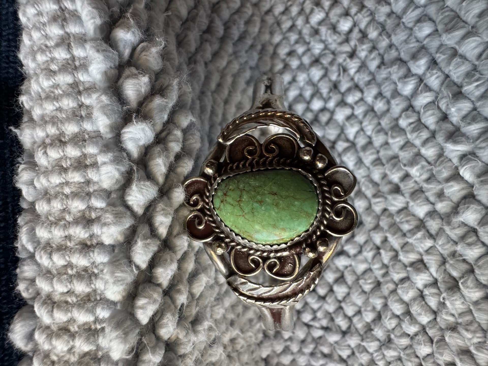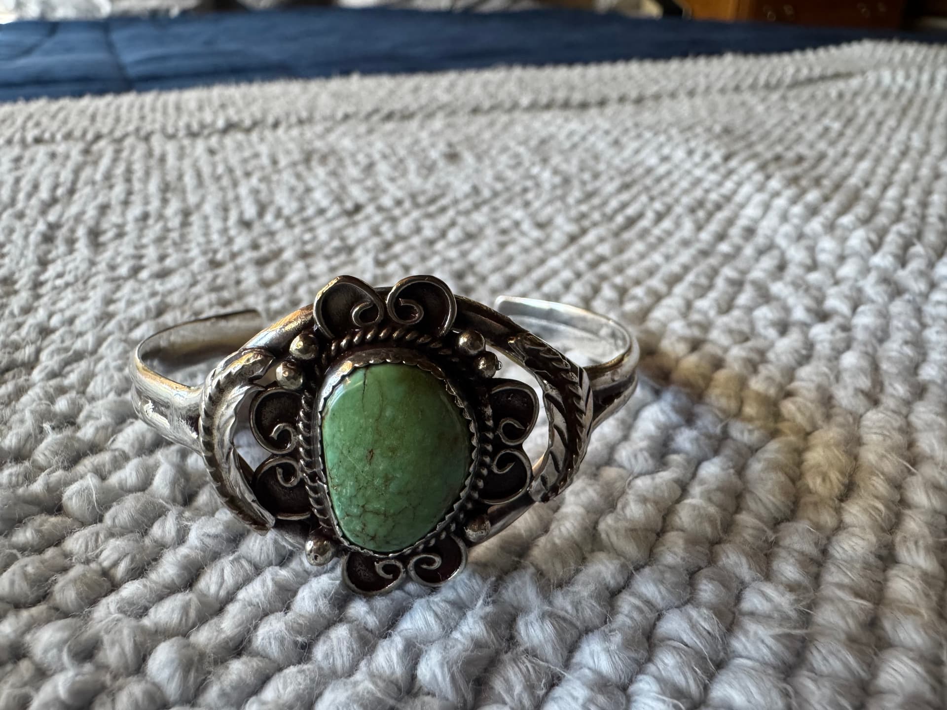 Hello Kimbe! Today I was cleaning out my cache of Native American jewelry and I believe I have a couple pieces of your dad’s. Long story short: I could possibly have met your father. I was an 18 year old kid who happened to follow my boyfriend from WI down to AZ to work at the “Dateland Travel Center” as it is now called. Boyfriend’s father managed the place. This was back in 1977. We would buy jewelry from various Native American artisans to sell in the travel center gift shop. I was able to sit in on some of these meetings; I was in awe of the cases full of their beautiful creations. Anyhow, that is how/when/where I acquired these two pieces of your dad’s. I was able to clean up the pendant part of the necklace but the chain is hopelessly tarnished.