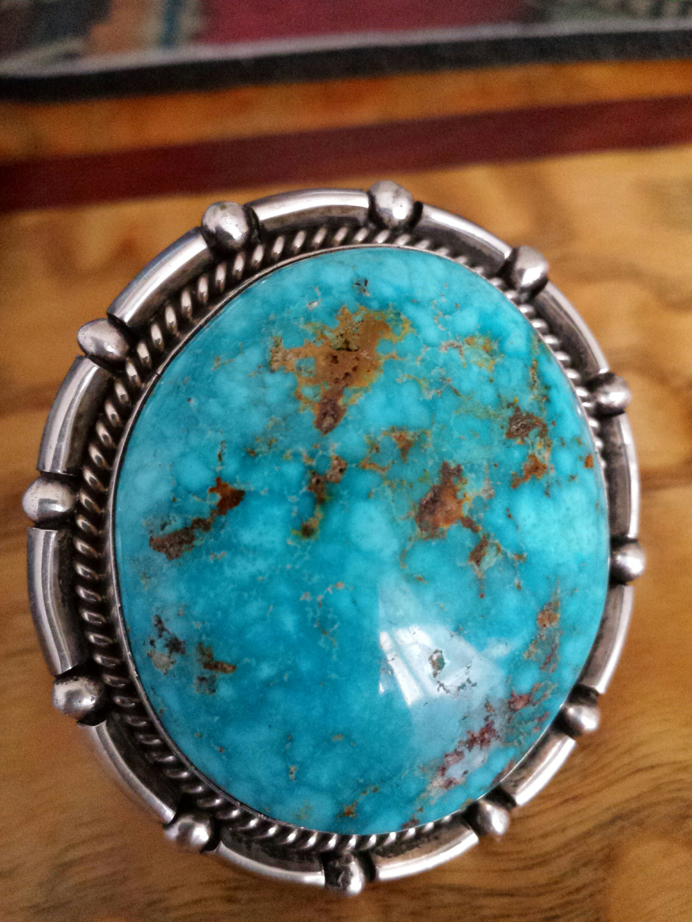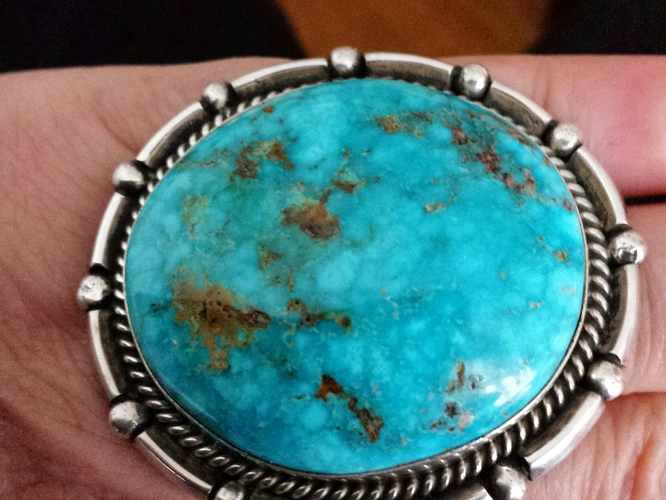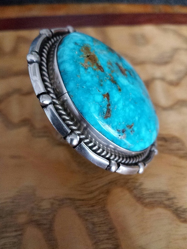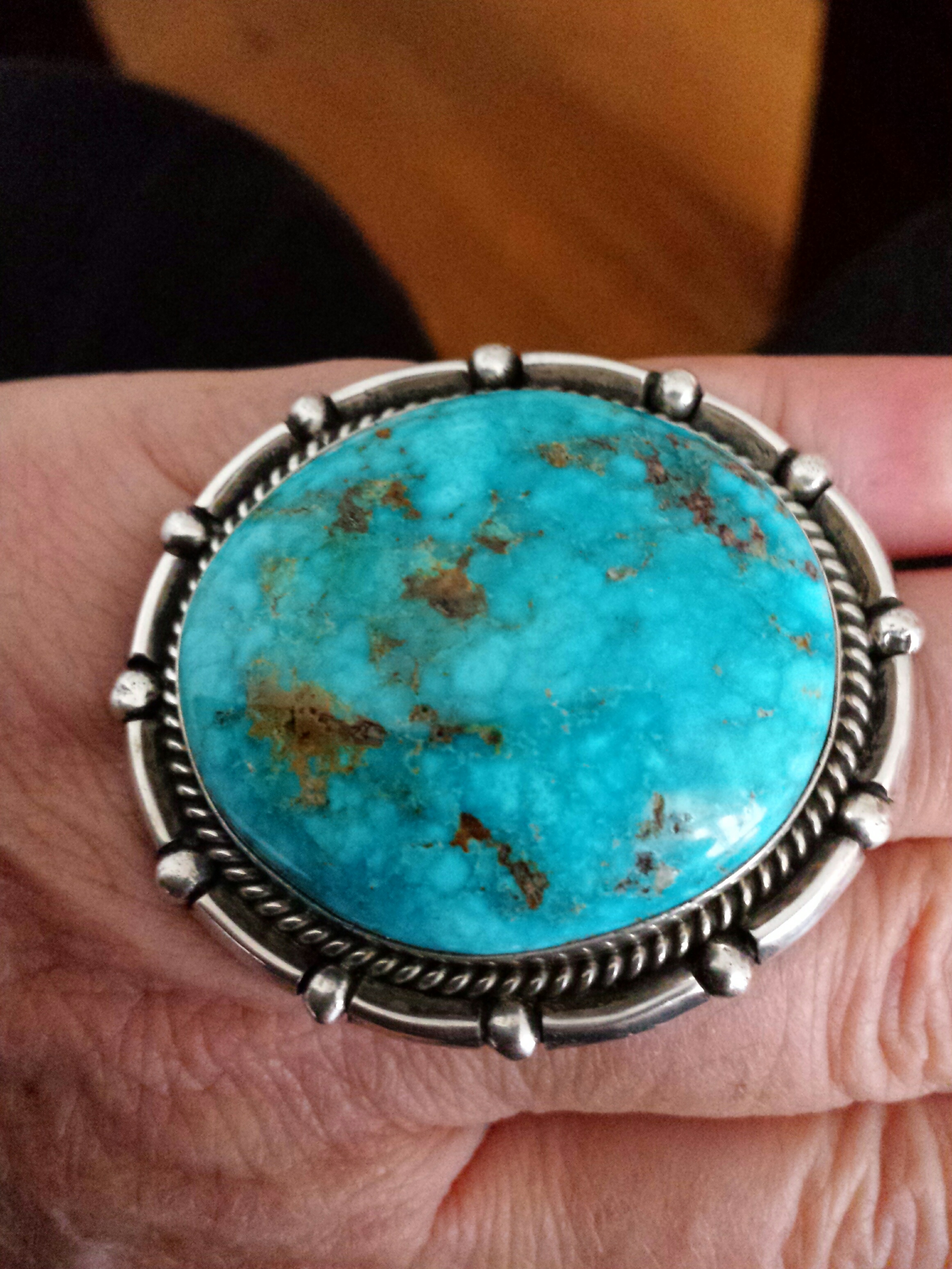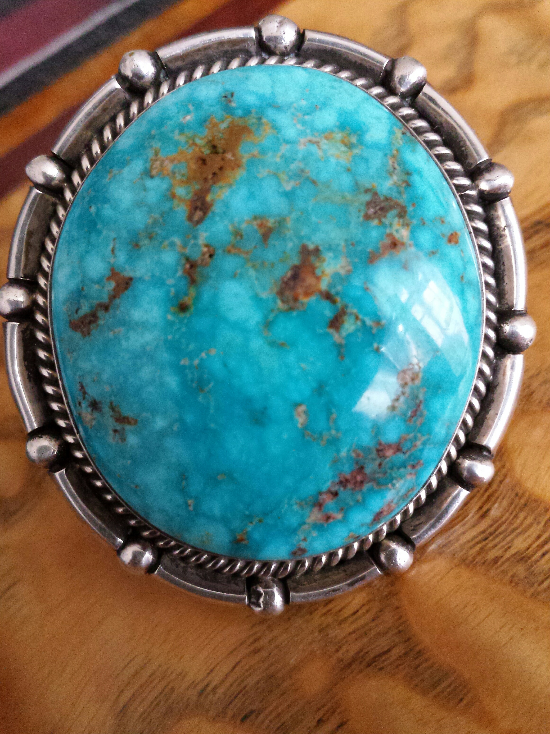I did not find a lot of information about this Navajo silversmith beside that he started doing silverwork in 1965 and is married to Evelyn Platero. It would be great if somebody could identify the turquoise used and give me some indication about the age of the ring and the value of it.