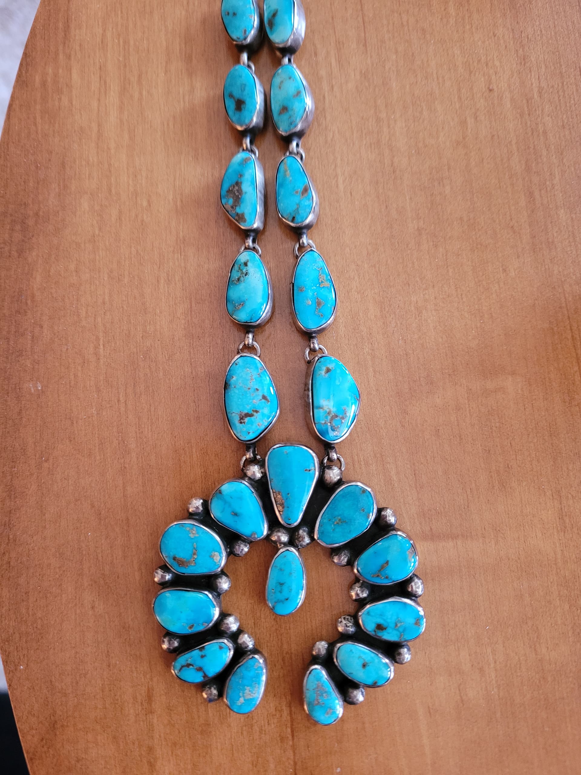 I would be interested to hear where you found this ring. Mike & Evelyn did lots of work for us. This turquoise is called Blue Bird and was sold by one of the Smith brothers. They have slowed down the last couple of years, but would think this piece has been made in the last 10 years. You would see something like this go between $250 and $300. Thanks for sharing.