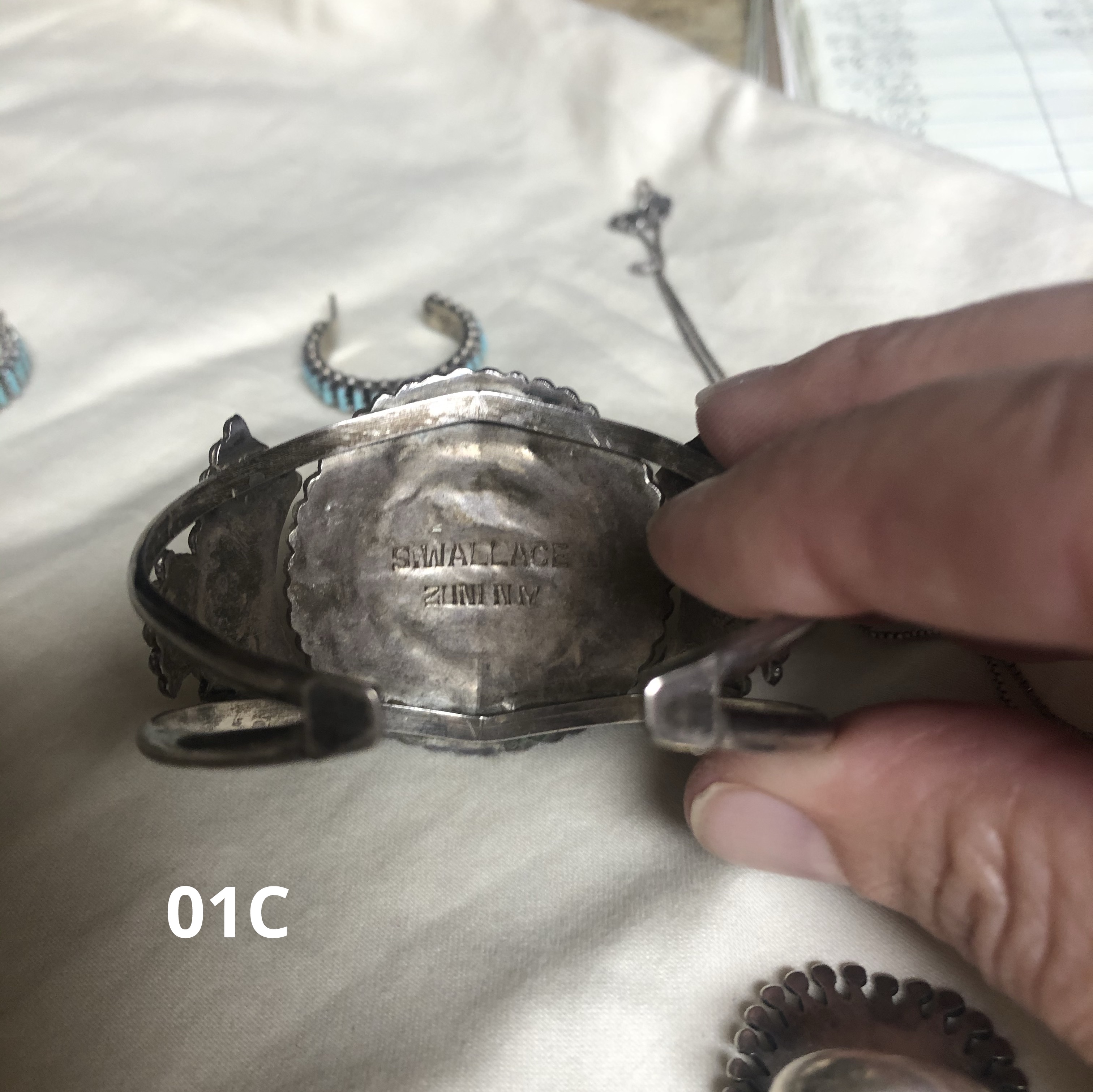 I am hoping to learn anything at all about the artists, the turquoise, the value, and any recommendations for repair and/or care. You can see that the needlepoint ring has some missing stones and I would love to continue wearing these with confidence that I won’t further damage them. I’ve tried googling some of the artist names but not a lot of information comes up.