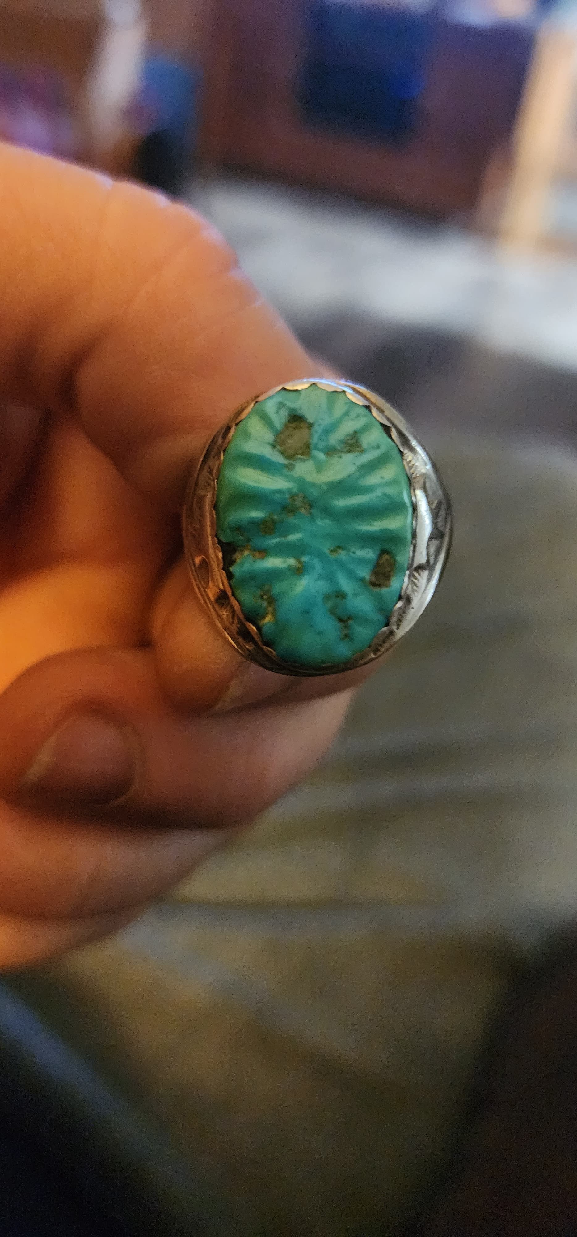 Nice carved turquoise ring. Looks like Jacob Kahe. Sorry about your dad! ![]()