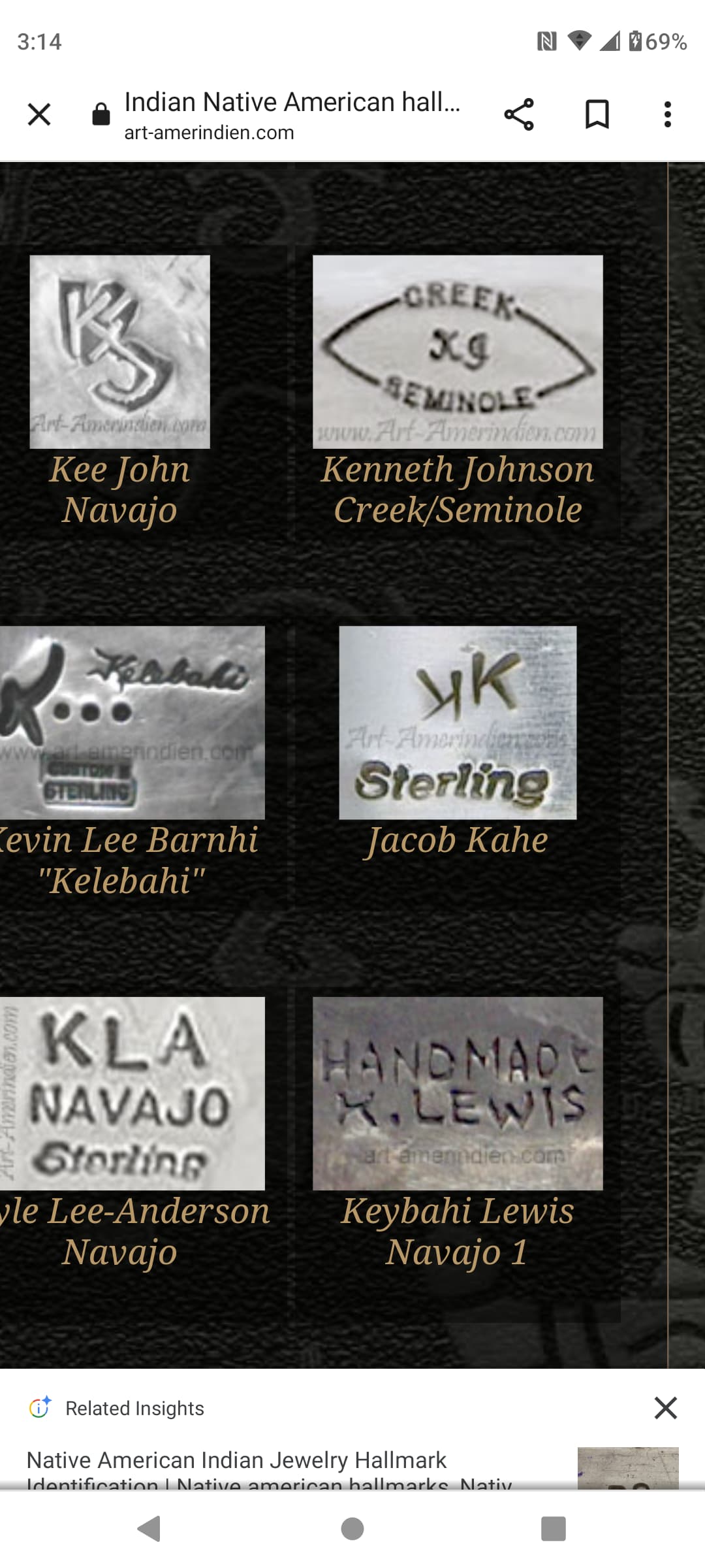 @raysha nice detective work! I feel it’s very possible that the @Erock67 ring & the ring you discovered online were made by the same artist. I say this because they share design similarities: both have that scalloped bevel, both have a similarly carved turquoise stone, and both ring shouders flare and then taper. IMO, the hallmark isn’t a match to the Kee Brown hallmark as shown in the @Ziacat post. Just my 2 cents. Both are very nice rings.