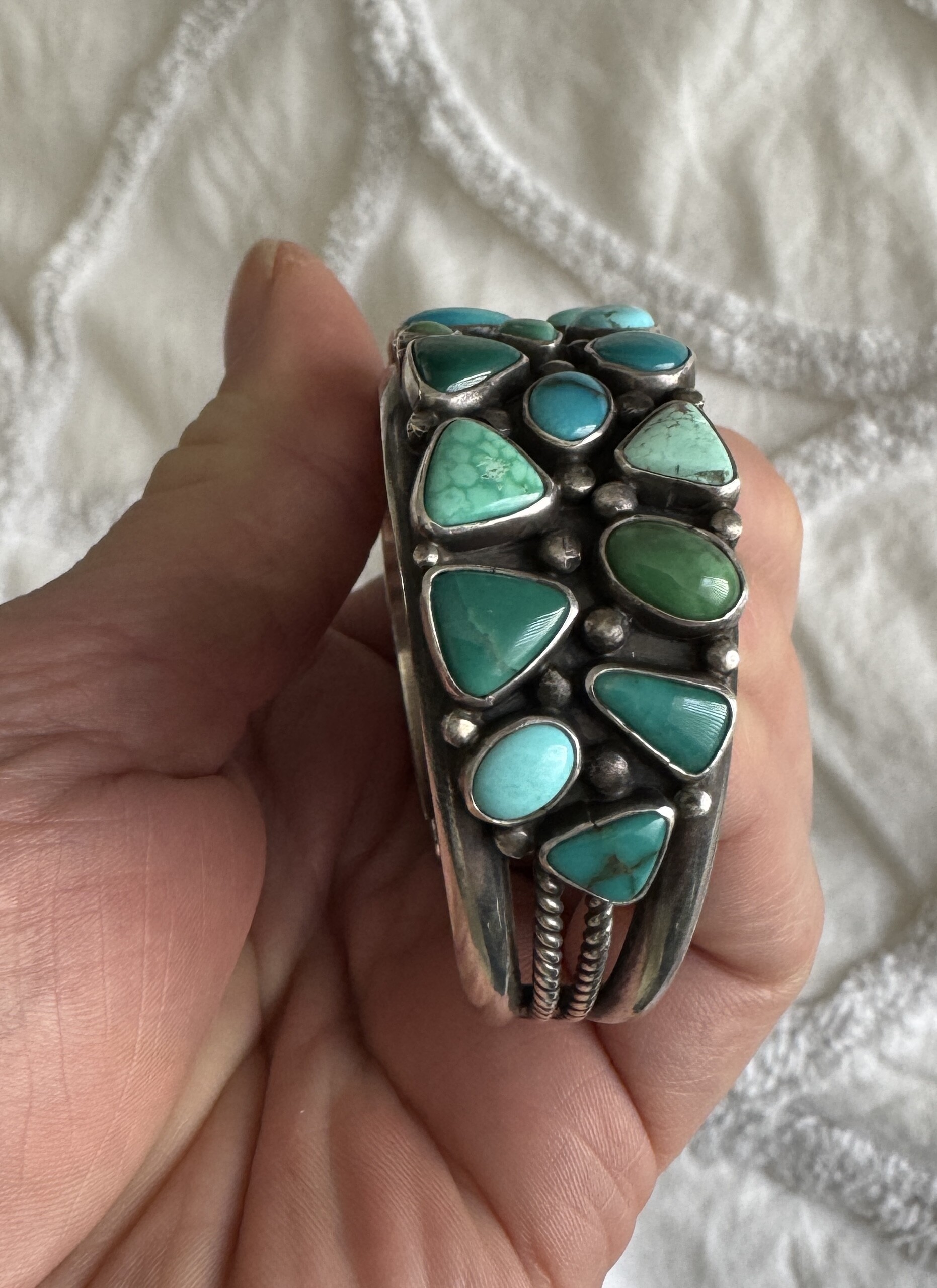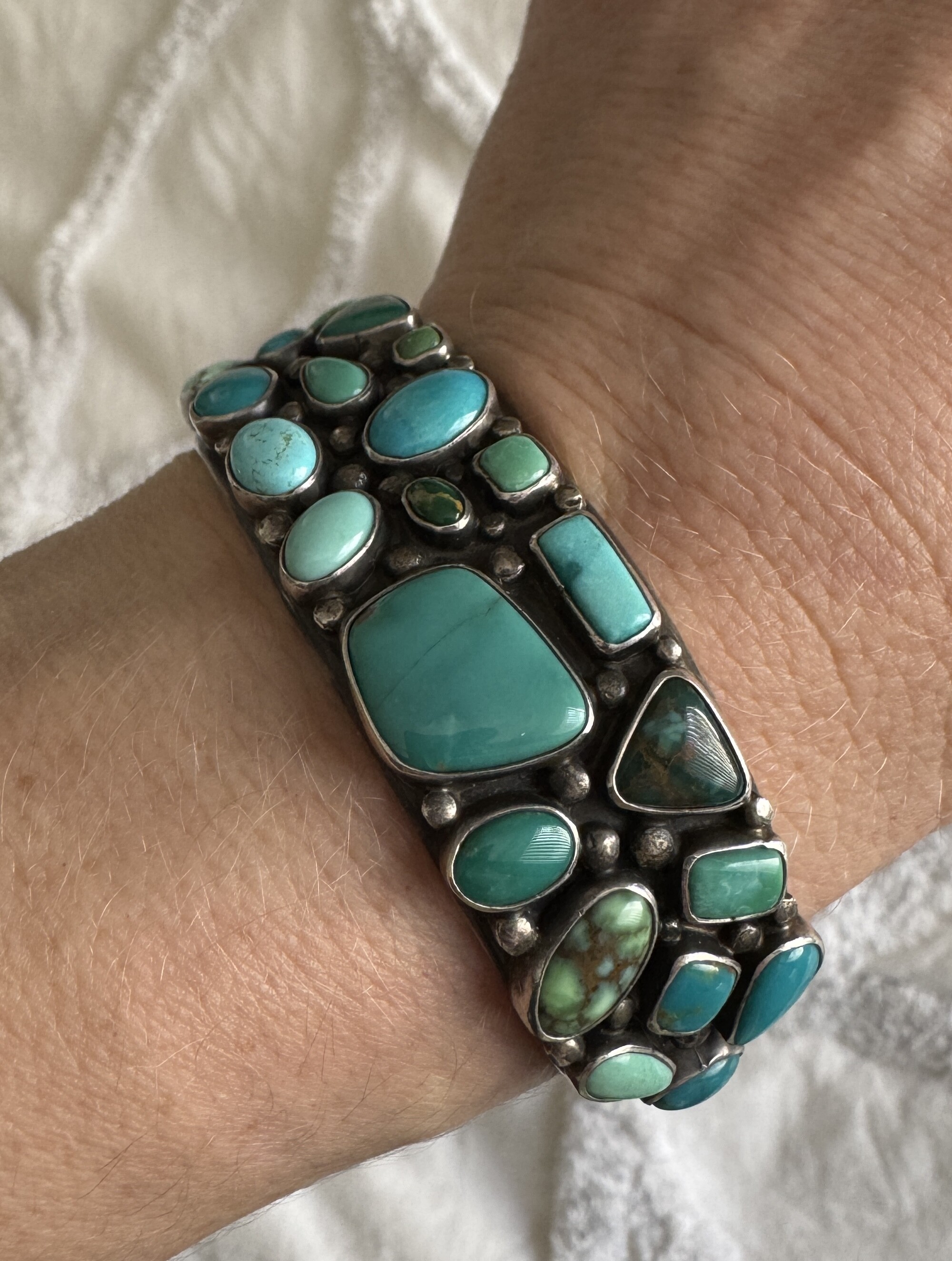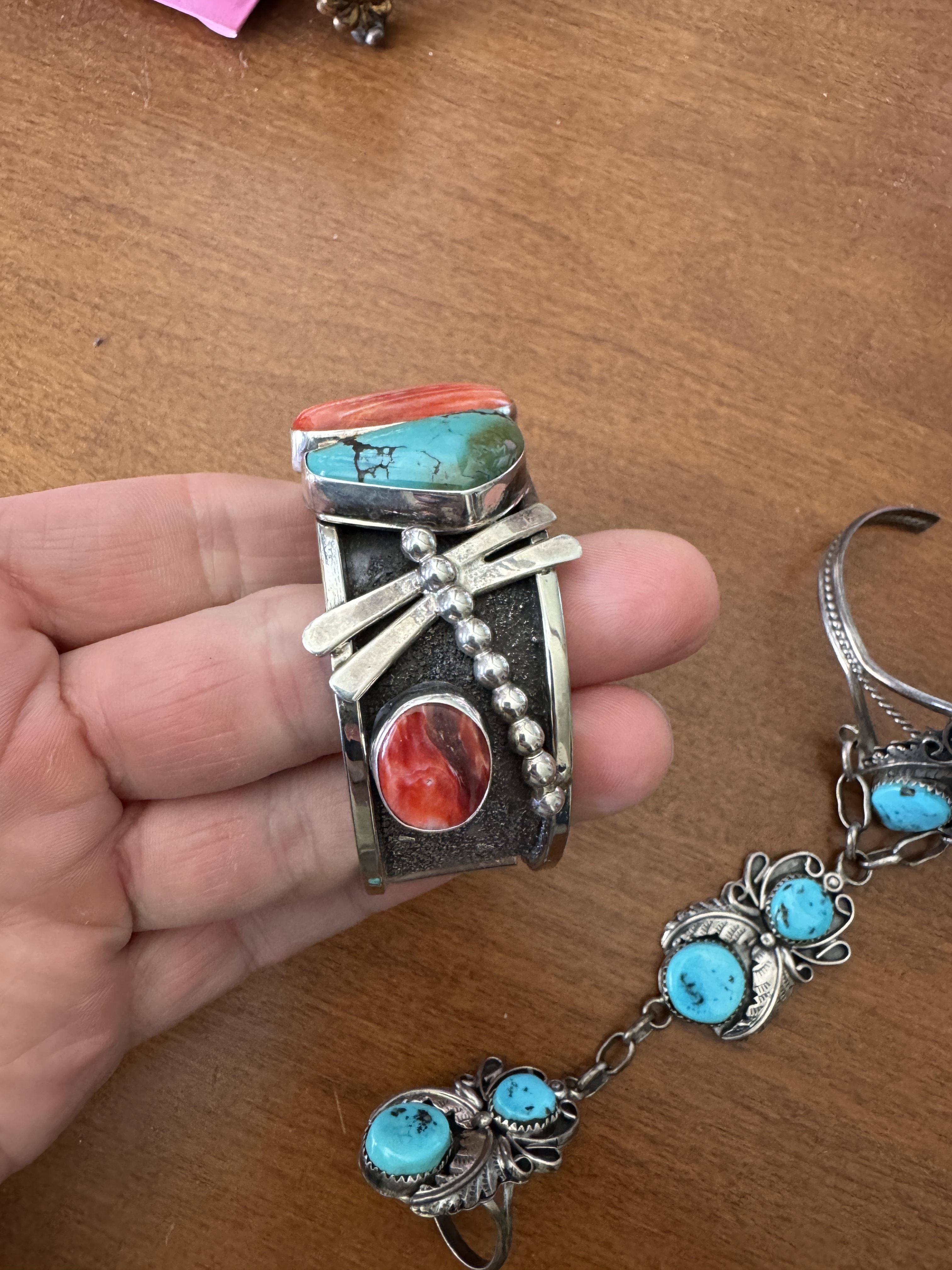 I love the big ring. To me the turquoise in your dragonfly cuff looks real; it reminds me of some I’ve seen from Chinese mines - really cool cuff. I think the variety of turquoise colors in your Verdy Jake cuff is beautiful.