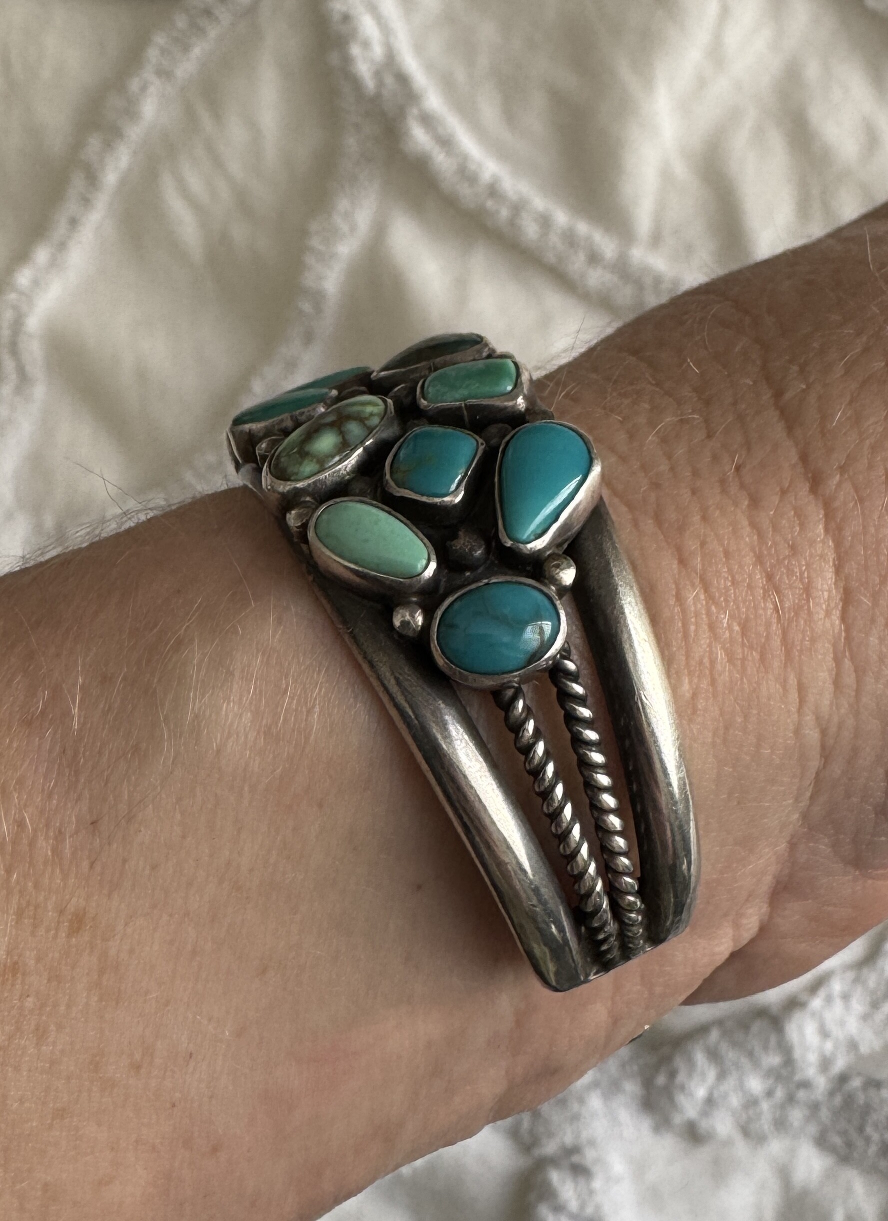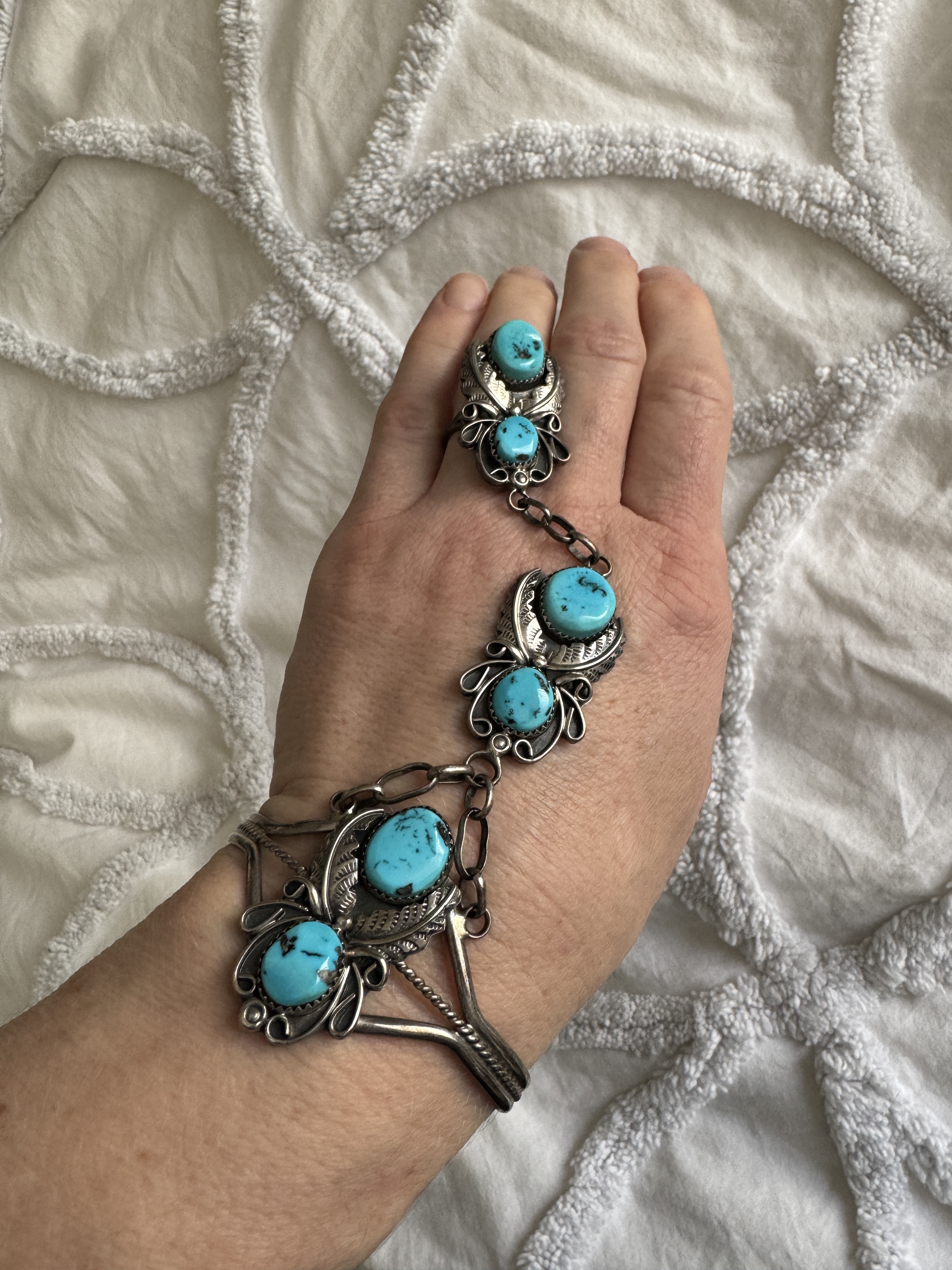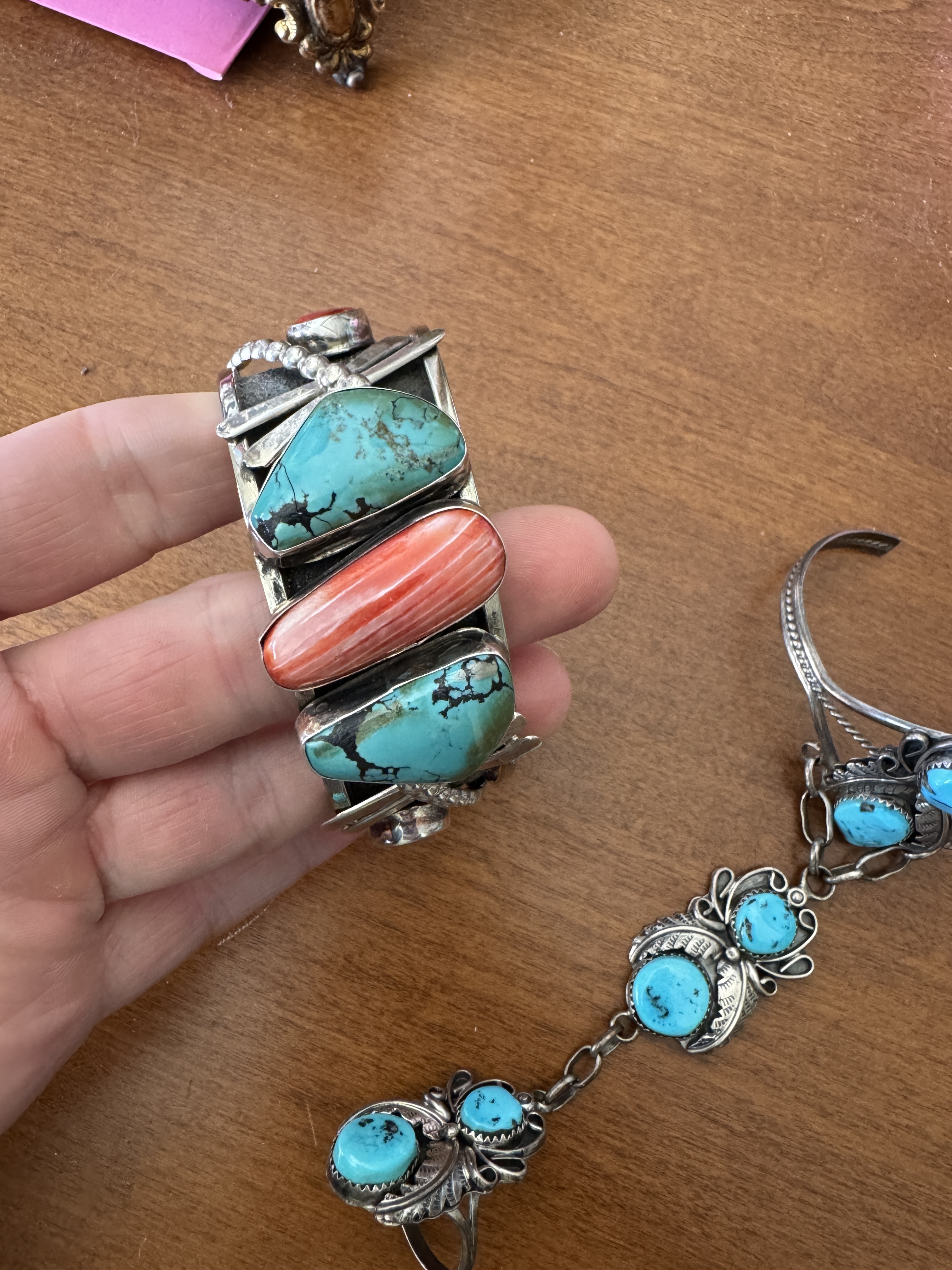 The slave bracelet was my introduction to sleeping beauty turquoise. It’s signed sterling and HBY.