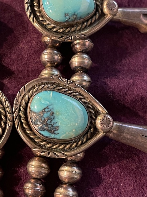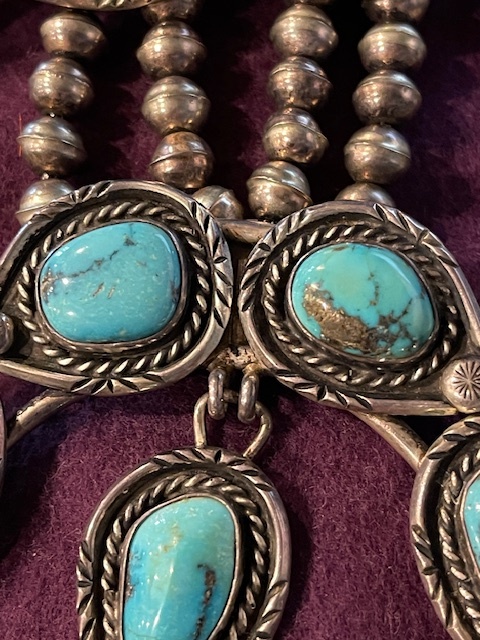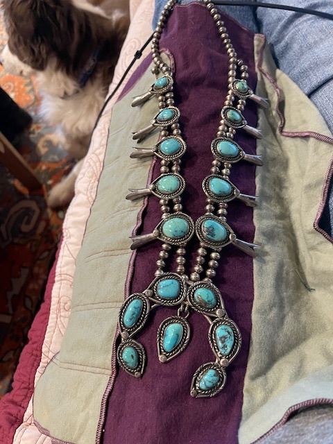I posted in the hallmark section about the hallmark. When I mentioned to my sister I was trying to get more info on the necklace she said she thought that it was bisbee stones and I was thinking Kingman. I have no Idea so here are a couple pictures of the whole piece any information would be appreciated