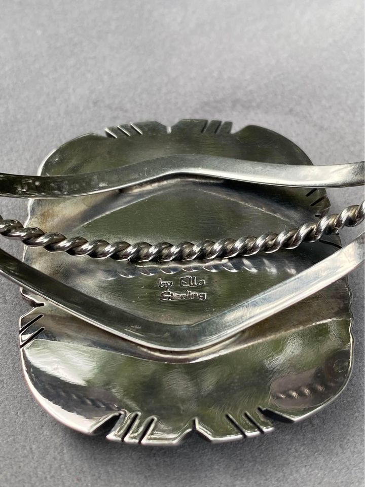 @StevesTrail Looks like a nice cuff & well made. I believe we can rule out Navajo Ella Cowboy as her hallmark is an “E”. The use of “by” as part of the hallmark leads me to believe that it’s not Native American made. Just my 2 cents.