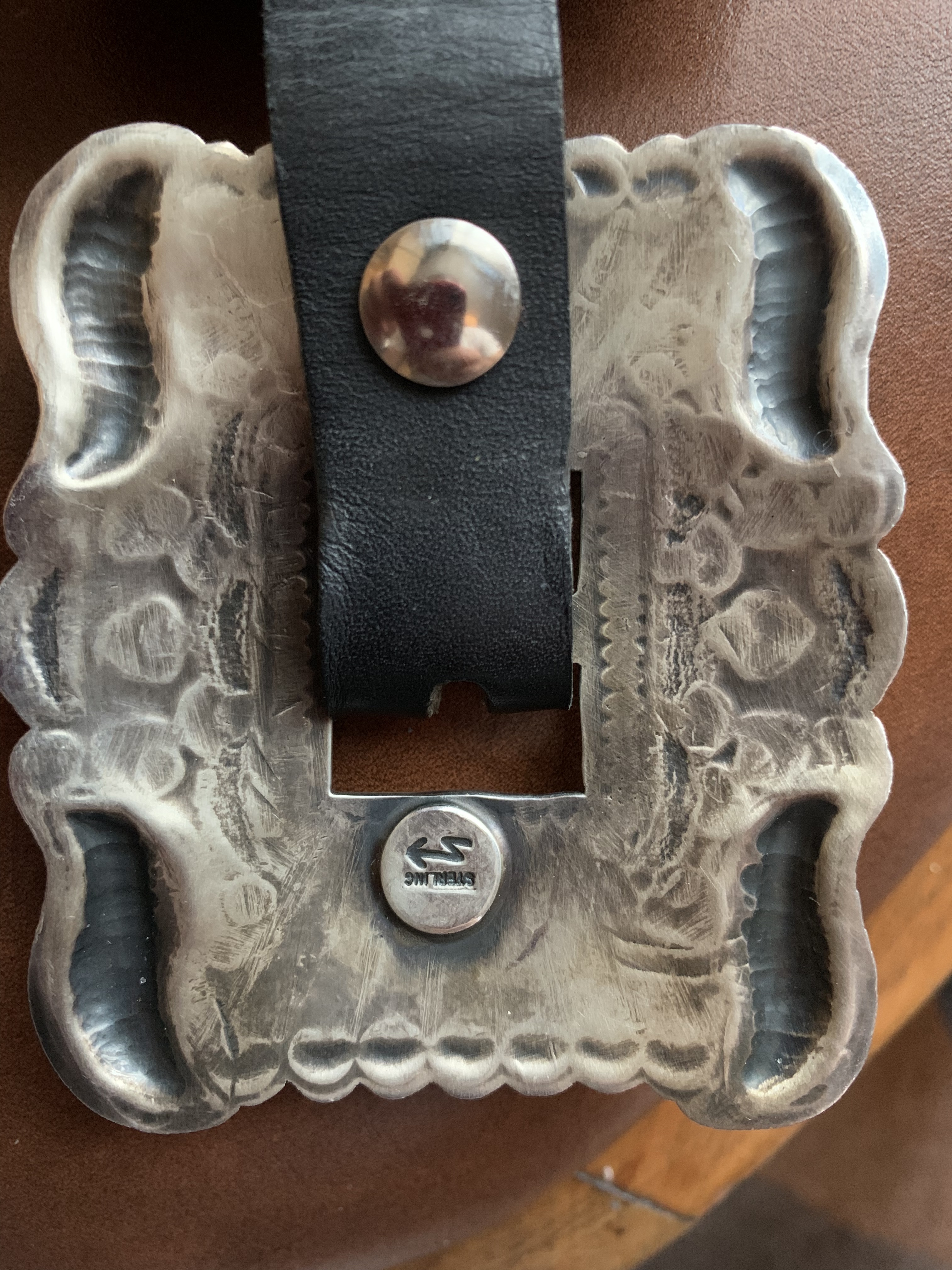 Hello all , 8 have this Navajo silver concho belt i wonder if anyone can help with identifying maker and roughly the price of it ? There is mark which is a small thunder and says sterling … beautifully made … please see photos