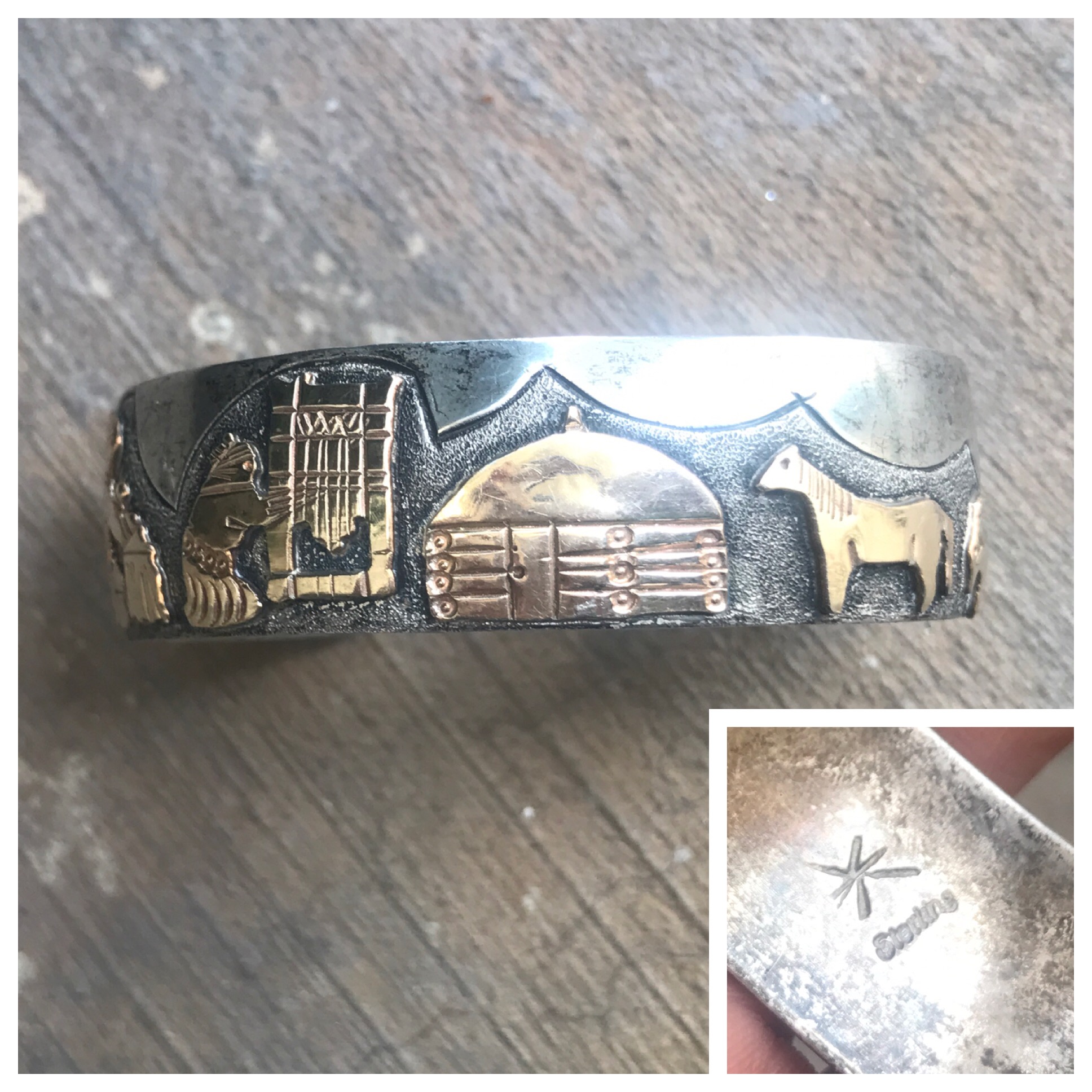 I found a very similar storyteller cuff with the same hallmark in the cabinet with the Darrell Cadman cuff at the antiques mall. Same thing but different. He didn’t know anything about it either.