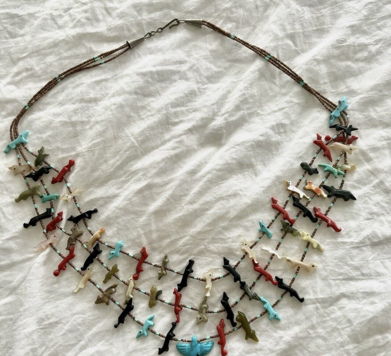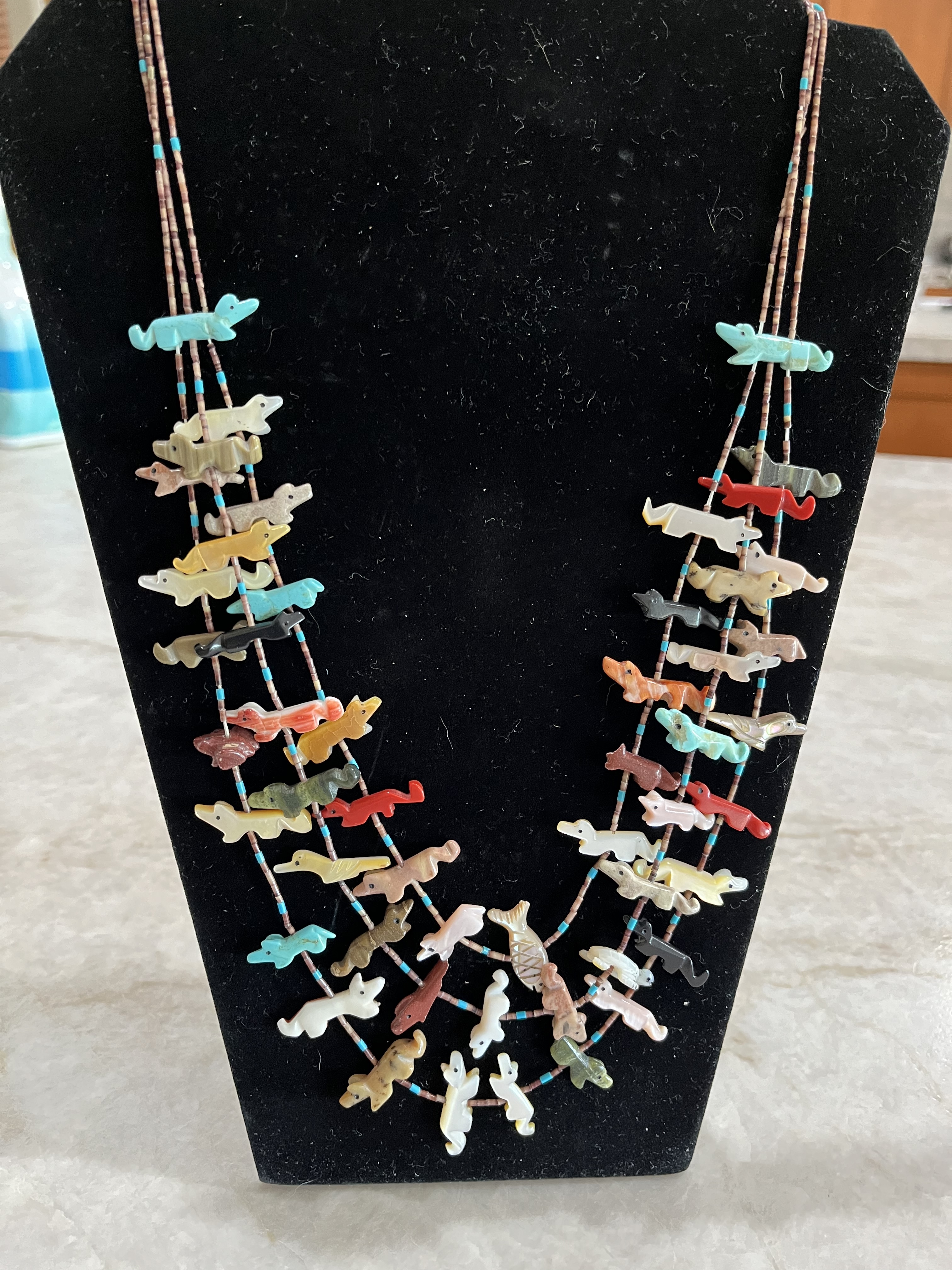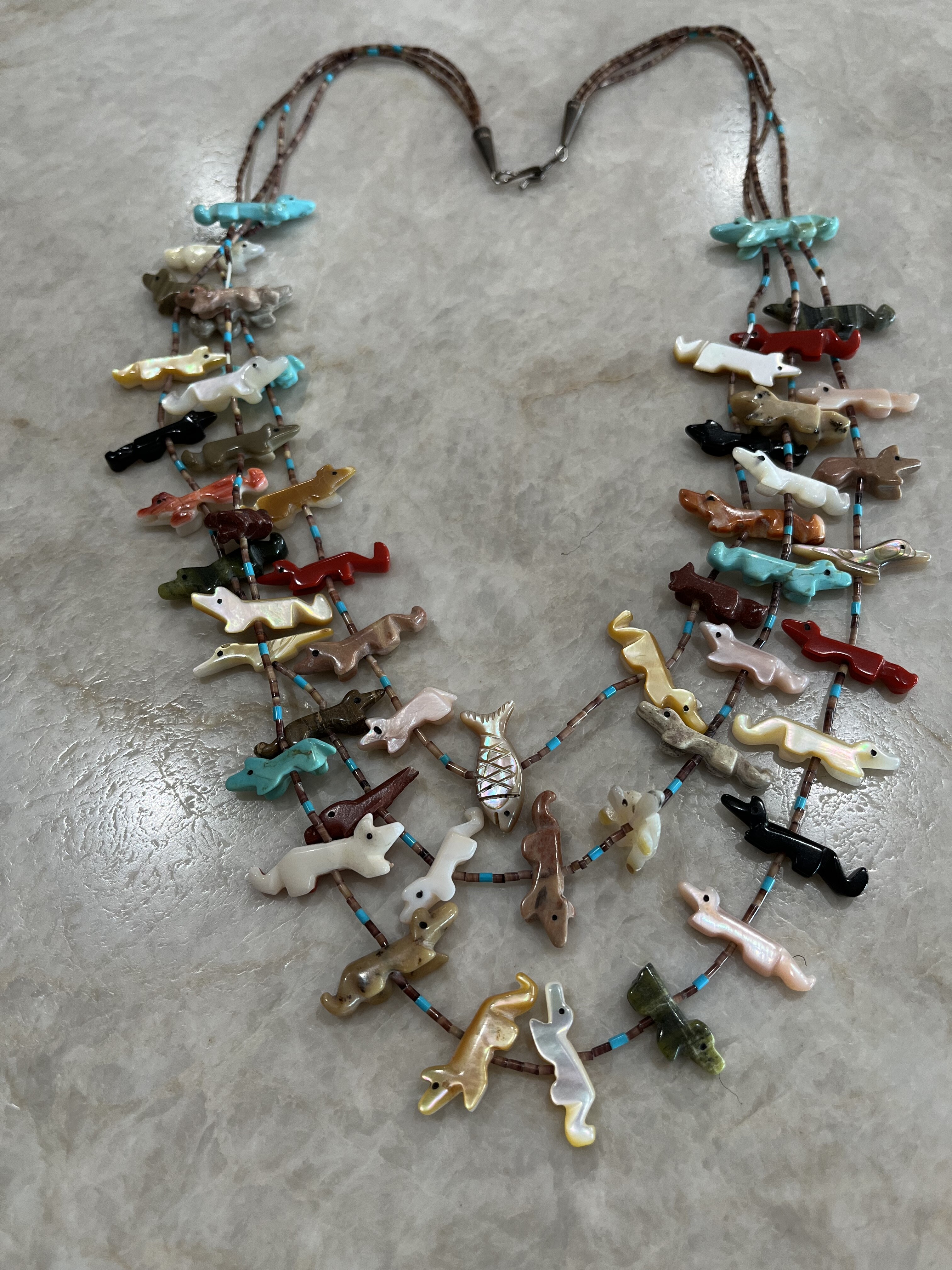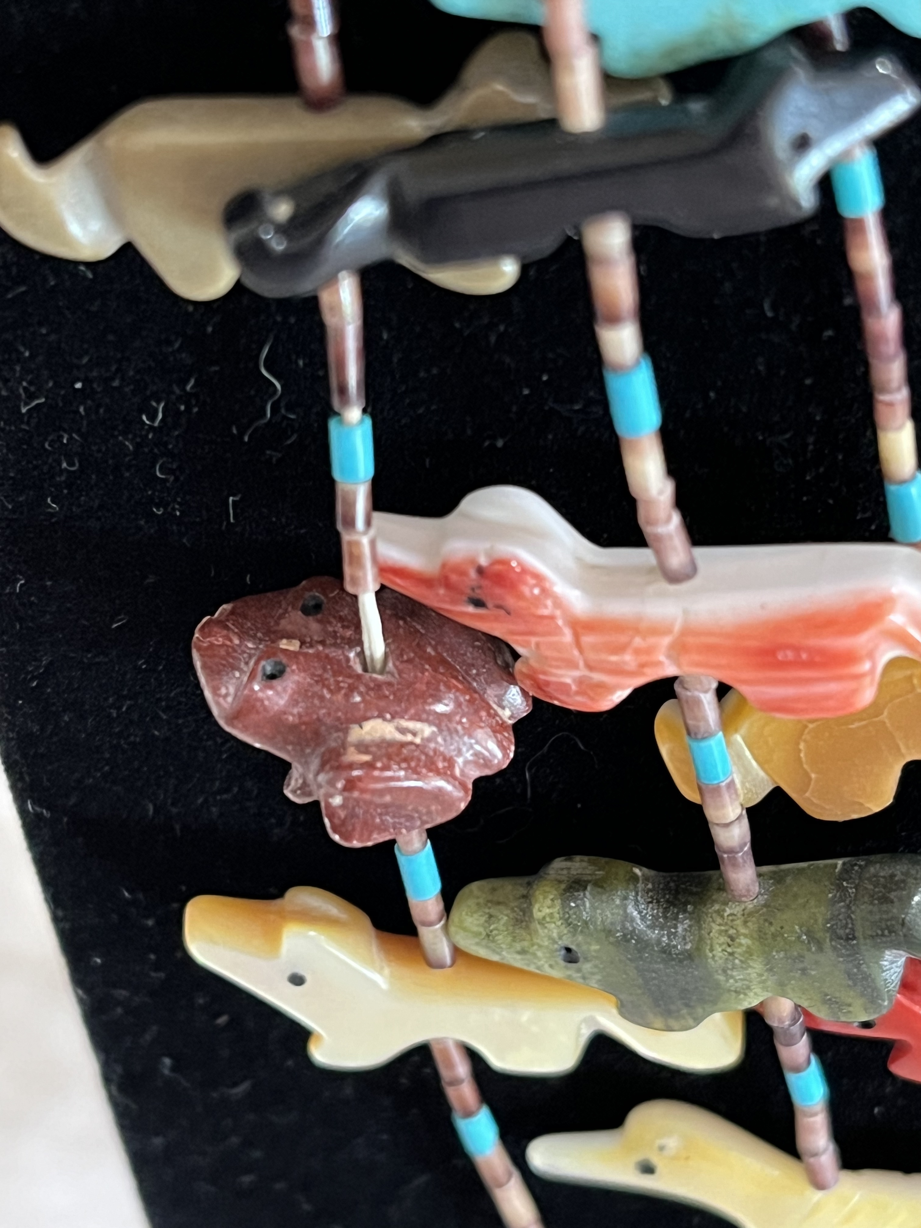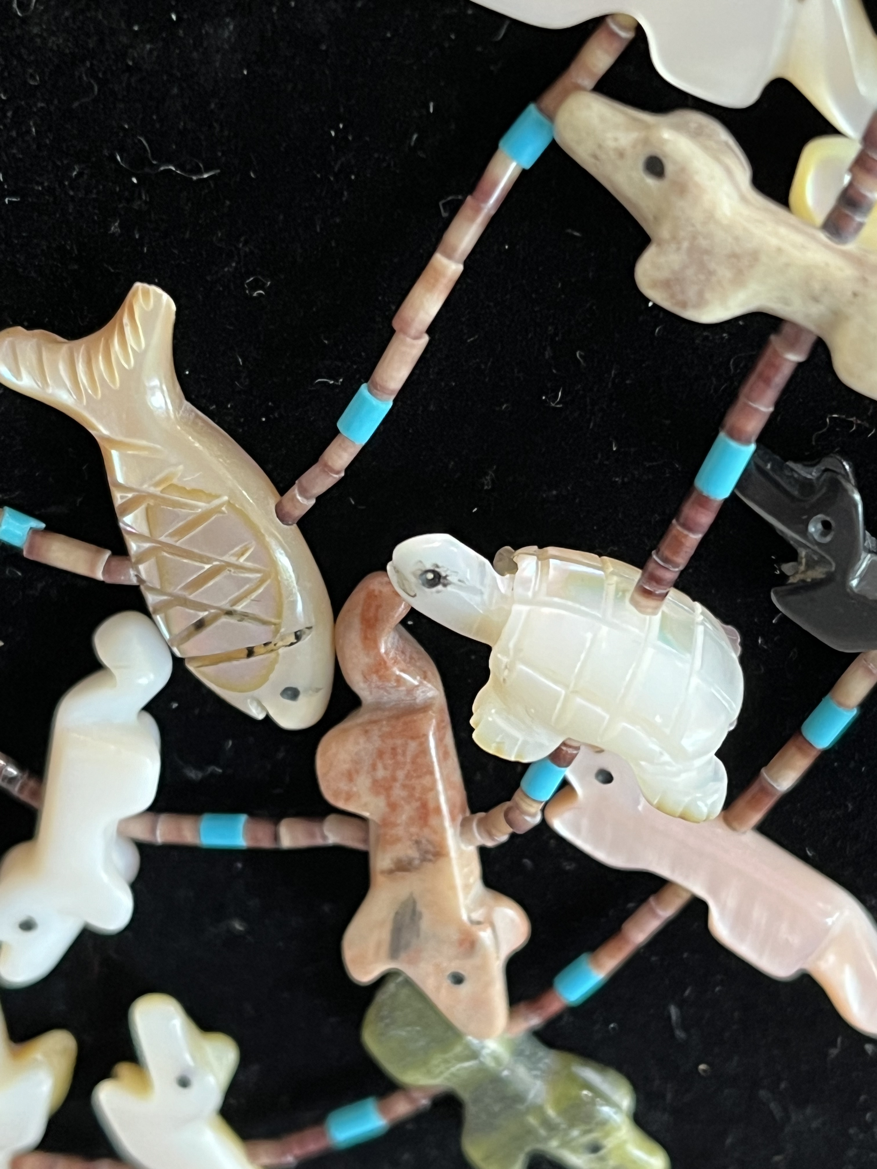 Thanks Patina. I know the vast majority of these are not Zuni, and likely not even NA. I should have said “Navajo or other” as it (or the beads) are likely made elsewhere, especially with the turtle and fish. I’m going to sell it along with a lot of other lesser pieces, and want to be accurate with the information. Guess the best way is just to be vague and simplistic in the description and not mention any NA attribution😊.