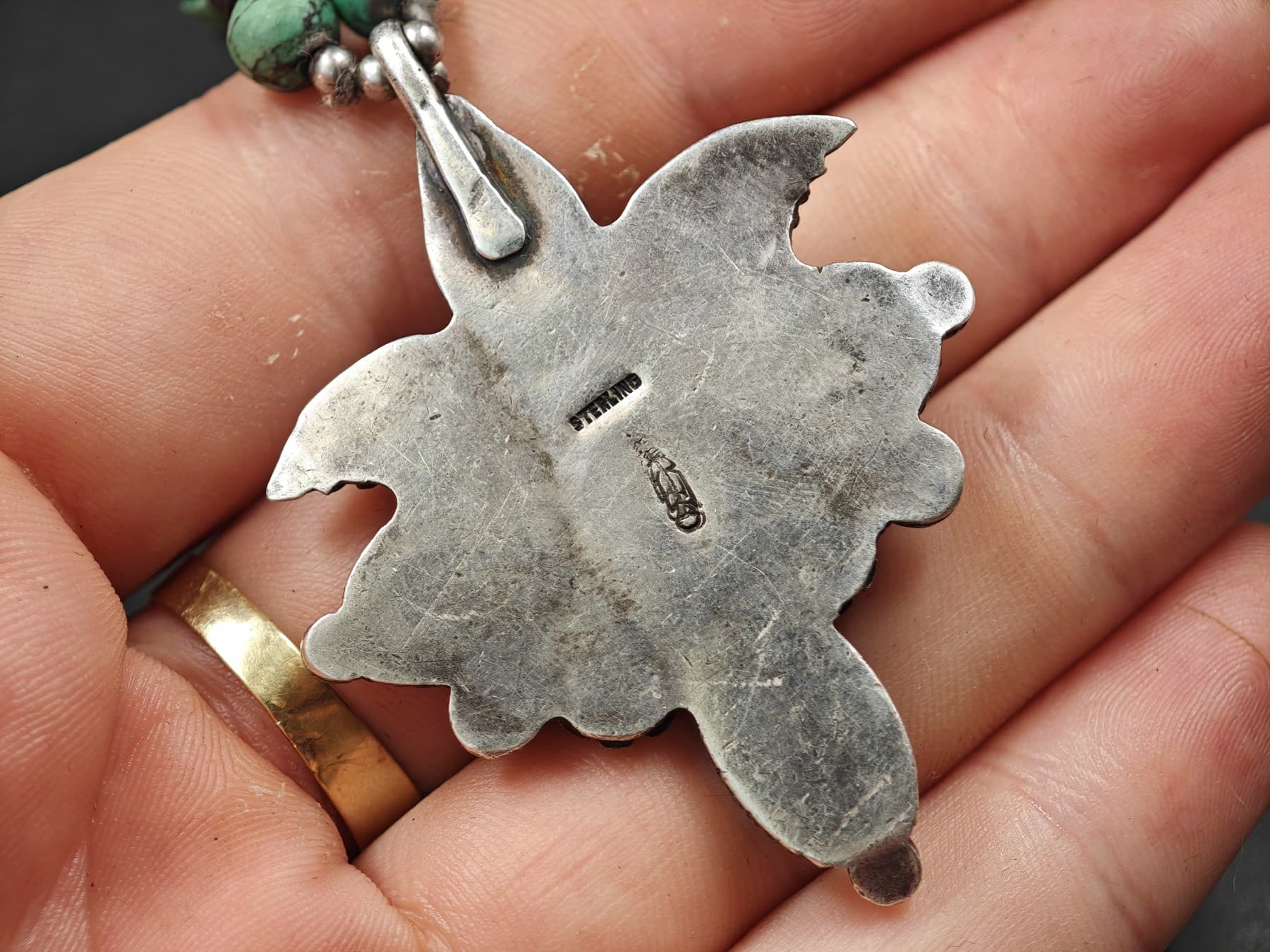 Billy the Kid auction sold a pendant with the same hallmark and K.Y. It was attributed to Kay Yazzie. The mark may be an unidentified shop mark.