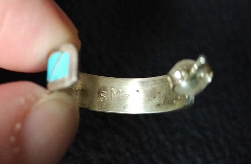 Wow @Jason ! I think you might be right about it possibly being WS. I was certain it was an “M” because of the straight sides, but like you, my searches turned up nothing. I searched for WS and found the Willie Shaw has signed his pieces both with a more typical W stamp, AND an M stamp as pictured below. And it appears that he does inlays work. Wish I could know for sure, but I am satisfied with a possibility.