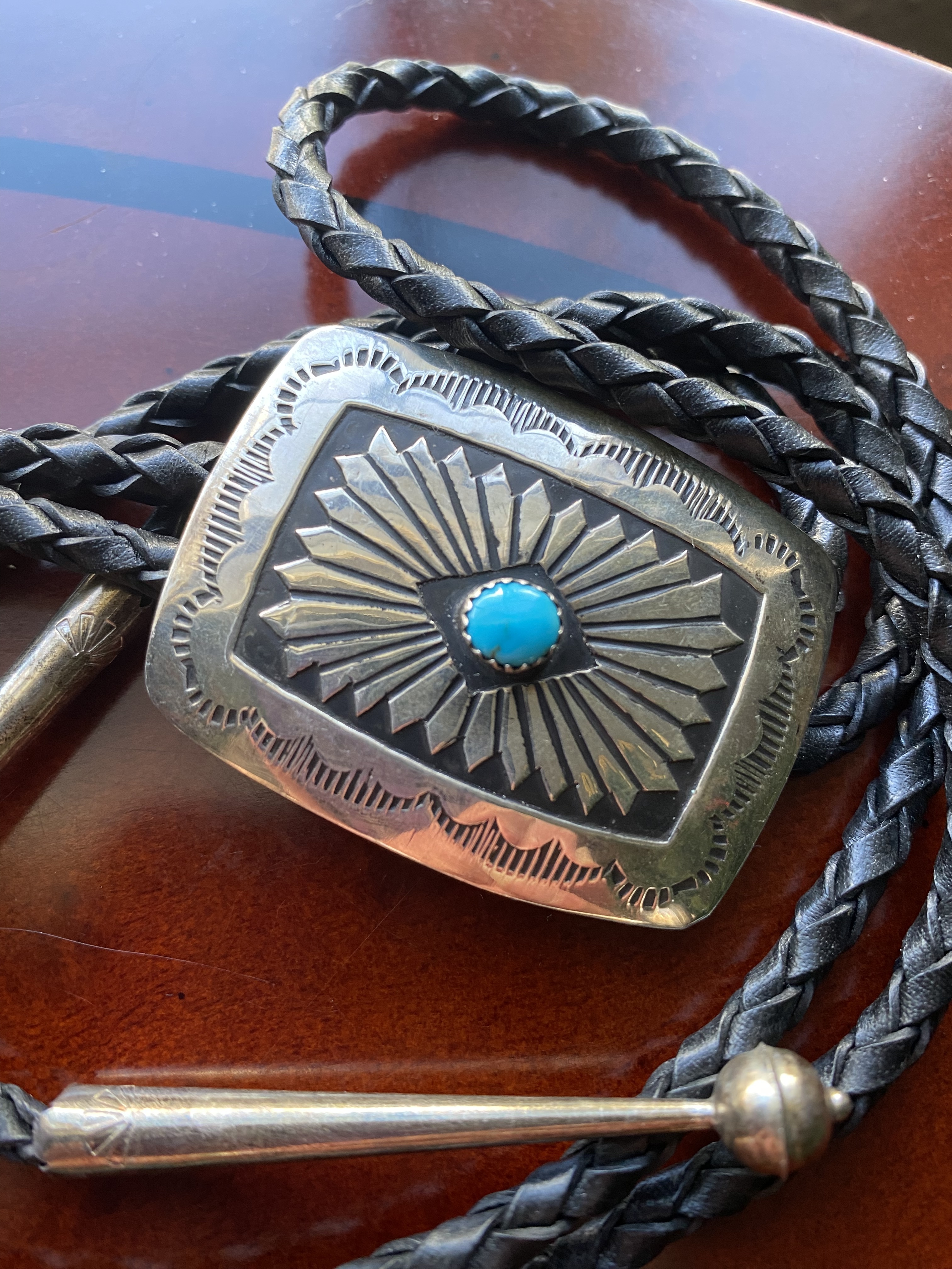I received this Native American bolo tie a few years ago from a family member. This bolo tie was purchased from a local flea market from when they were living in New Mexico at the time.