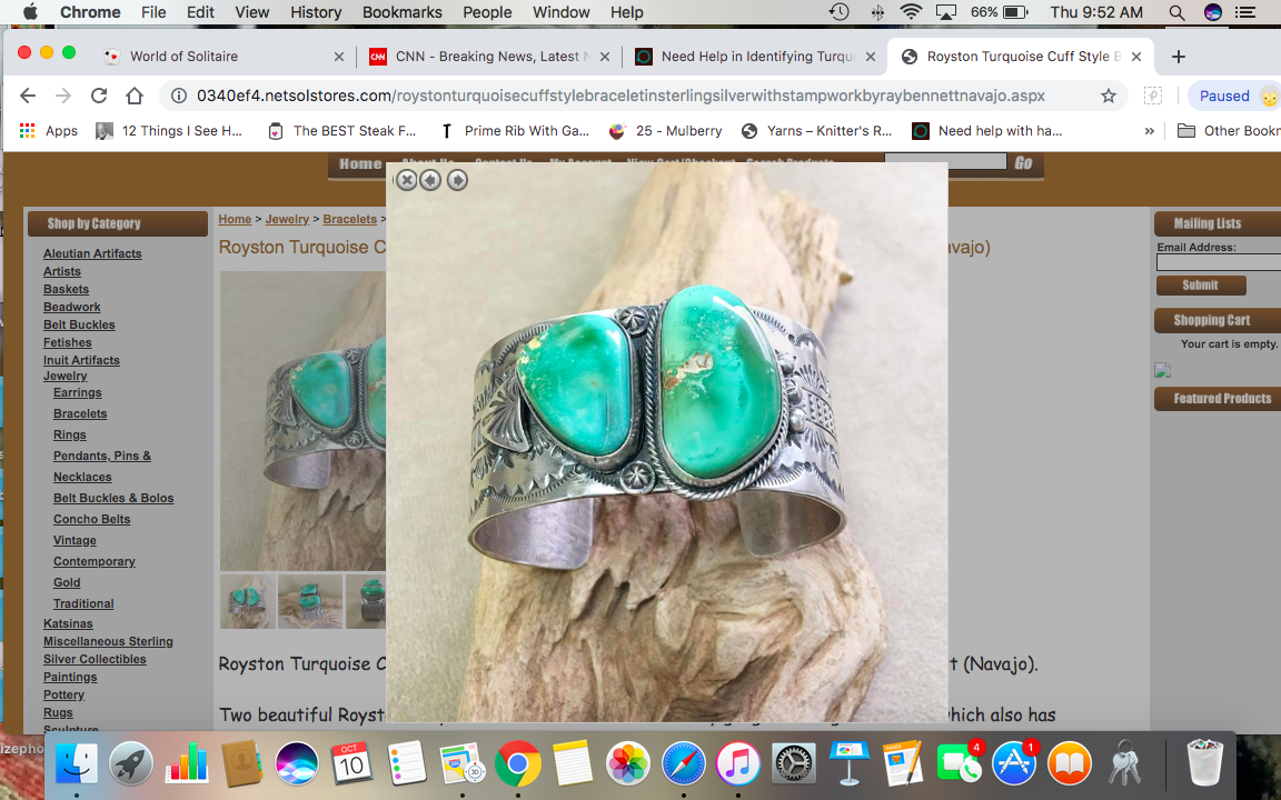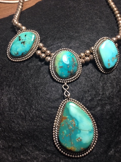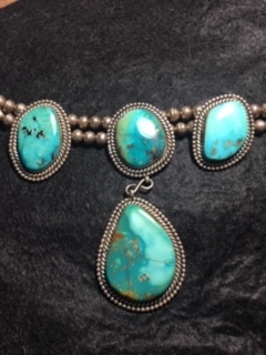 I spotted on Four Winds Gallery this Ray Bennett Royston turquoise… Could the turquoise in my necklace be Royston? I’m Posting a pic of what I found,
