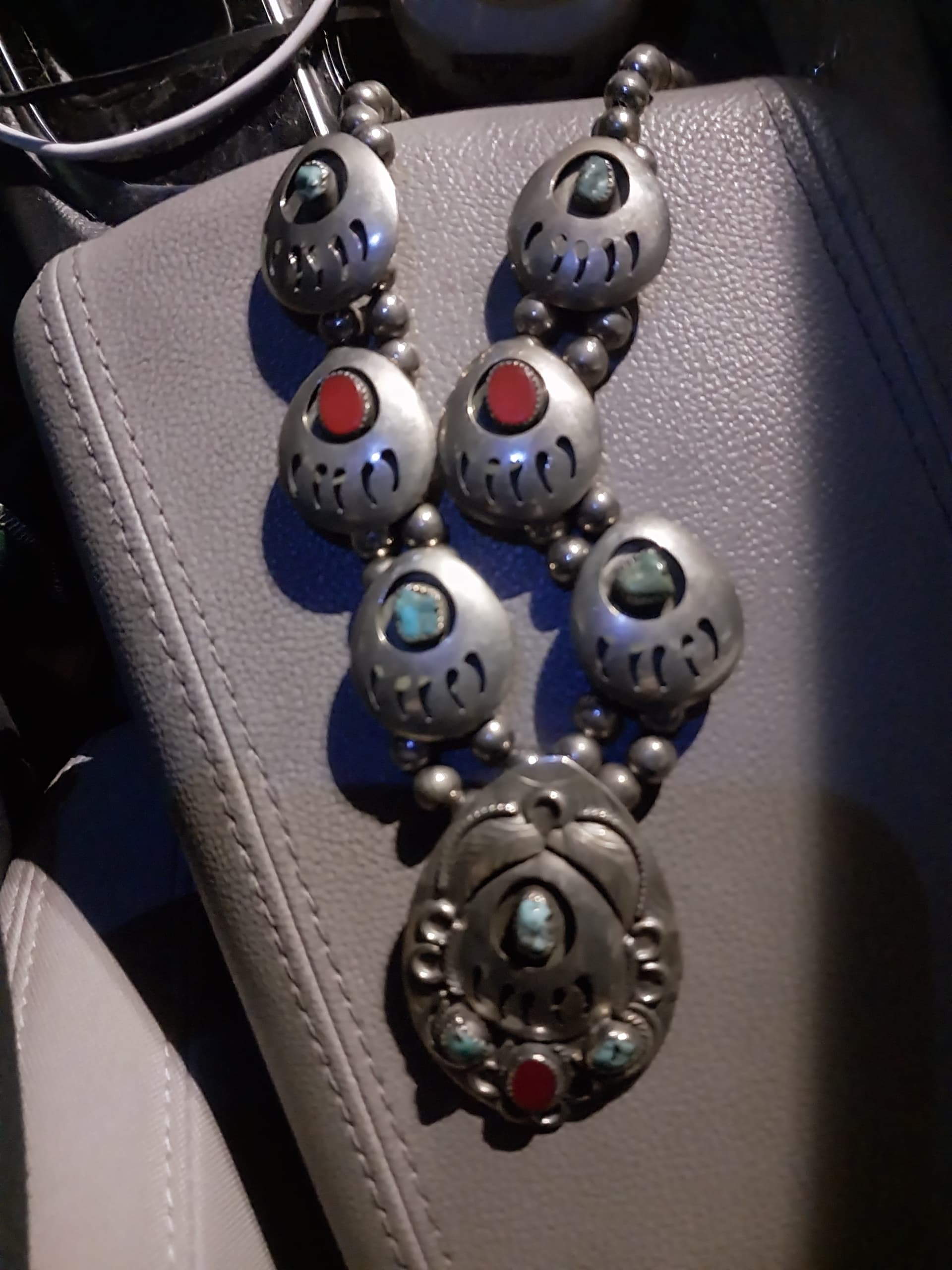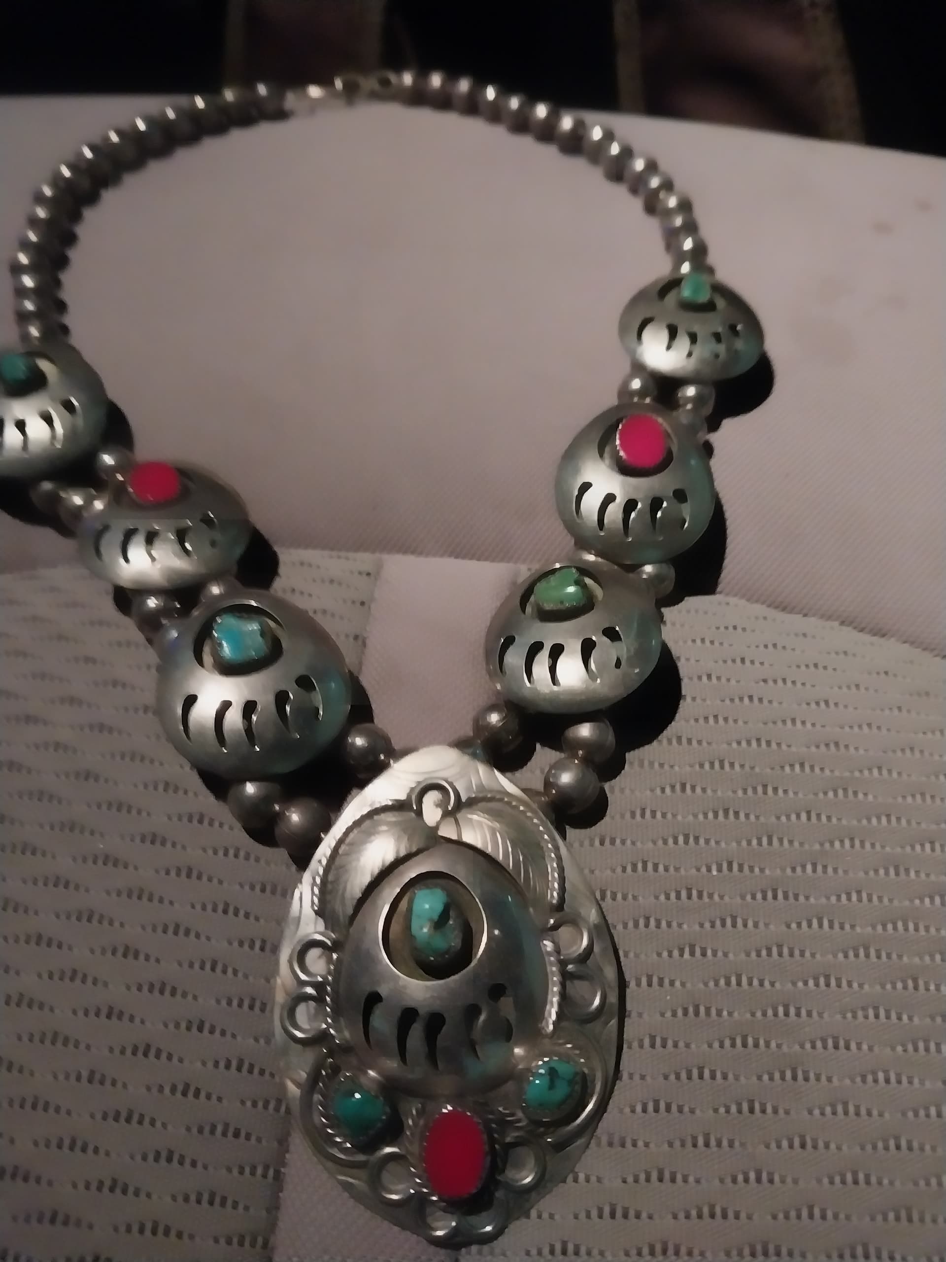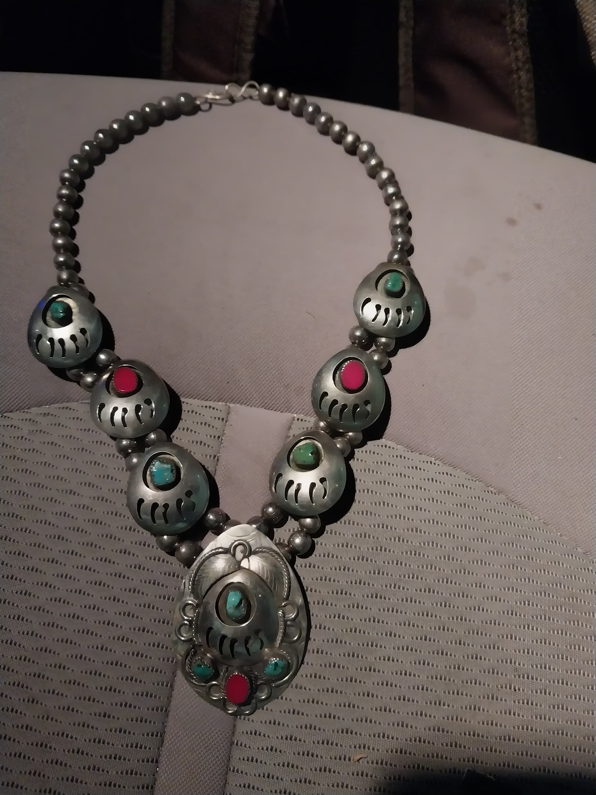 But for your first try at Native American “style” jewelry, you did pretty good; it would be striking worn on a black shirt/sweater!!