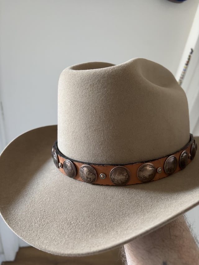 Just a couple new things I’m really happy with. The first is a leather hat band with domed buffalo nickels by Navajo artist CJ Sheppard.