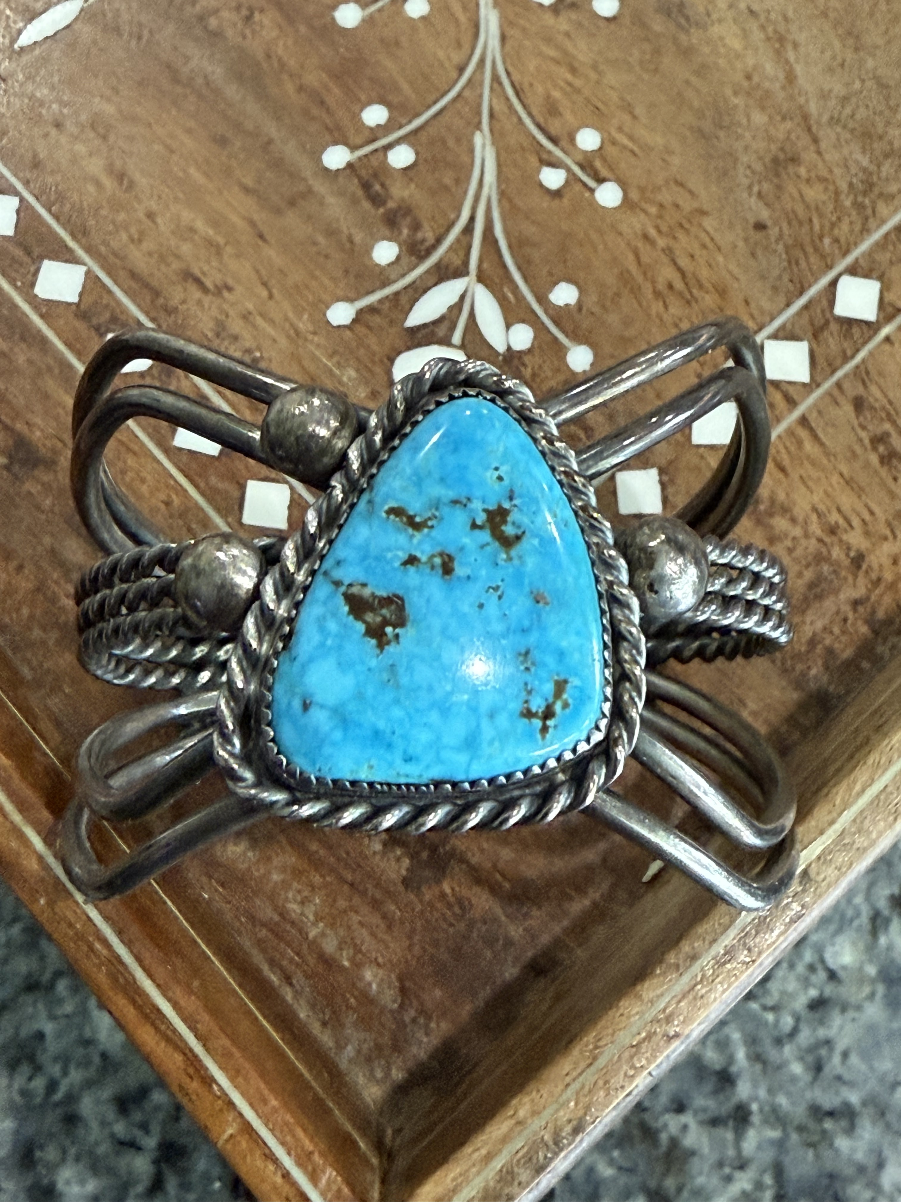 That’s what drew me to it. I haven’t seen many cuffs with angles, plus I like the shape and color of the turquoise.