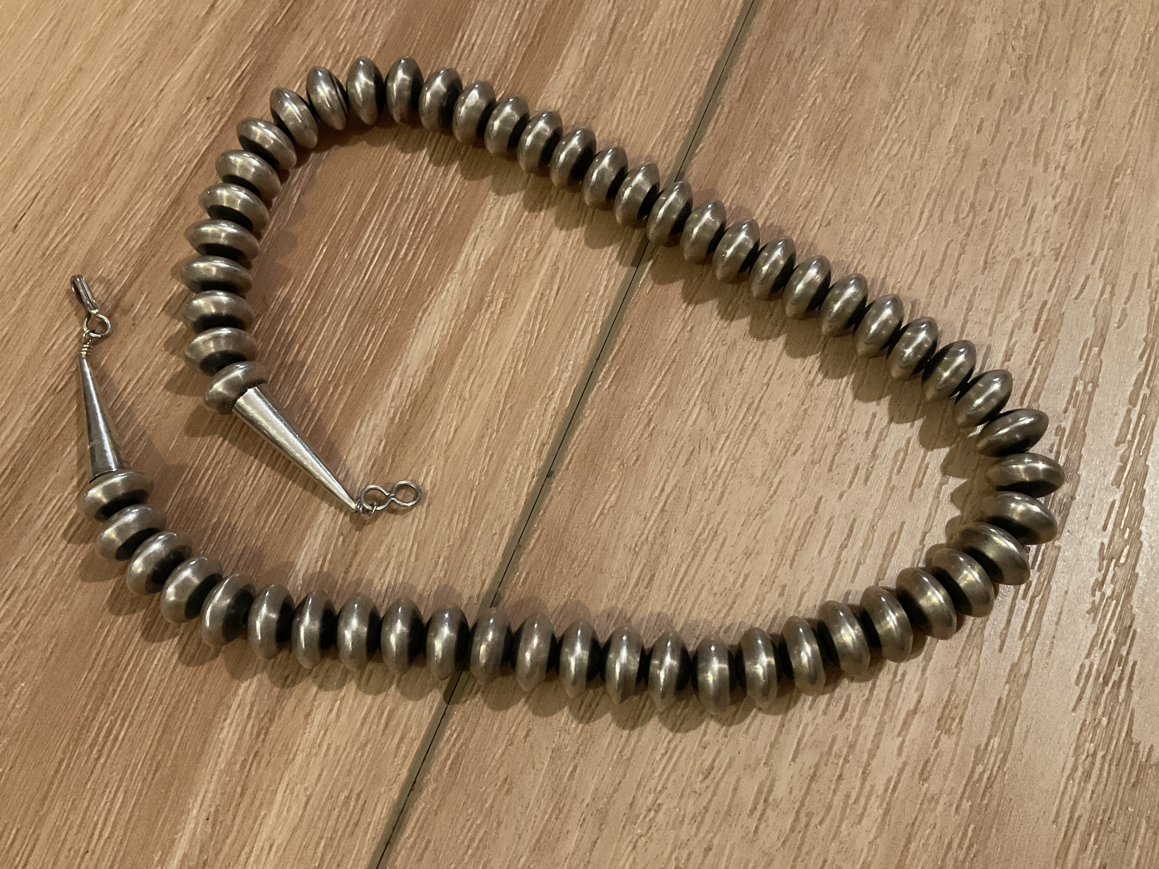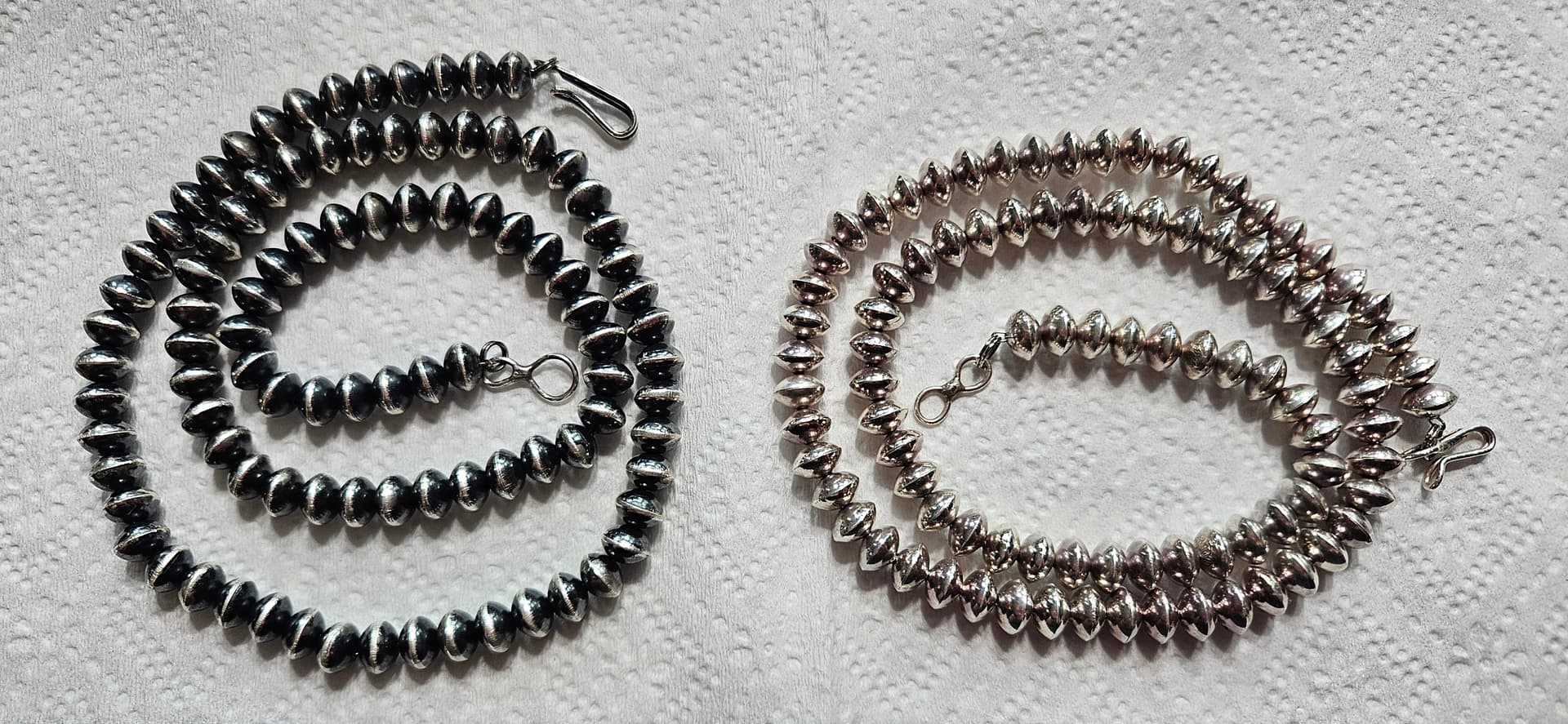 Congratulations on your first silver saucer beads “or Navajo pearls.” My thought is that these are not hand made. Love these; I have some very similar to yours😄. I don’t think I’ve seen handmade saucer beads, but I’d love to see them if anyone has some.