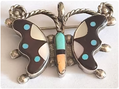 Yesterday i received this pretty butterfly pendant/brooch. My guess is that it’s a Zuni piece from around the 1950s (it’s unmarked).