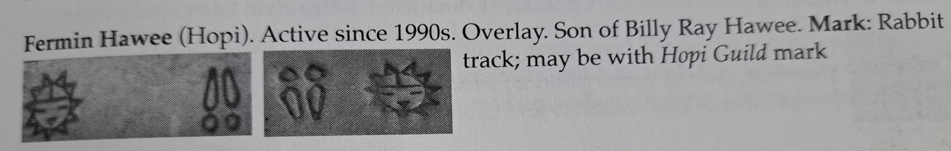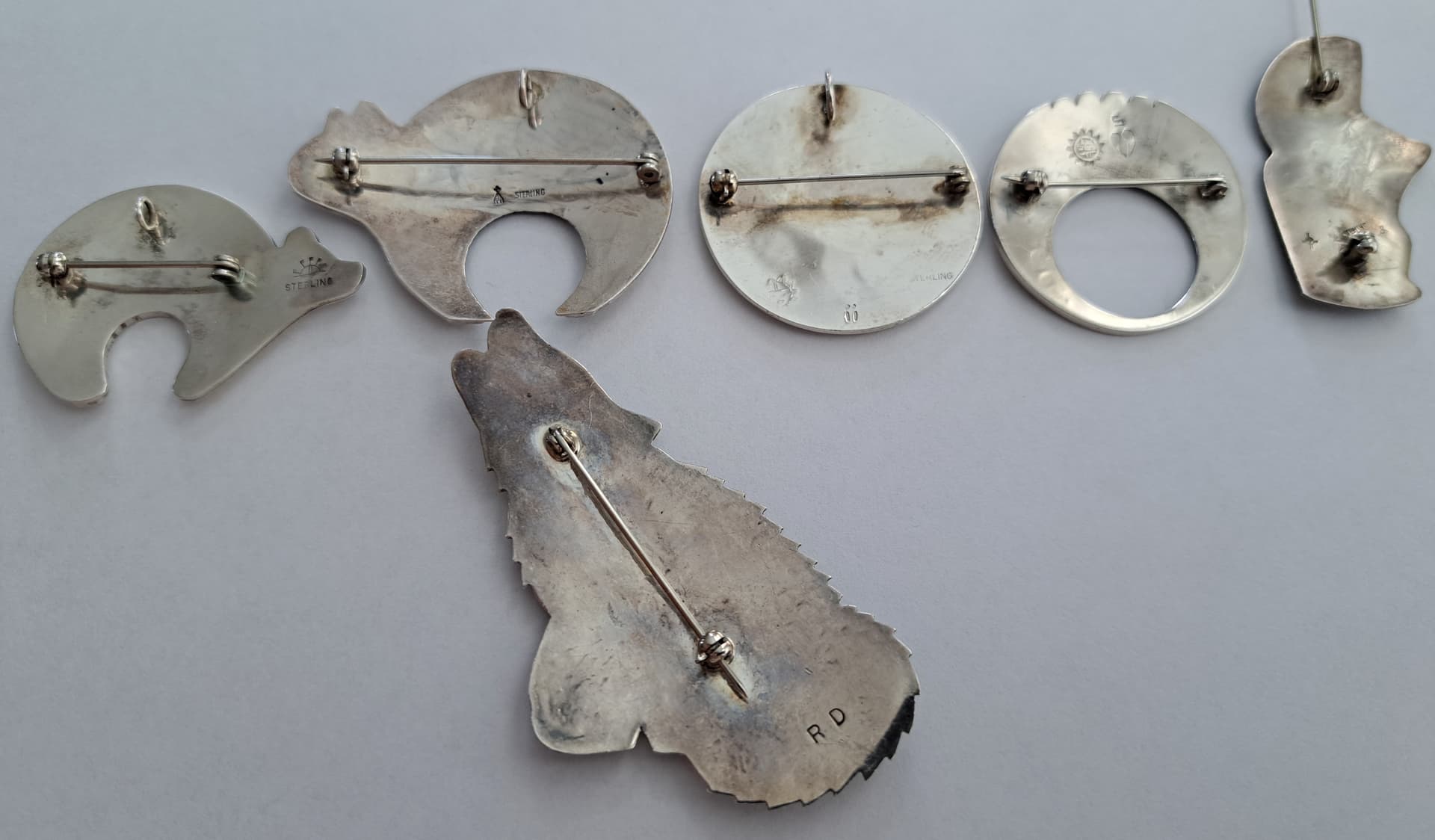 More is more… the RD hallmark on the coyote/wolf pin is unidentified. While I like this pin a lot, I’m on the fence about whether or not it’s a Hopi made piece.