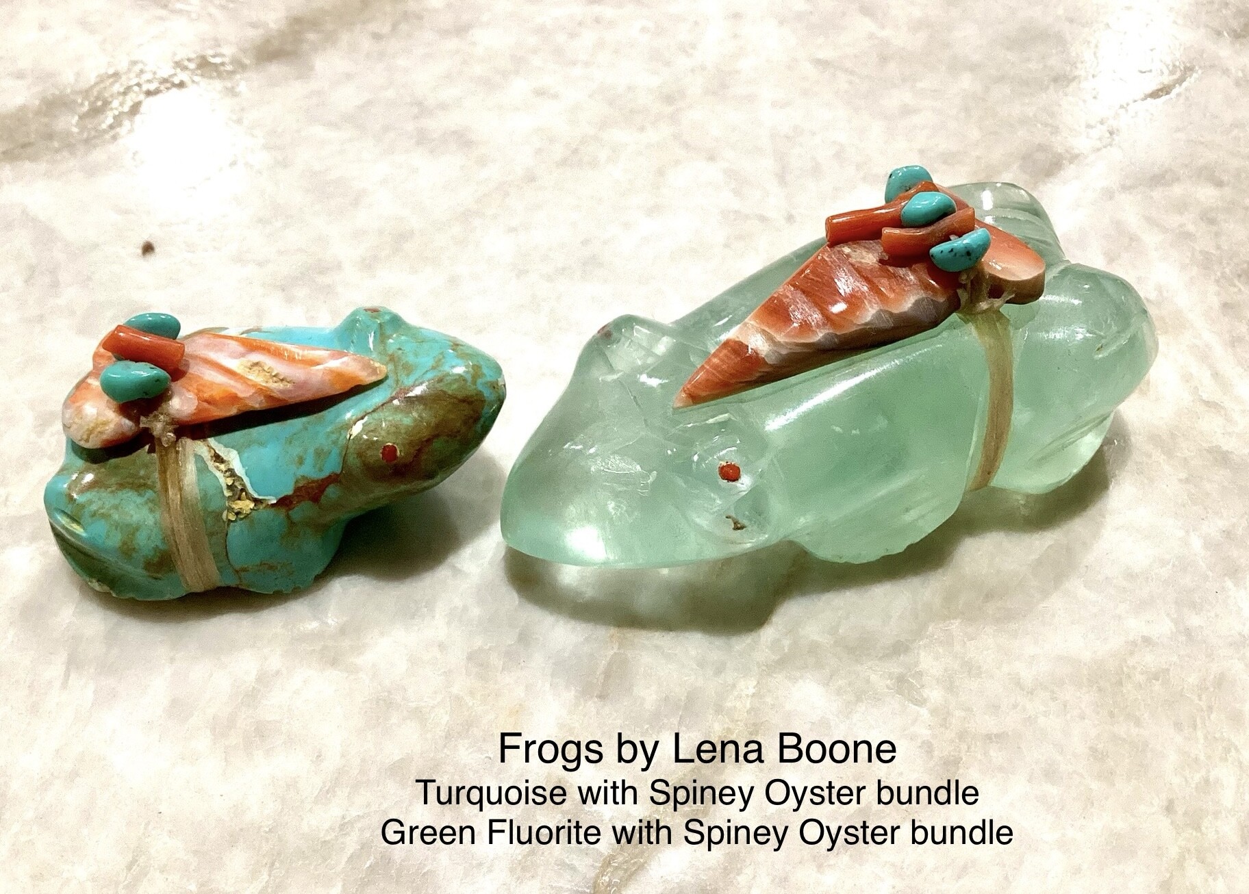 I agree fetishes are so sweet and fun! I have collected a lot of them over many years…so many different animals, forms and materials used! Here are couple of Lena Boone’s frog fetishs with their “bundles” on their backs: