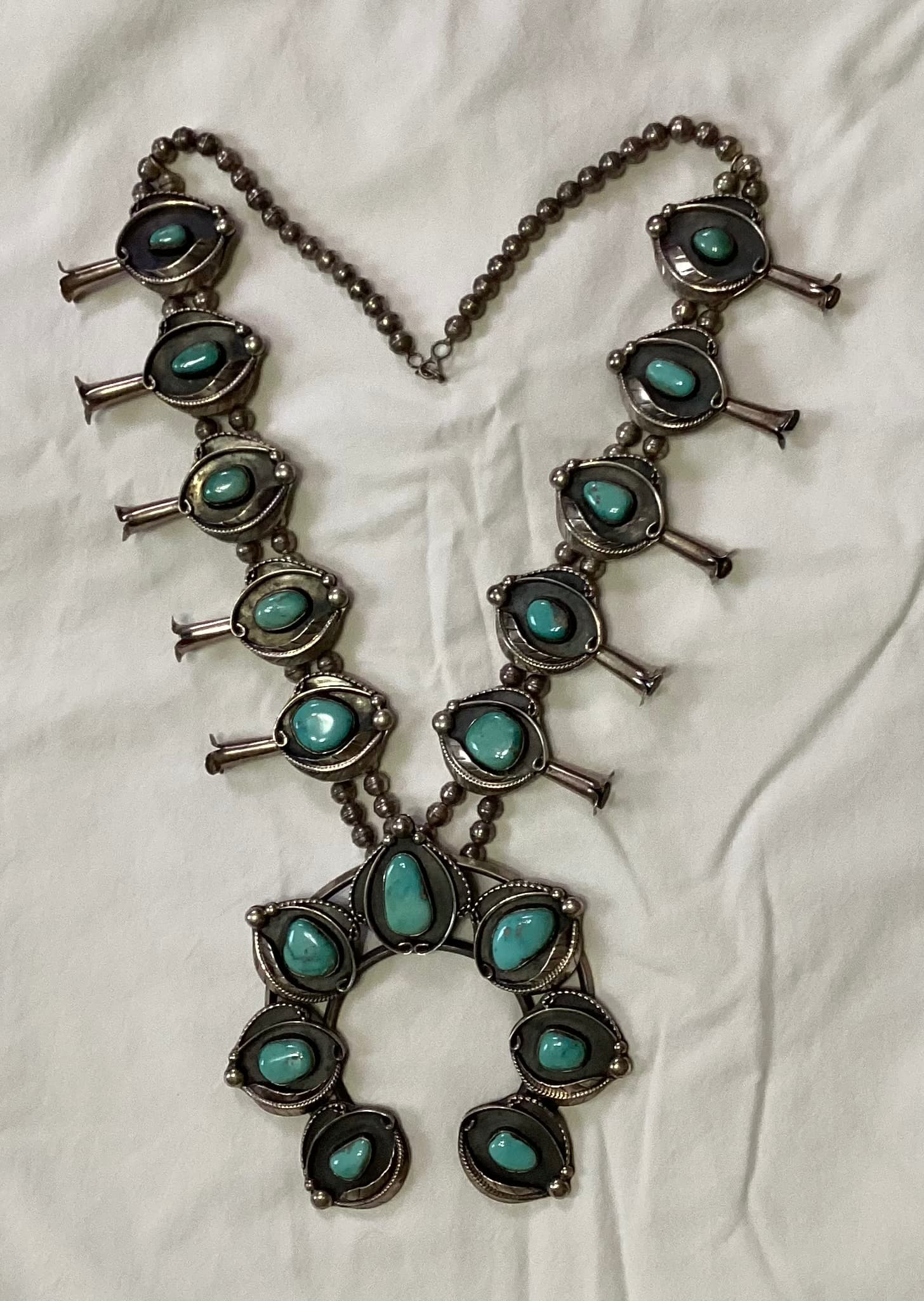What a cleanly fashioned, unique squash blossom. Interesting design around the shadowbox area…quite pleasing, I like it!