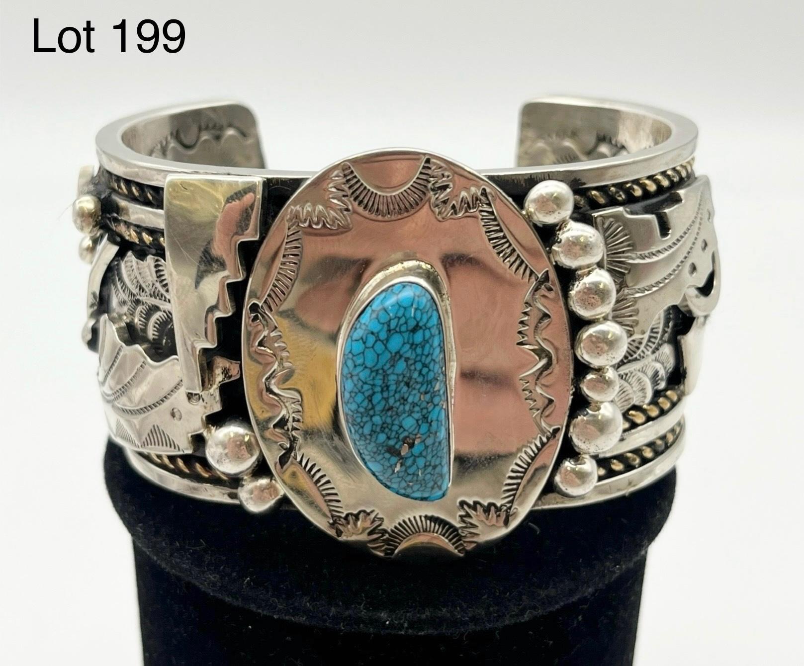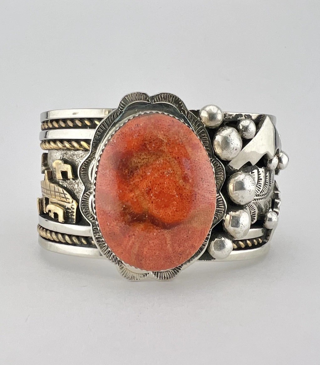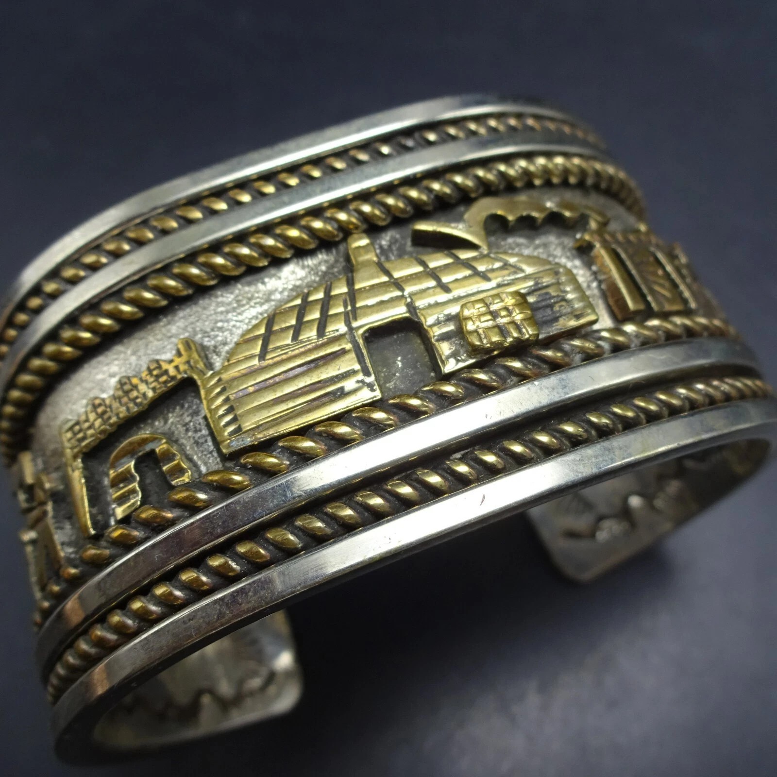 I am so thankful that there is a forum like this dedicated to turquoise, native american, and southwestern jewelry. I’ve been lurking for a while, reading your forum and any books that I can get my hands on from my local library. I’ve collected several pieces by known artists, but there’s a piece I’ve purchased recently, that haven’t done my homework on. I love it anyway, regardless if it’s a production piece or not; but, I’m hoping you can help me shed some light. I’ve seen similar pieces and stampwork (pictures below), but the sellers guess different artists. One mentioned Russ Rockbridge, one mentioned Richard Reeves, and others do not bother to guess based on the hallmark. The “RR” does not look like Russ Rockbridge or Richard Reeves based on the art-amerindien hallmark website or Medicine Man Gallery (Mark Sublette). I thought the stampwork does look like in the hallmark labeled as Rob Tsosie; however, I can’t find any examples of Rob Tsosies’ work online.